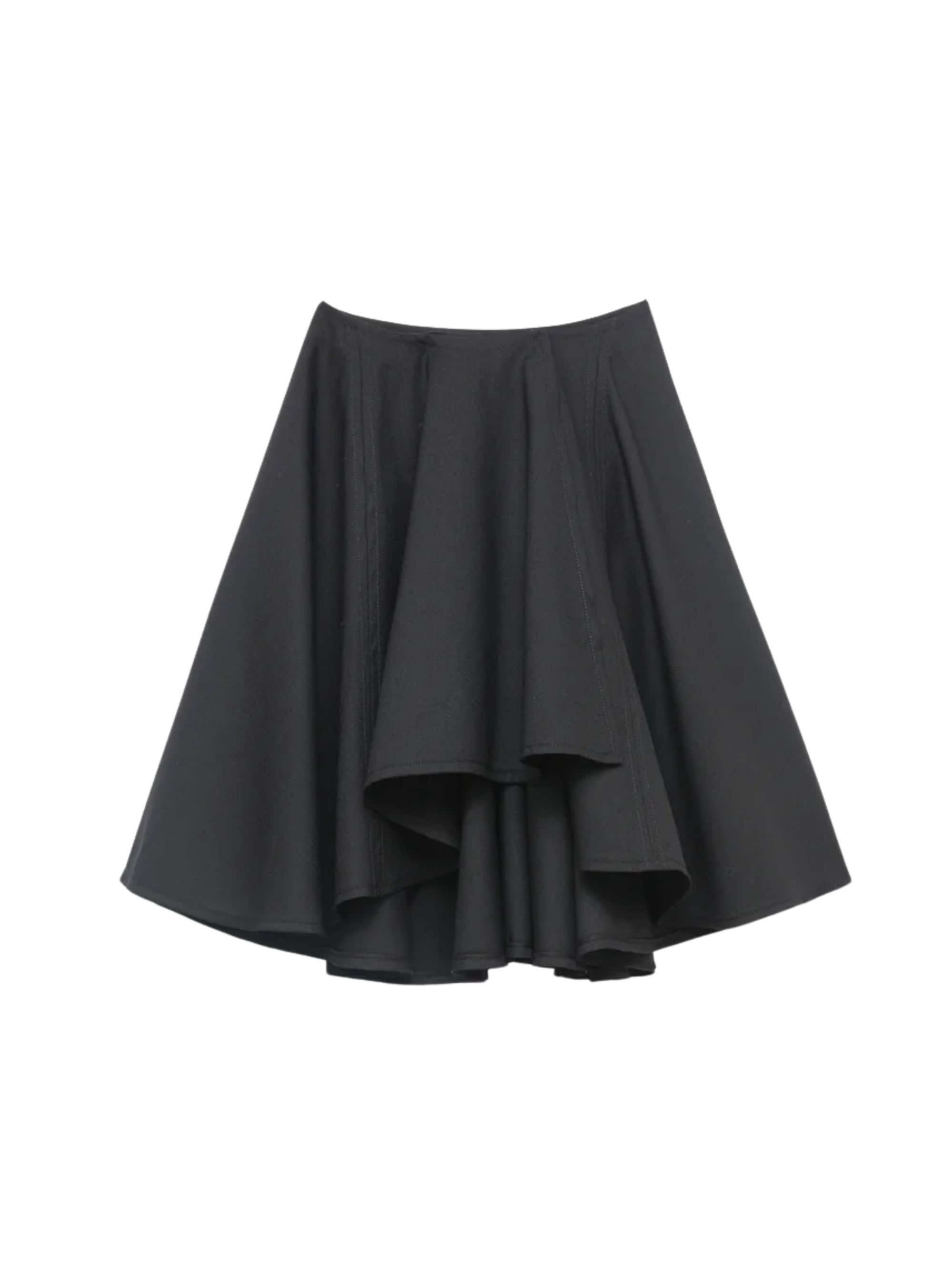 Voluminous tailored skirt from BITE STUDIOS in black wool, featuring a curved hem, a voluminous, draped silhouette and a hook and button fastening.