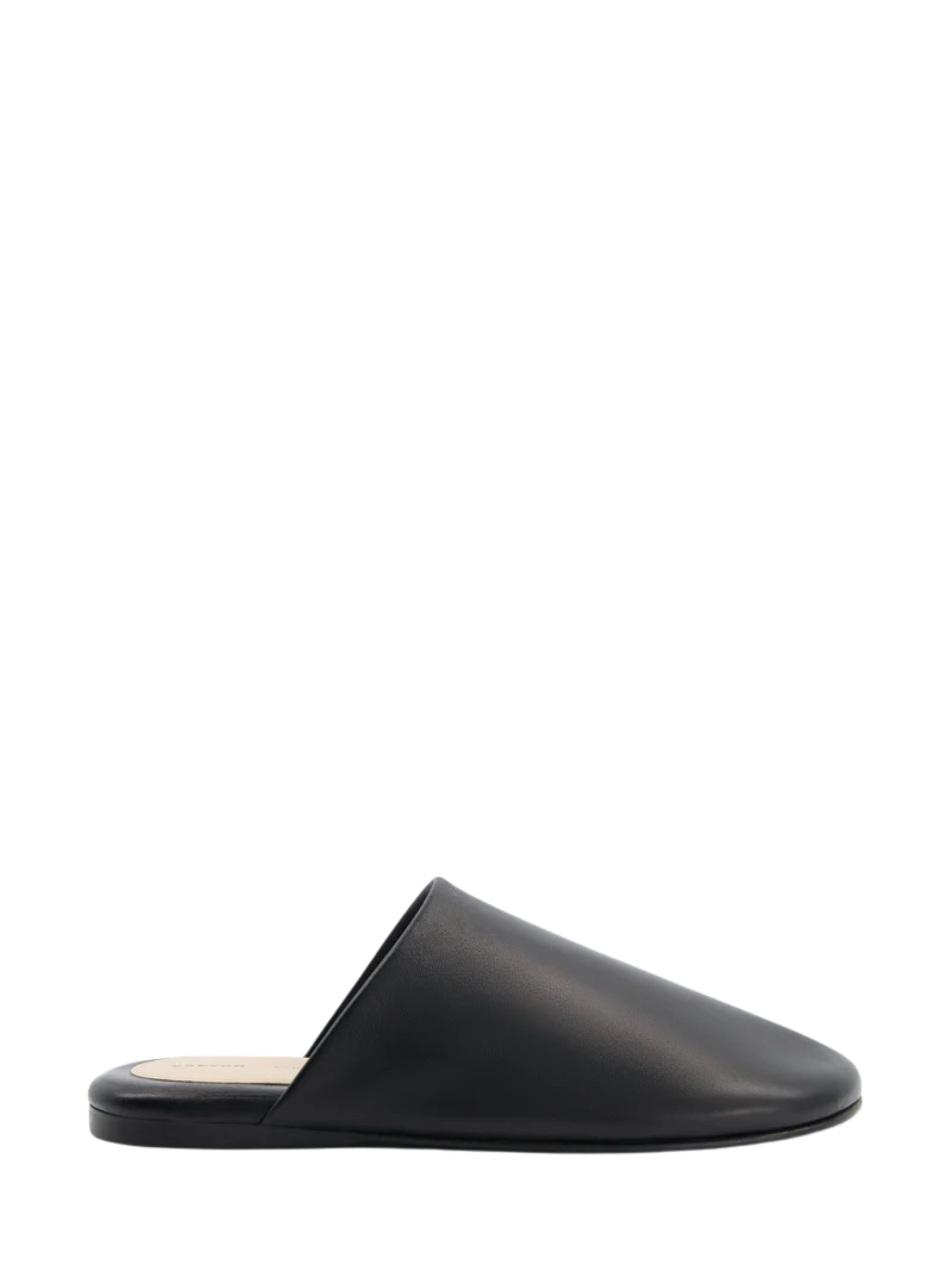 Garnier leather slipper by CARVEN in black, featuring a soft upper and padded insole.