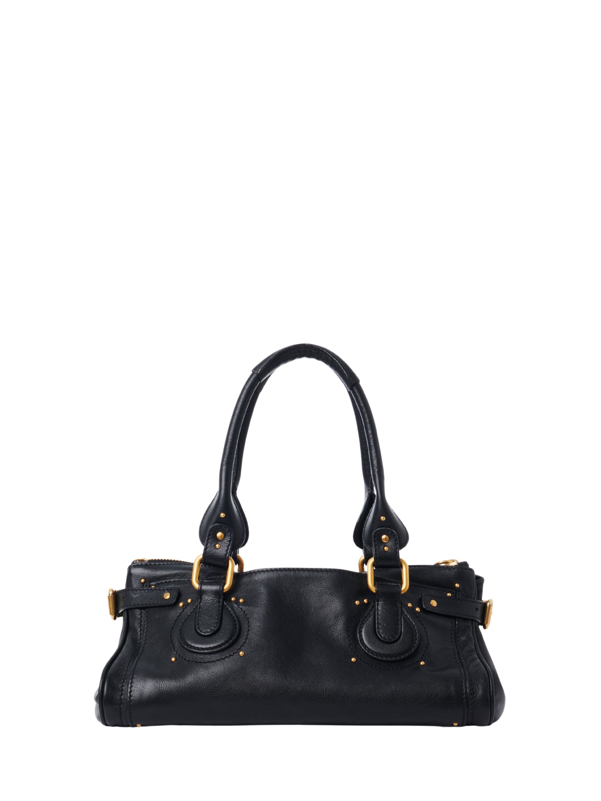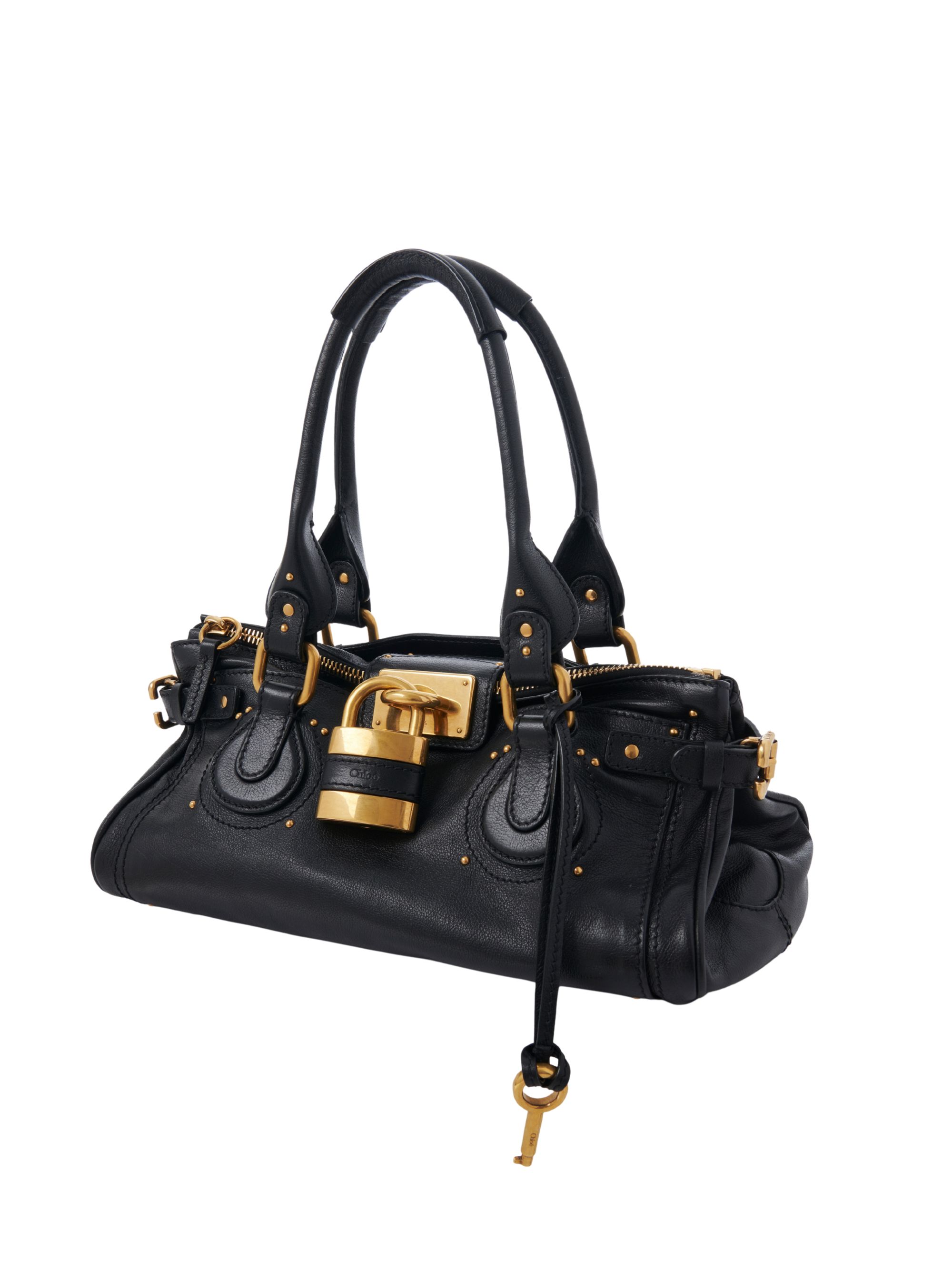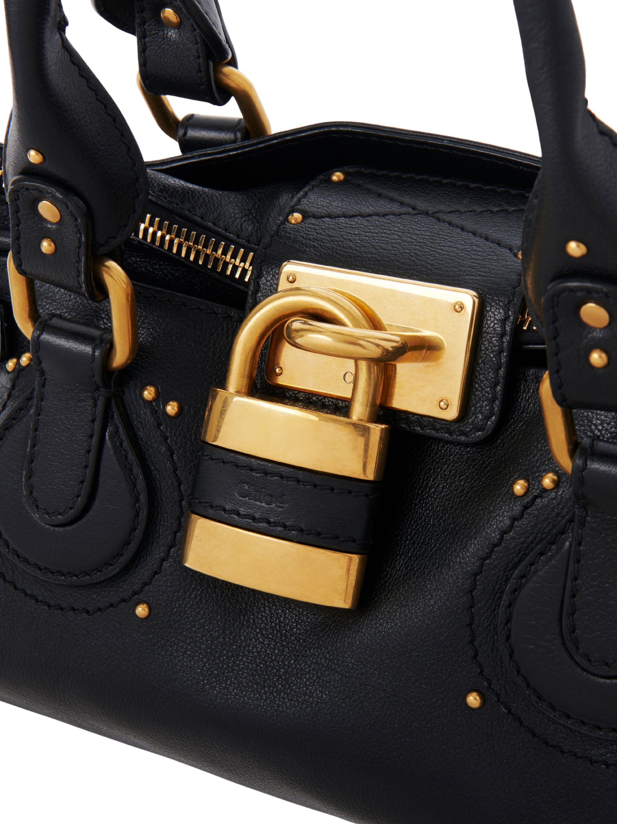 Paddington handbag by CHLOE' in black grained leather, featuring a zip closure, main compartment, front and back pockets and gold finishing.