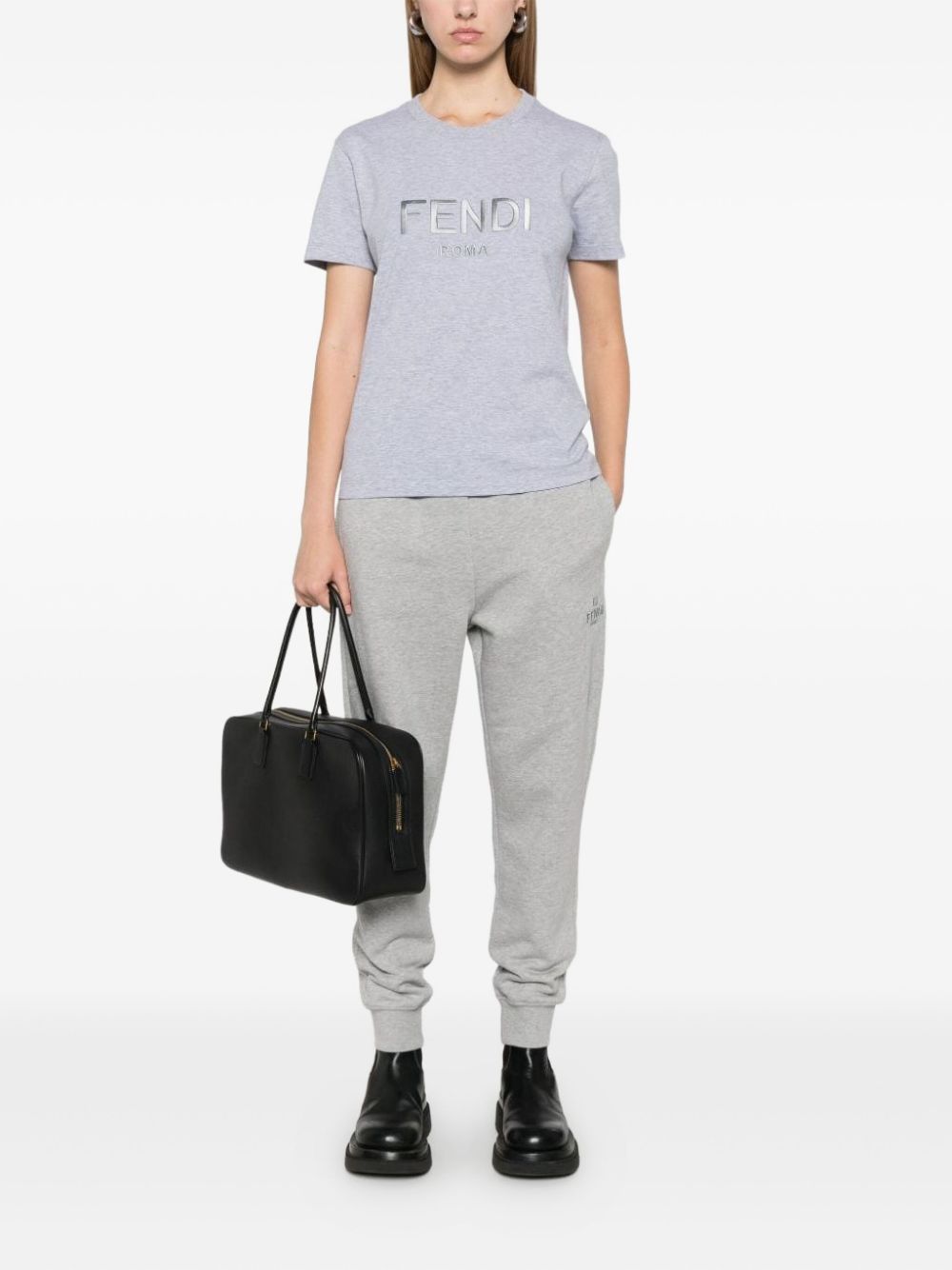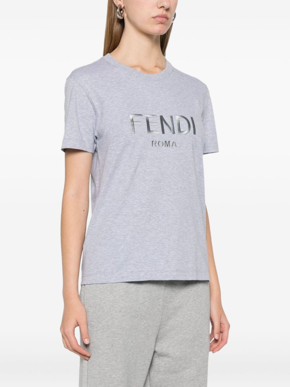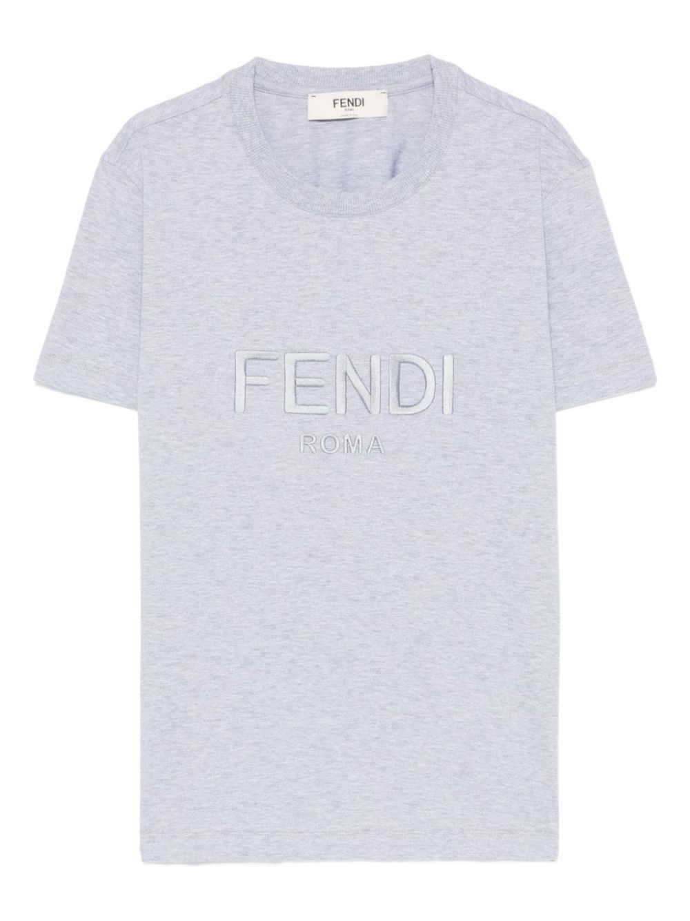 Grey T-shirt by FENDI featuring Fendi Roma 1925 print and embroidered details, short sleeves and crew neck.