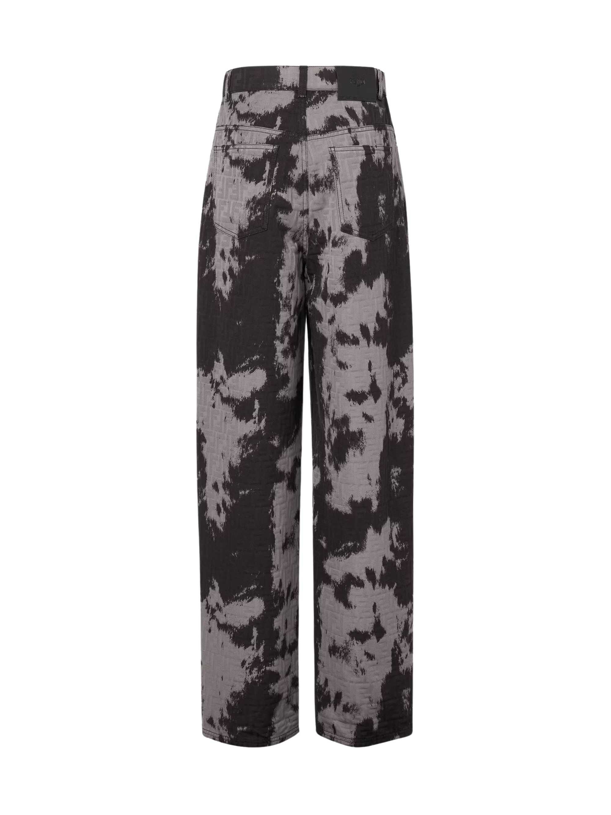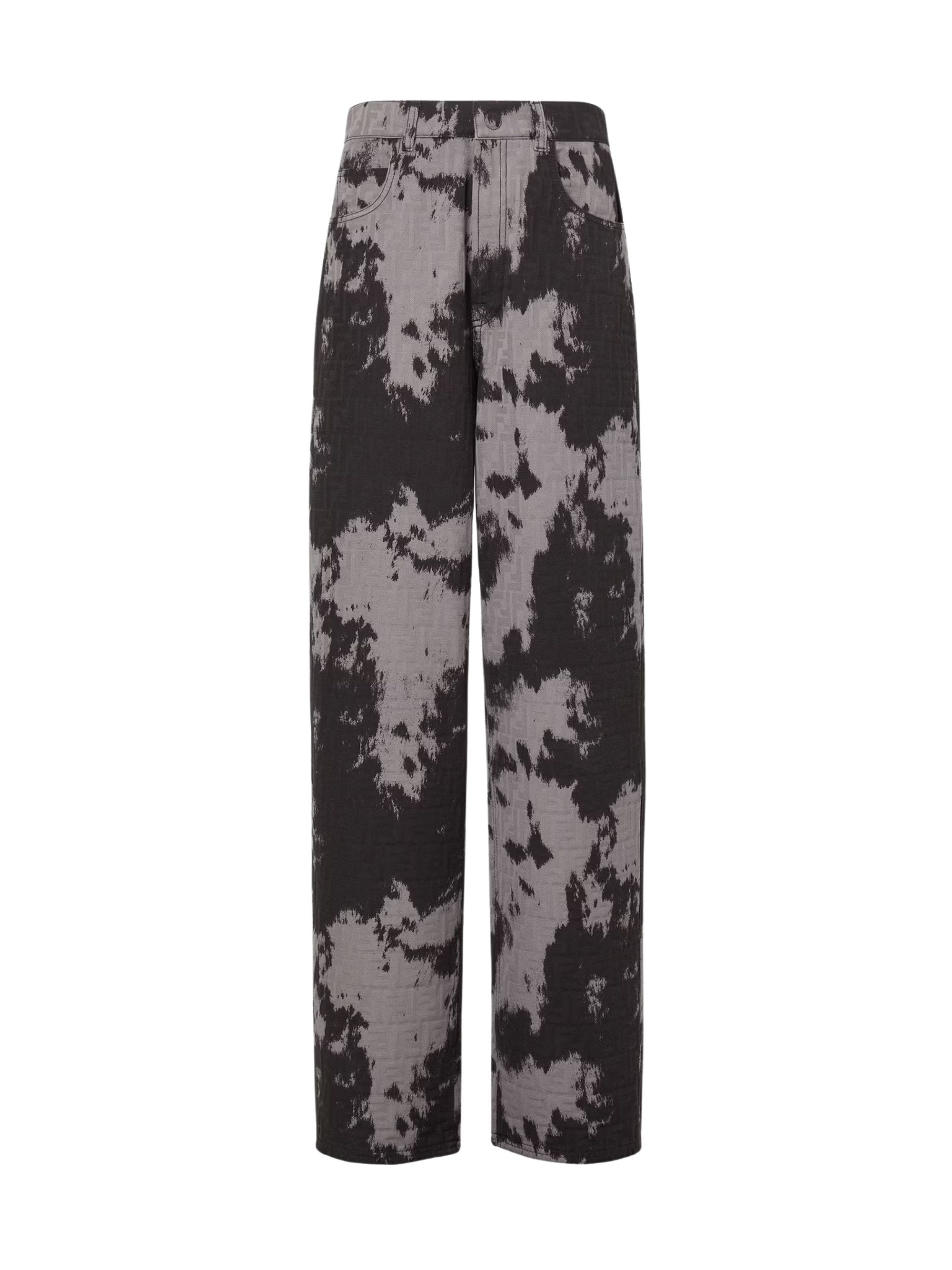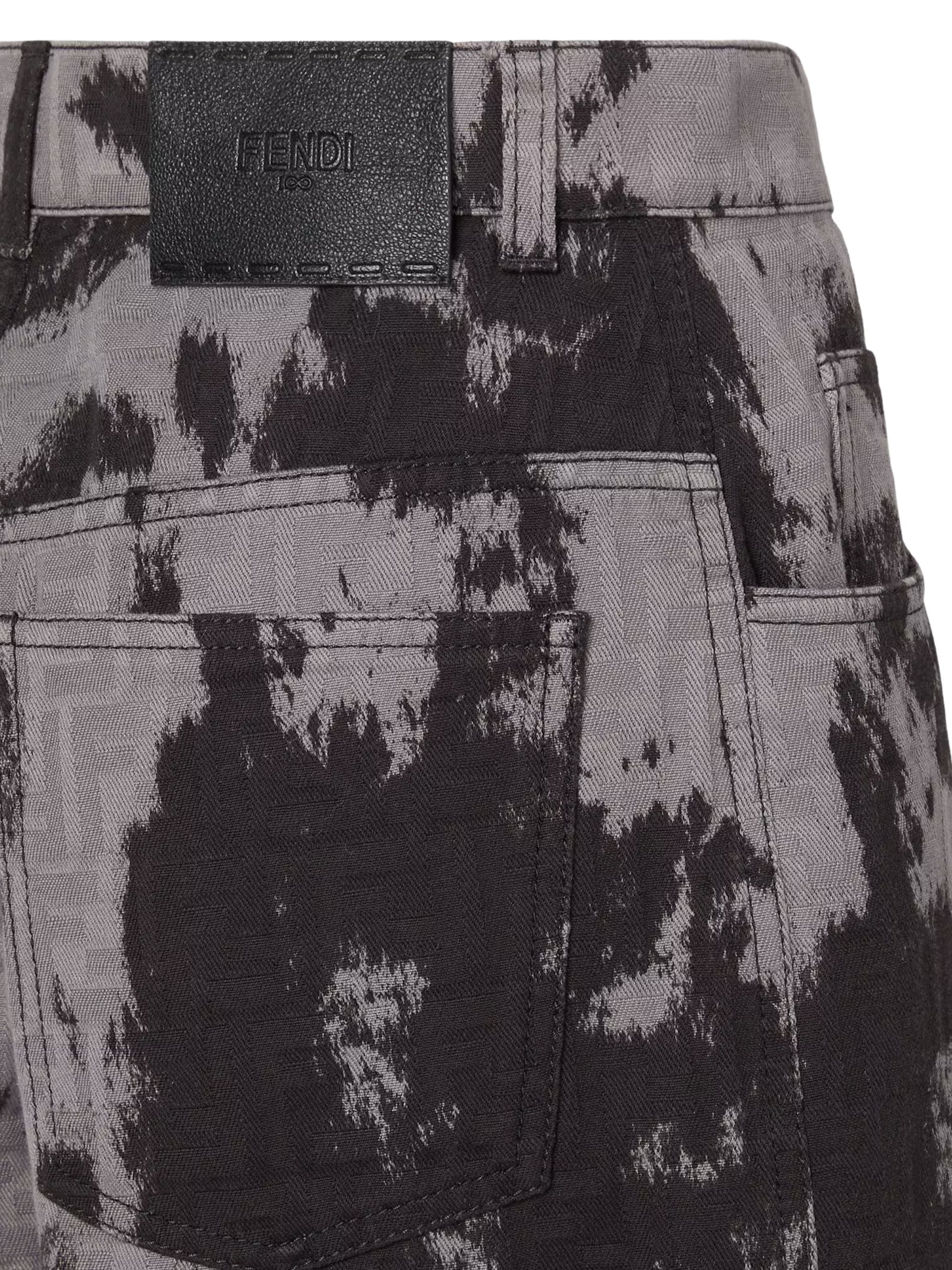 FENDI multicolor FF animalier print jeans in denim, featuring metal rivets, belt loops at the waist, concealed zip fastening and logo tack button, FF motif and all-over Frosted Fauna print.
