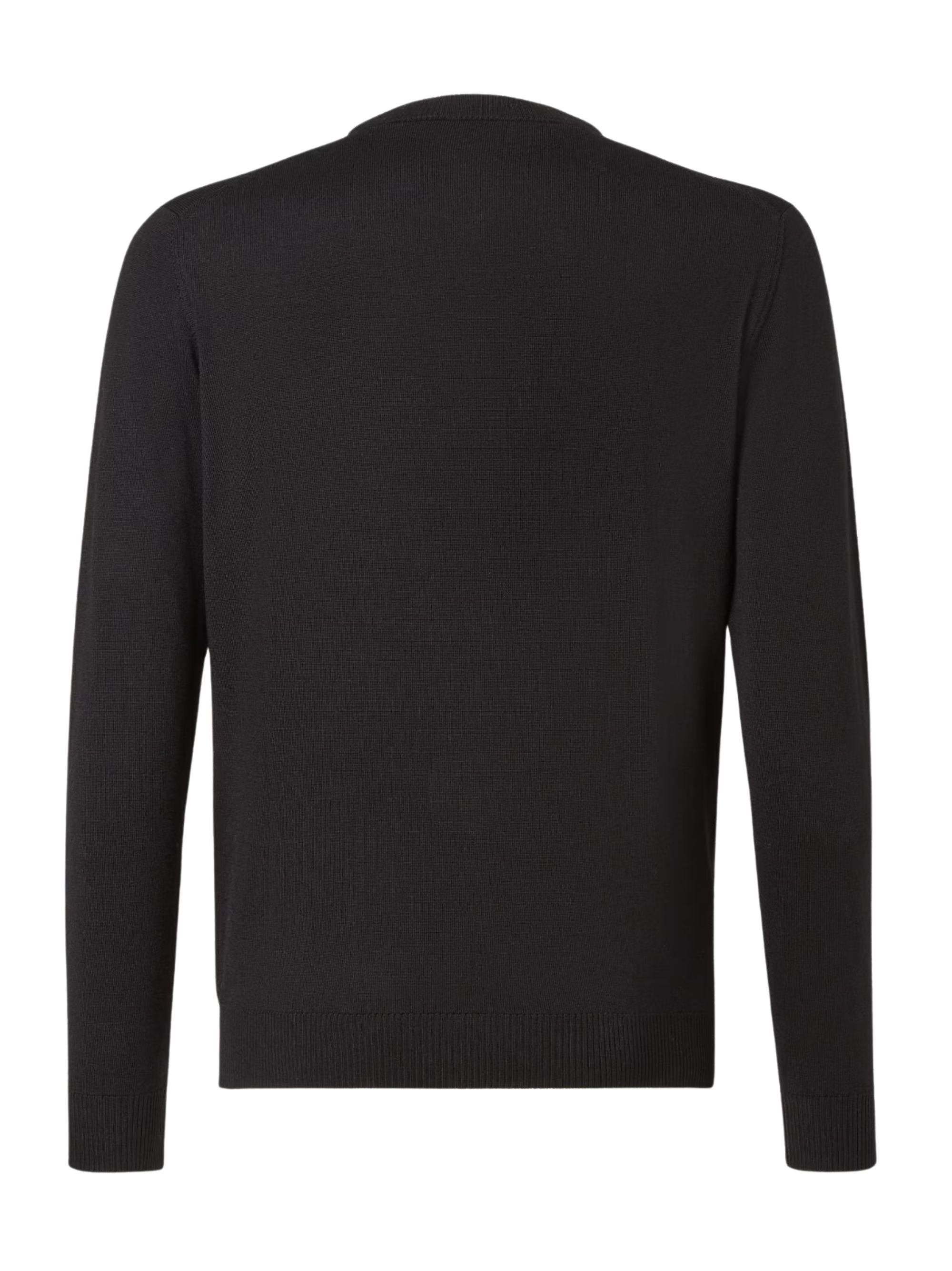 Black wool sweater by FENDI, featuring long sleeves and a zipped chest pocket finished with an embossed FF logo and a palladium-finish metal Fendi O'Lock slider.