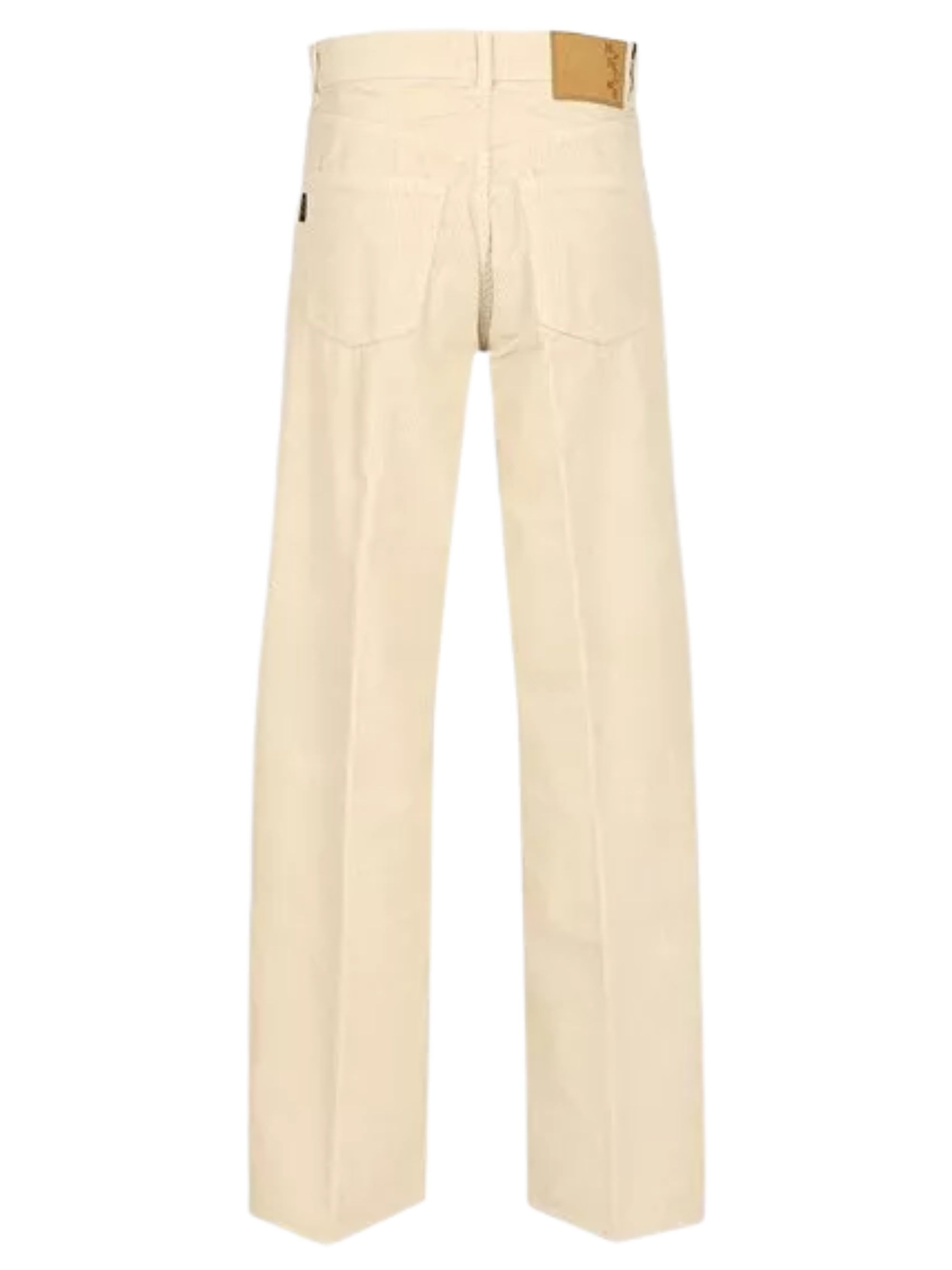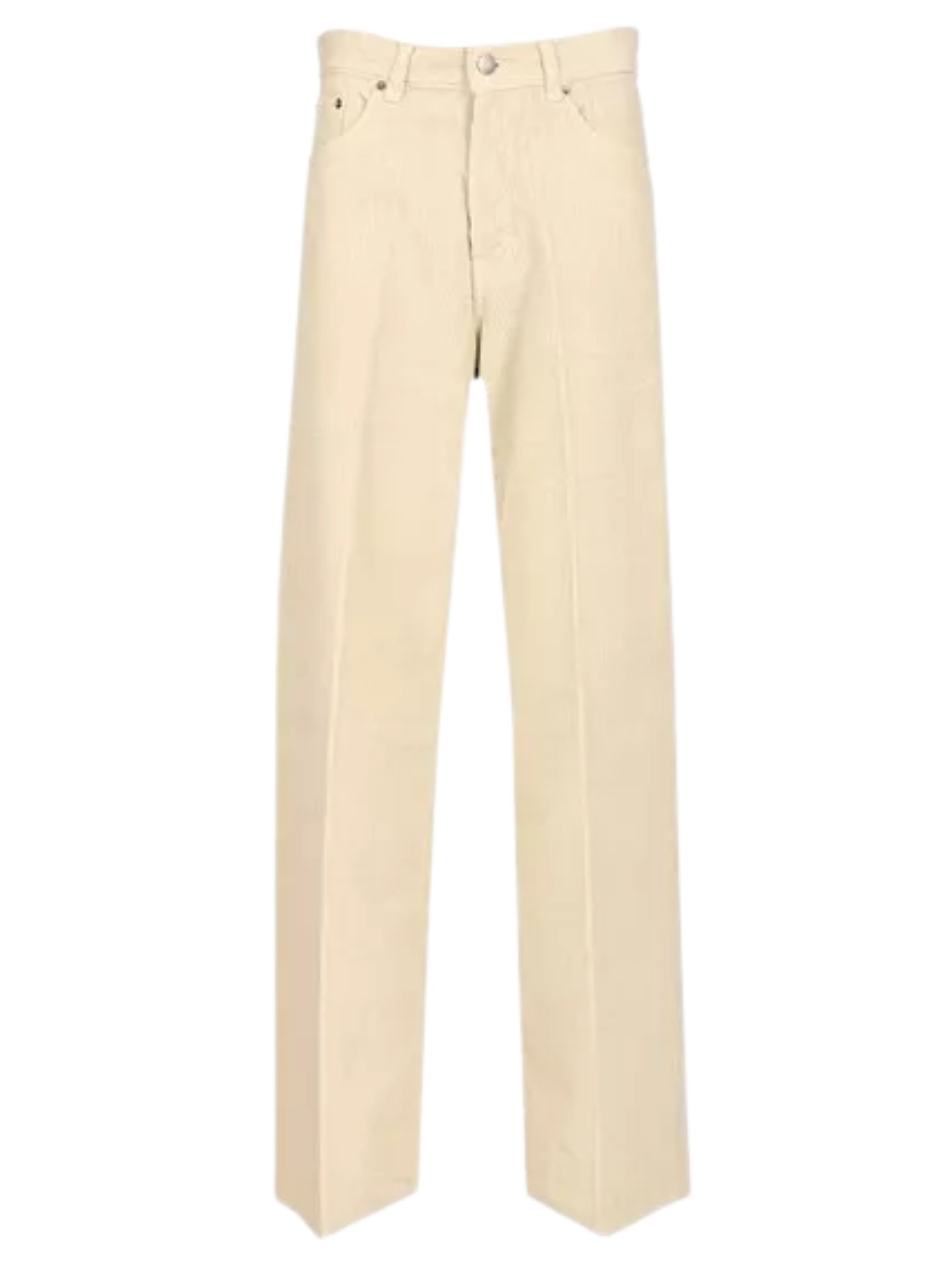 Bethany jeans by HAIKURE in beige corduroy with a ribbed texture, five-pocket design, belt loops and button and zip fastening.