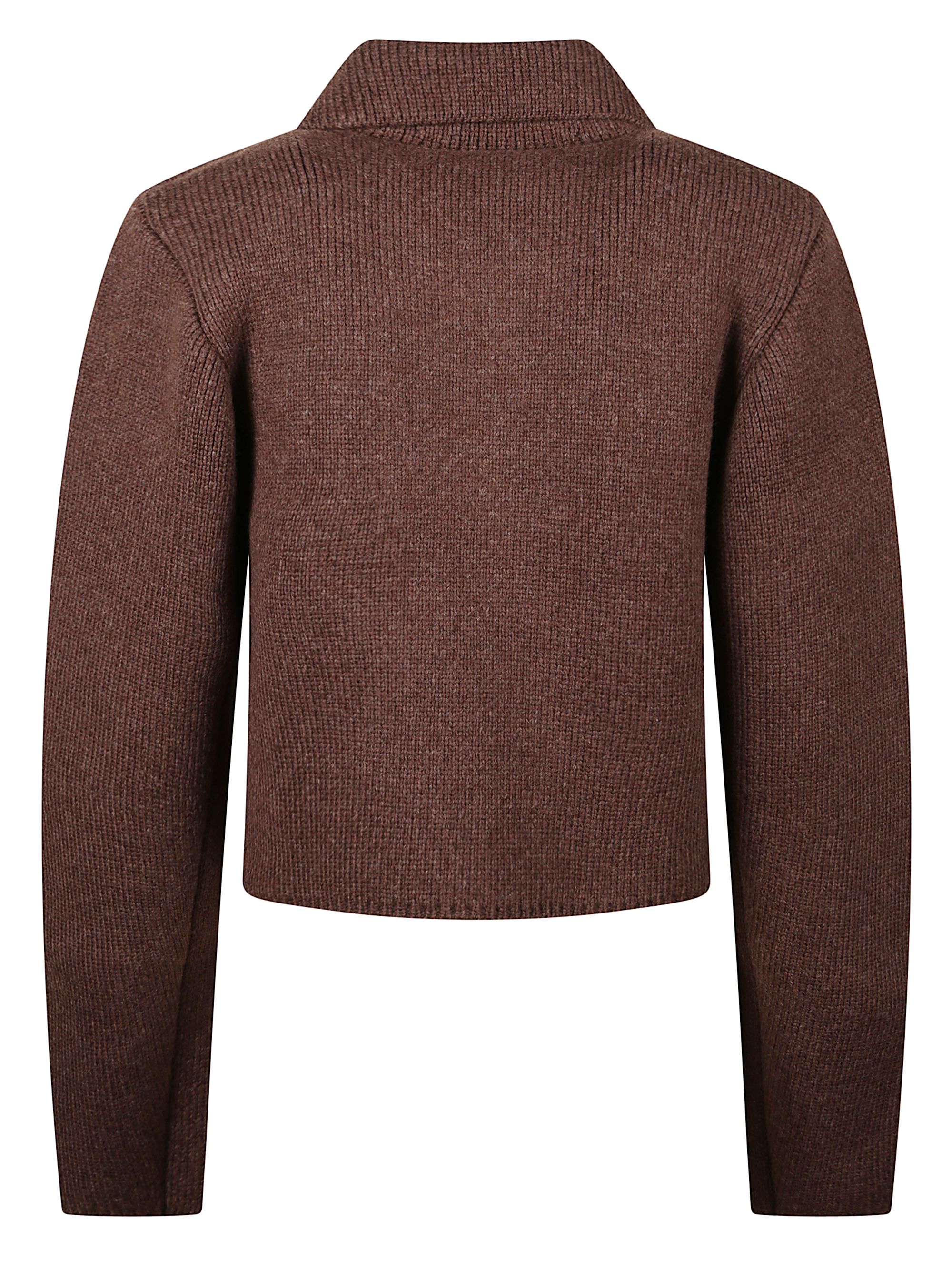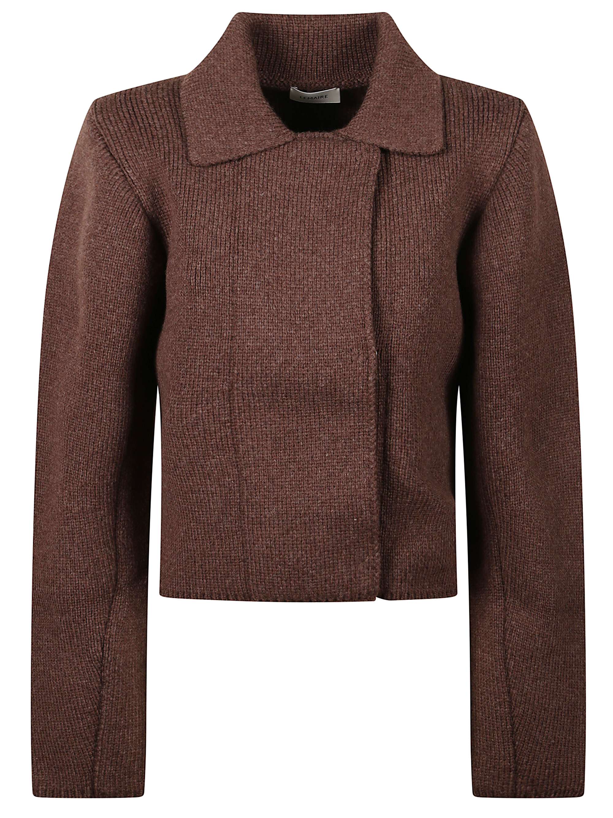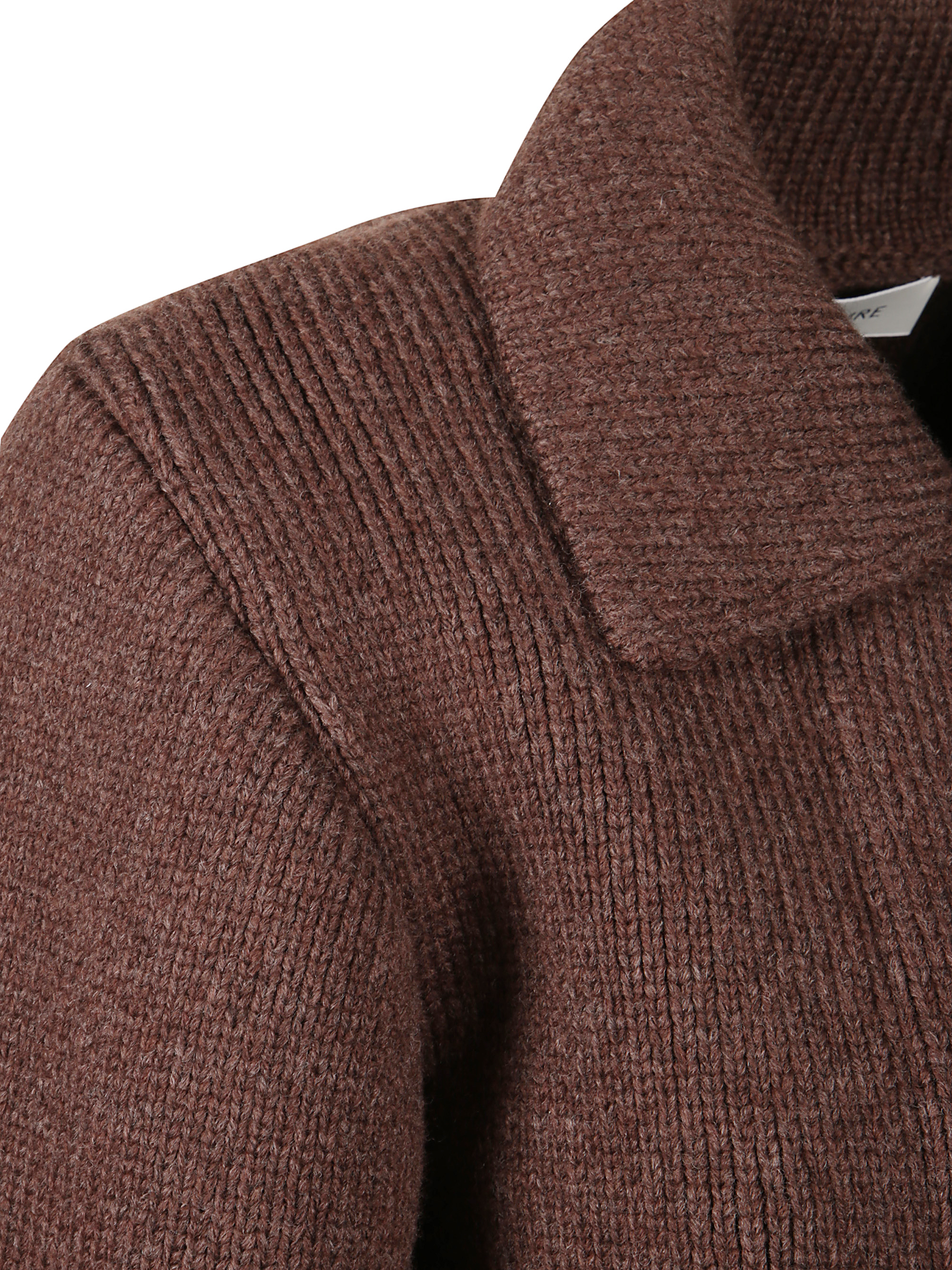 Brown double-face fleece wool jacket by LEMAIRE, featuring a straight fit, shirt collar, double-breasted snap fastening and ribbed knit trim.