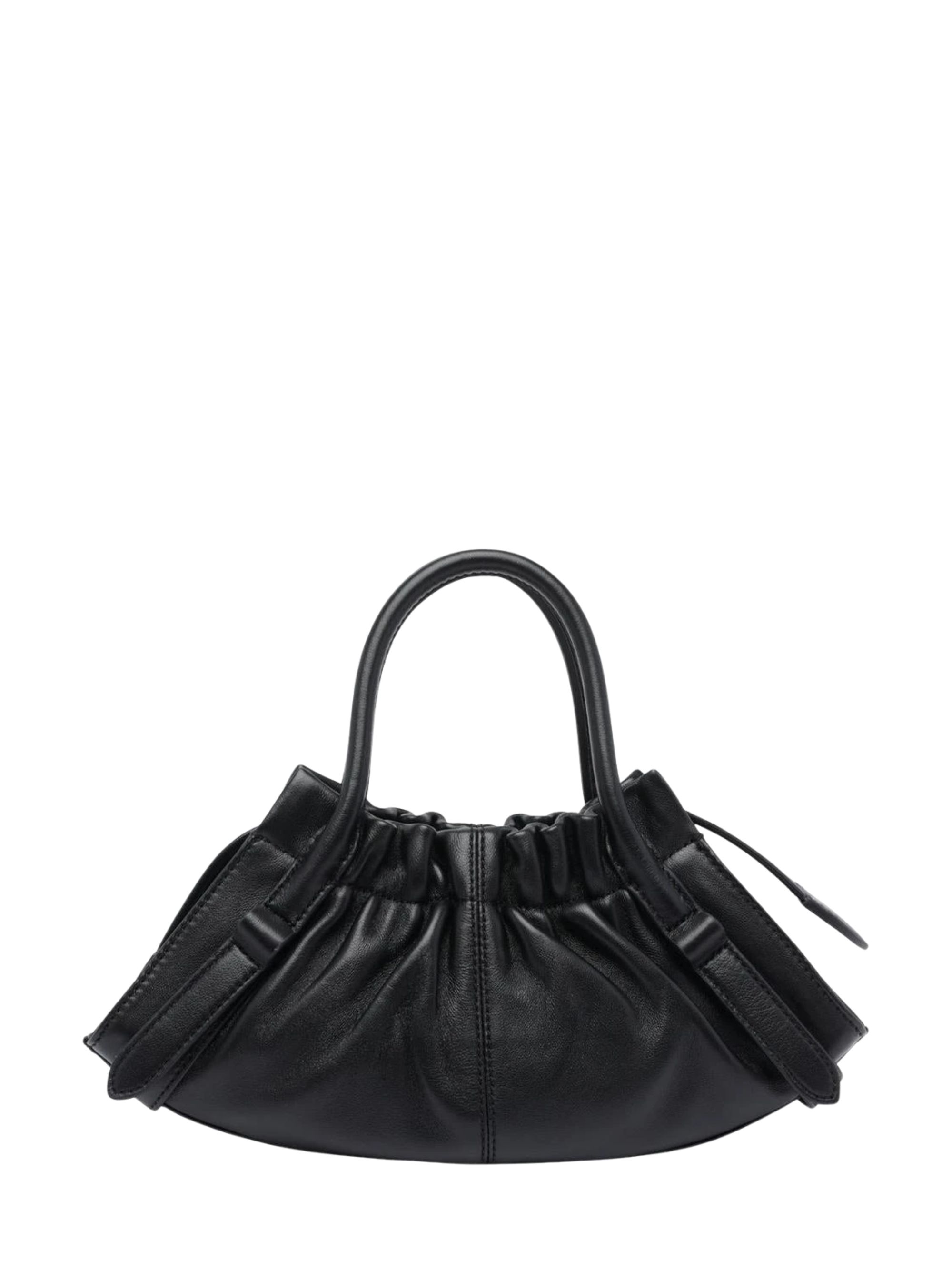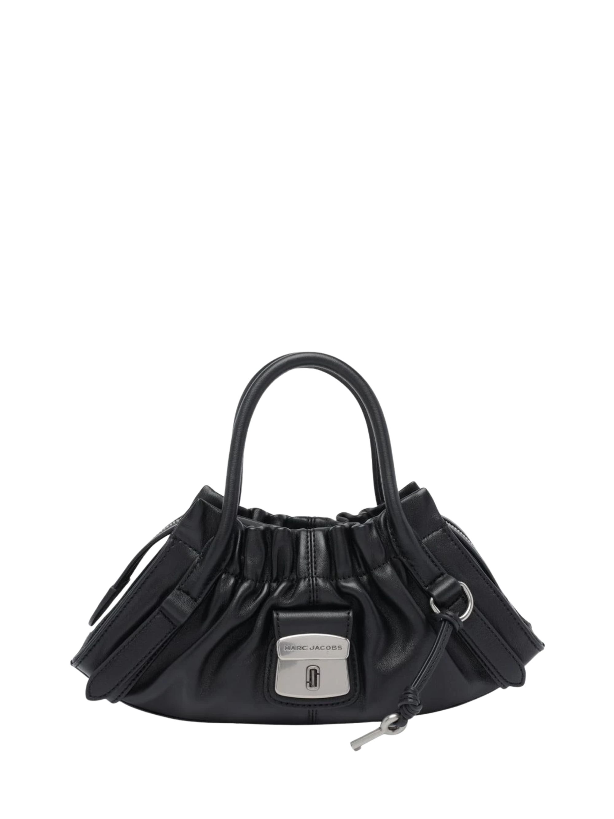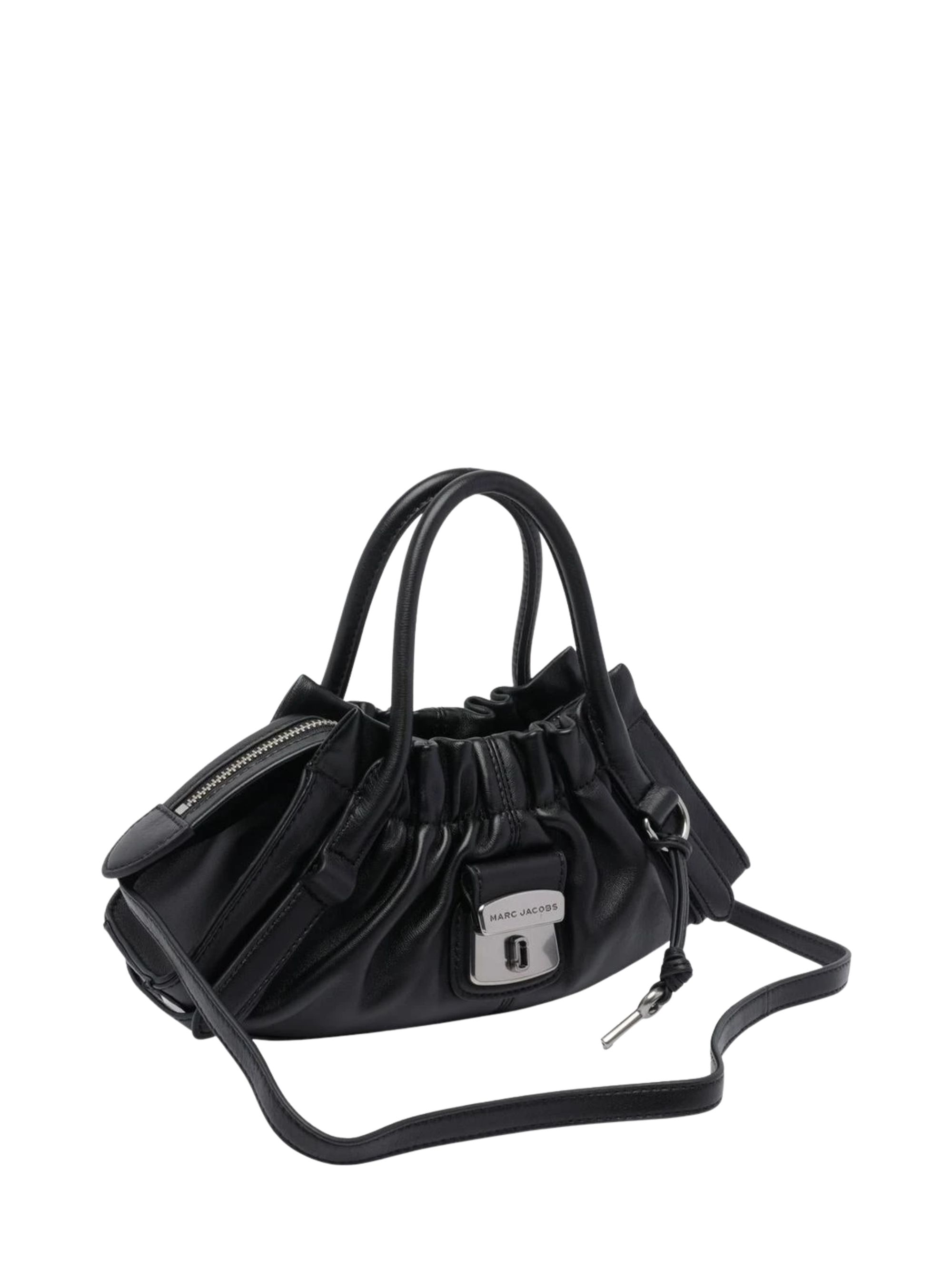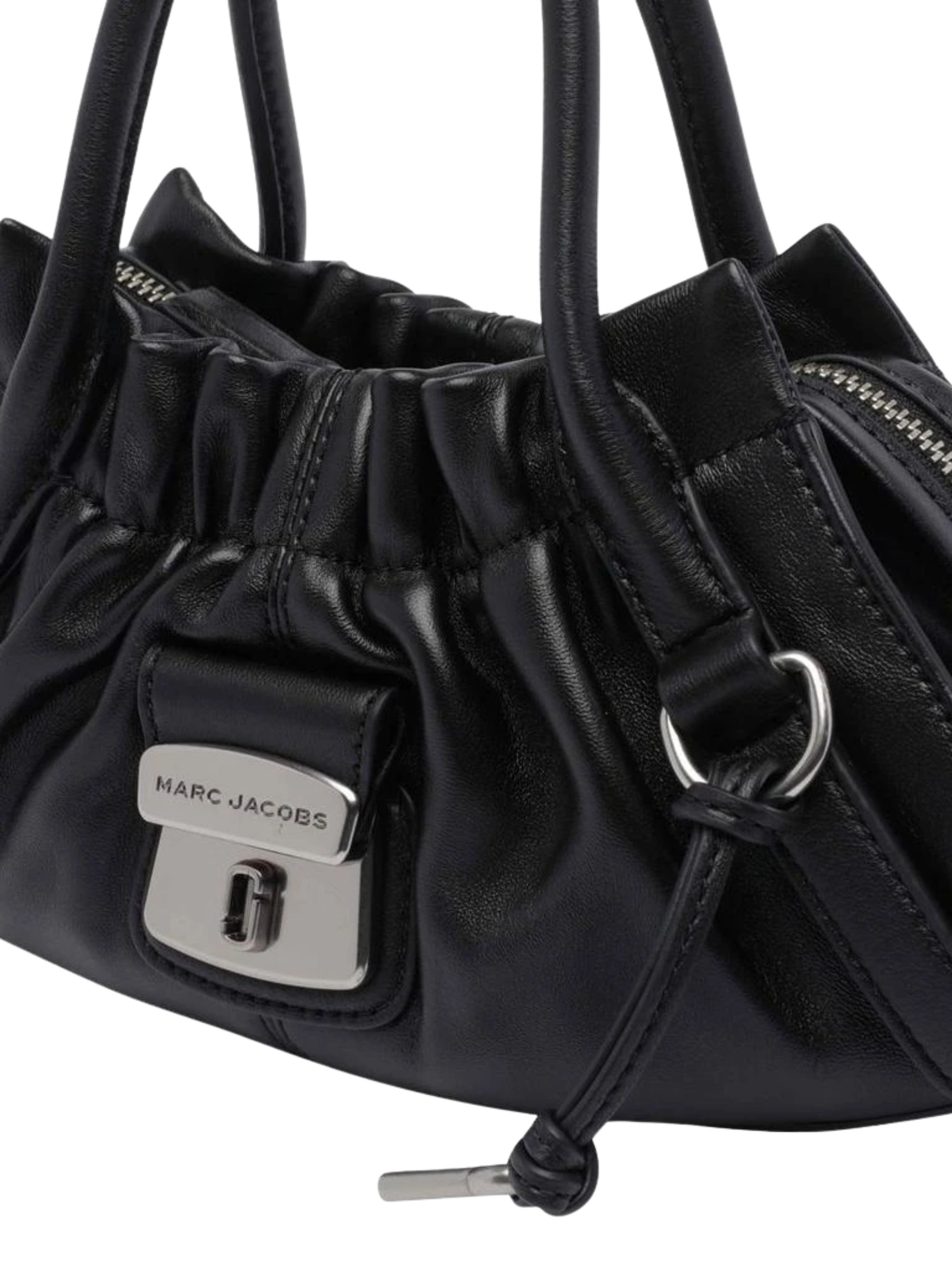 The Satchel small bag by MARC JACOBS in black leather, featuring zip closure, adjustable and removable shoulder strap and logo on the front.