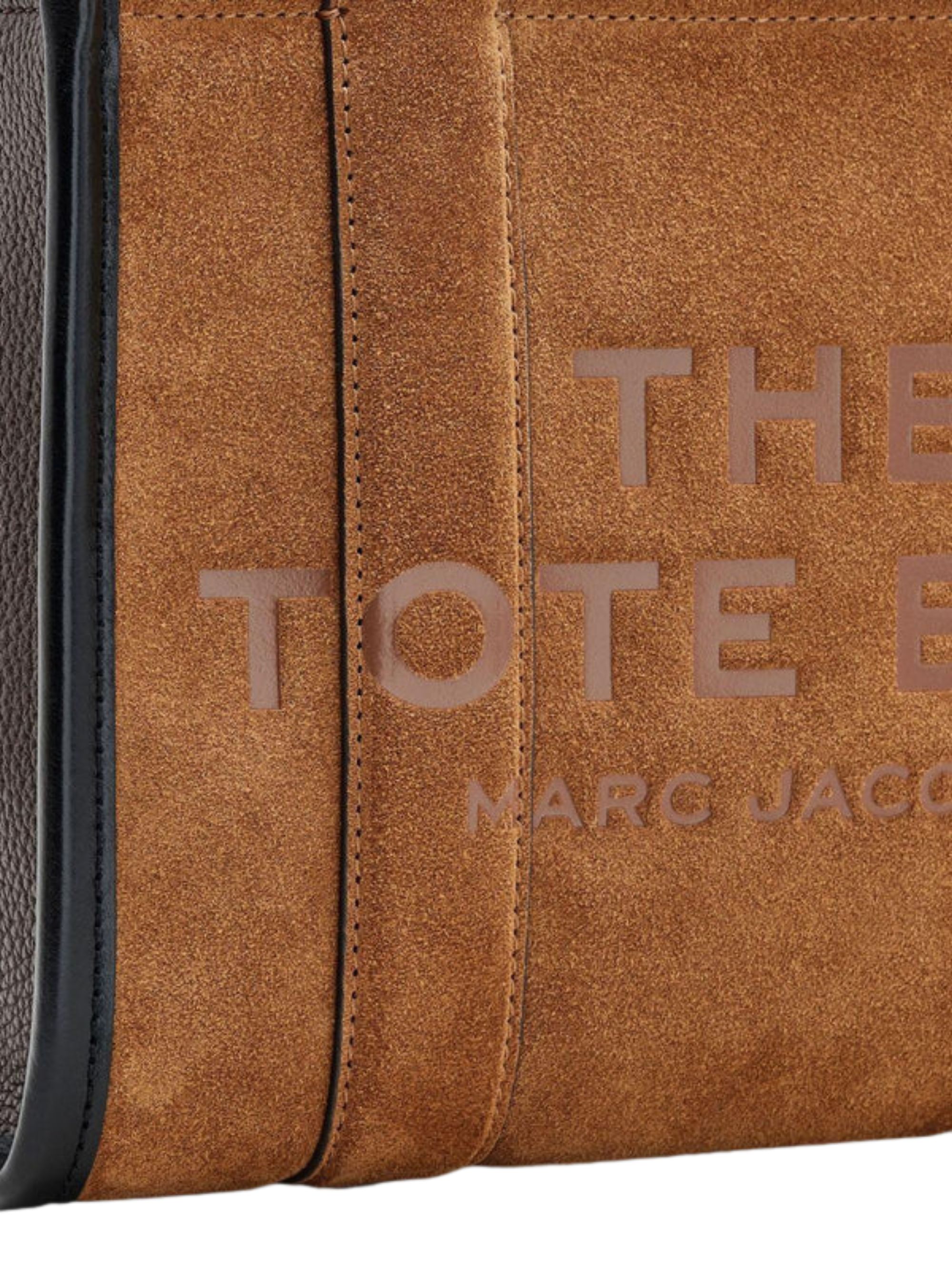The Small Tote bag by MARC JACOBS in brown suede, featuring zip closure, internal zip pocket, two handles, adjustable and removable shoulder strap and logo on the front.