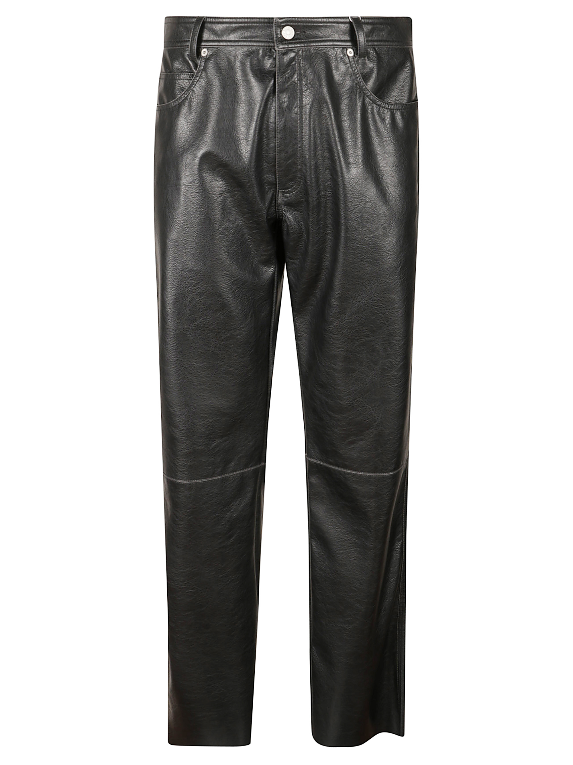 5-pocket trousers in black polyester from MM6, featuring belt loops at the waist and front and back pockets.