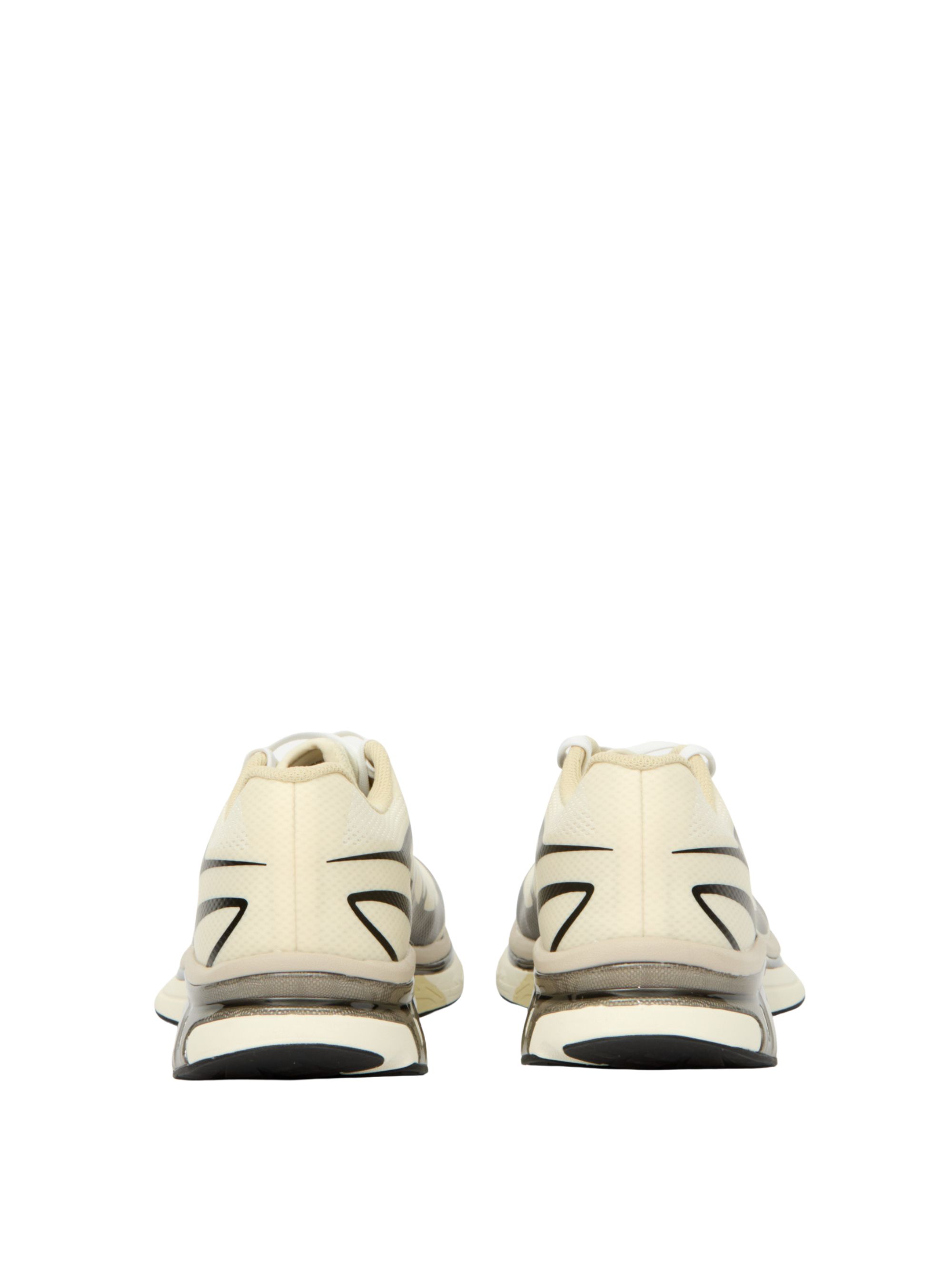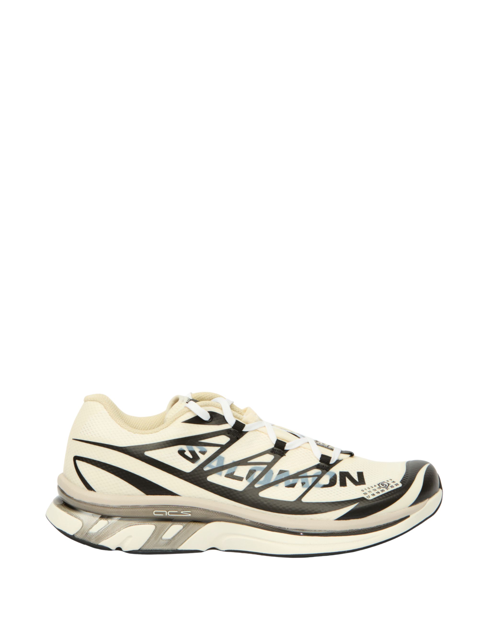 Butter-colored MM6 X SALOMON logo sneaker XT with black details and quick lace front fastening.