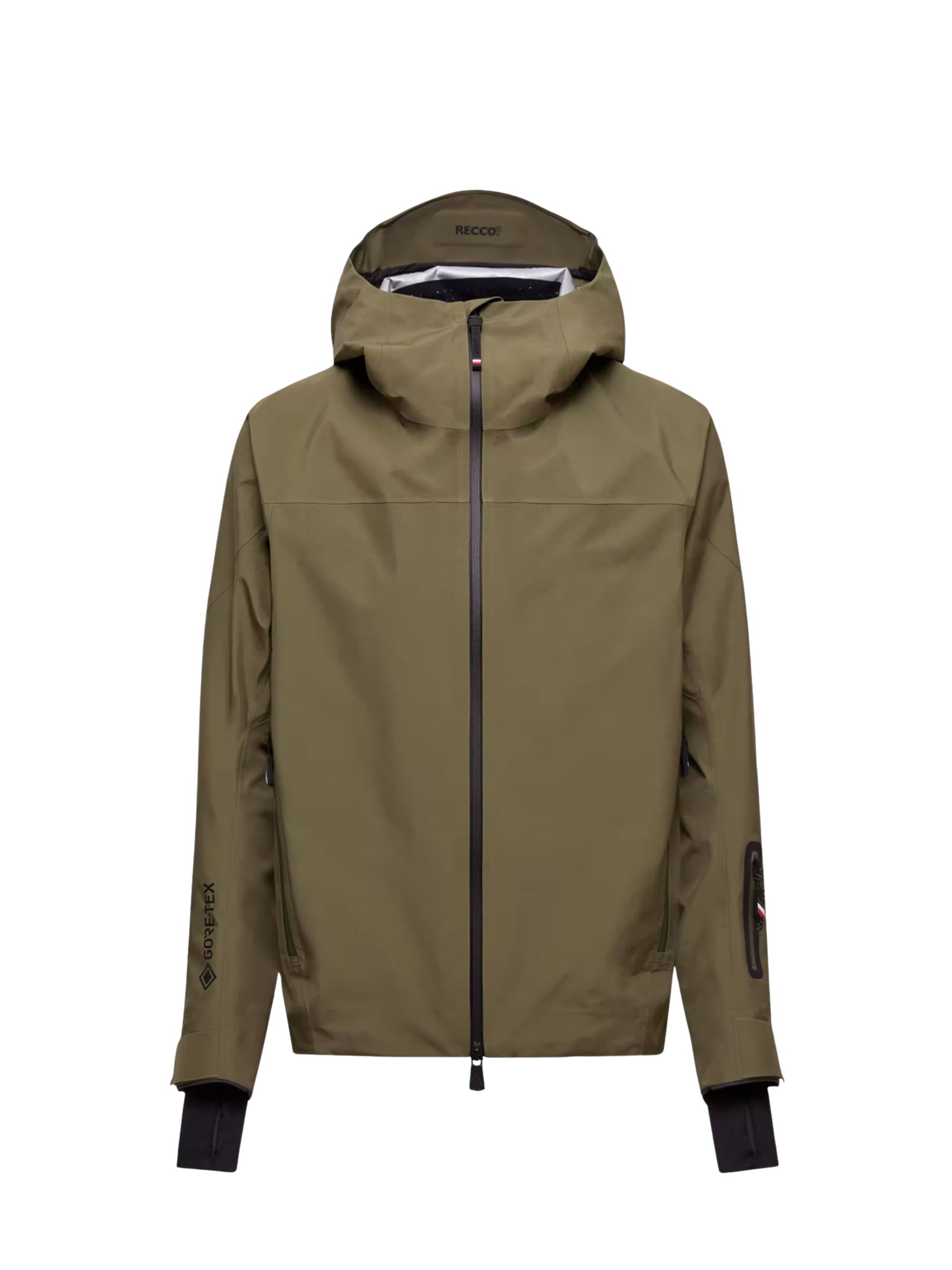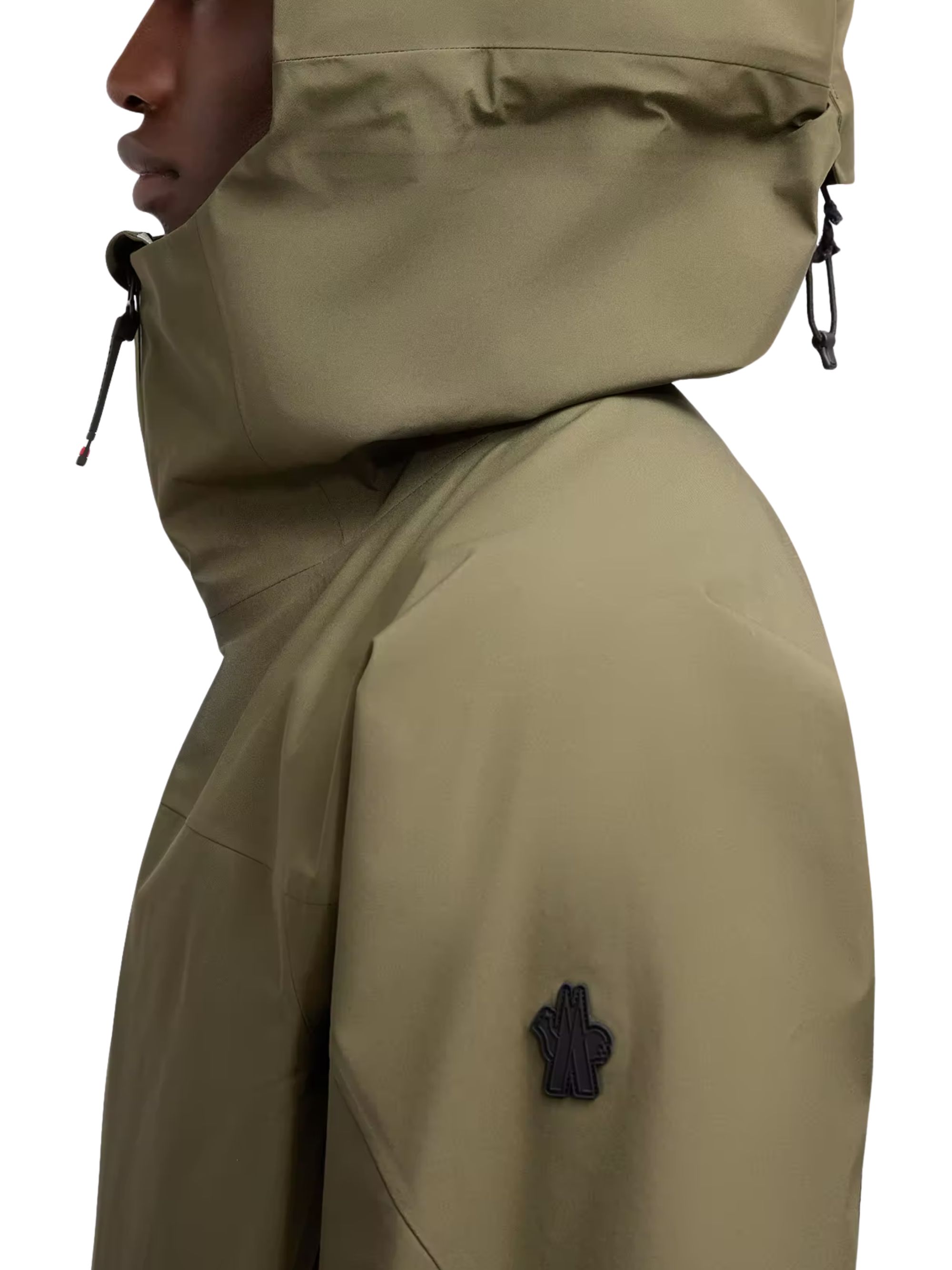 MONCLER GRENOBLE green Hinterburgs windbreaker in 3L GORE-TEX, featuring an adjustable hood with visor, zip fastening, adjustable cuffs, drawstring hem, various internal pockets and embossed logo.