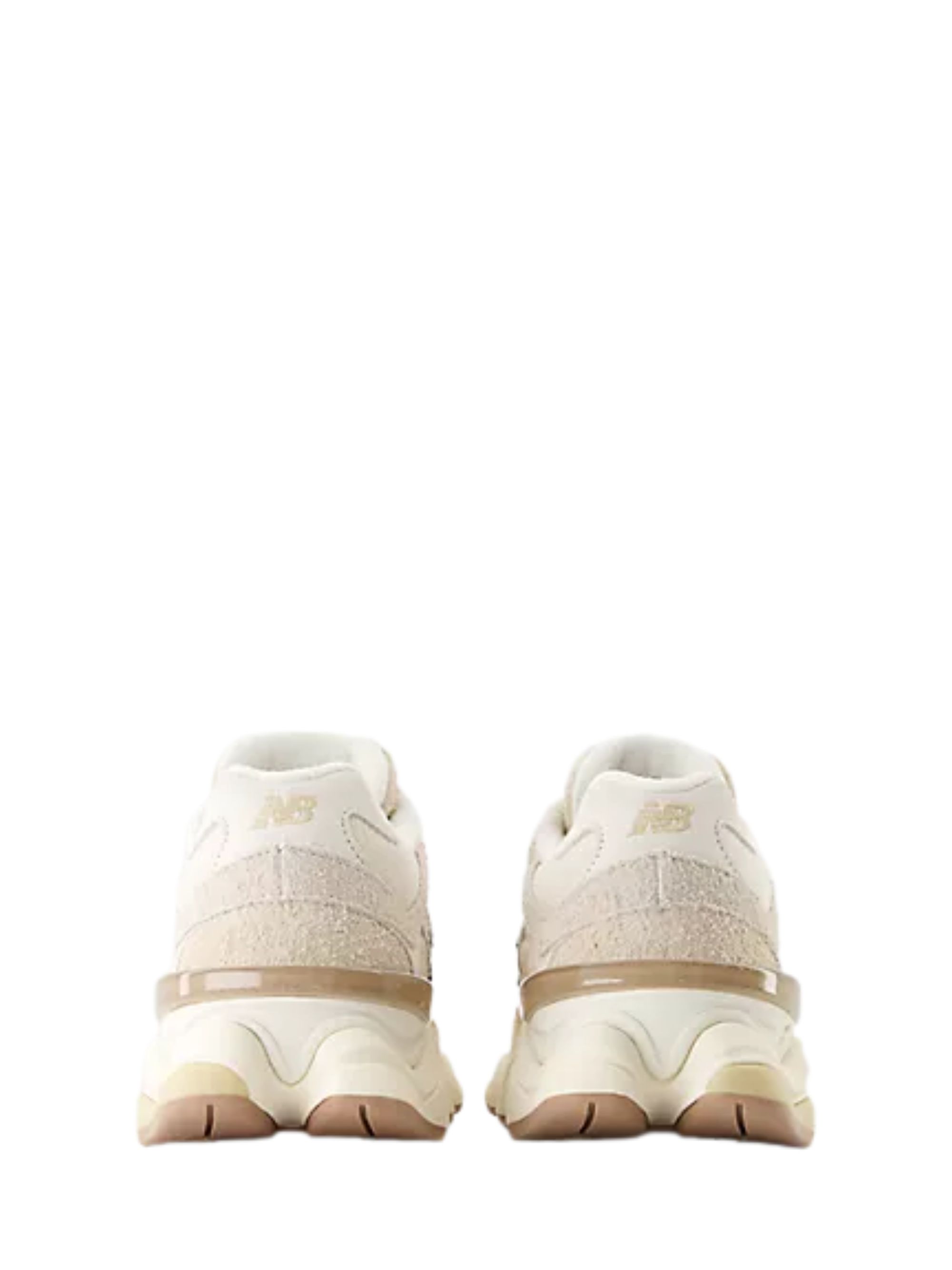NEW BALANCE 9060 sneaker in pink leather and mesh, featuring a cushioned midsole, logo on the tongue and diamond pattern on the sole.