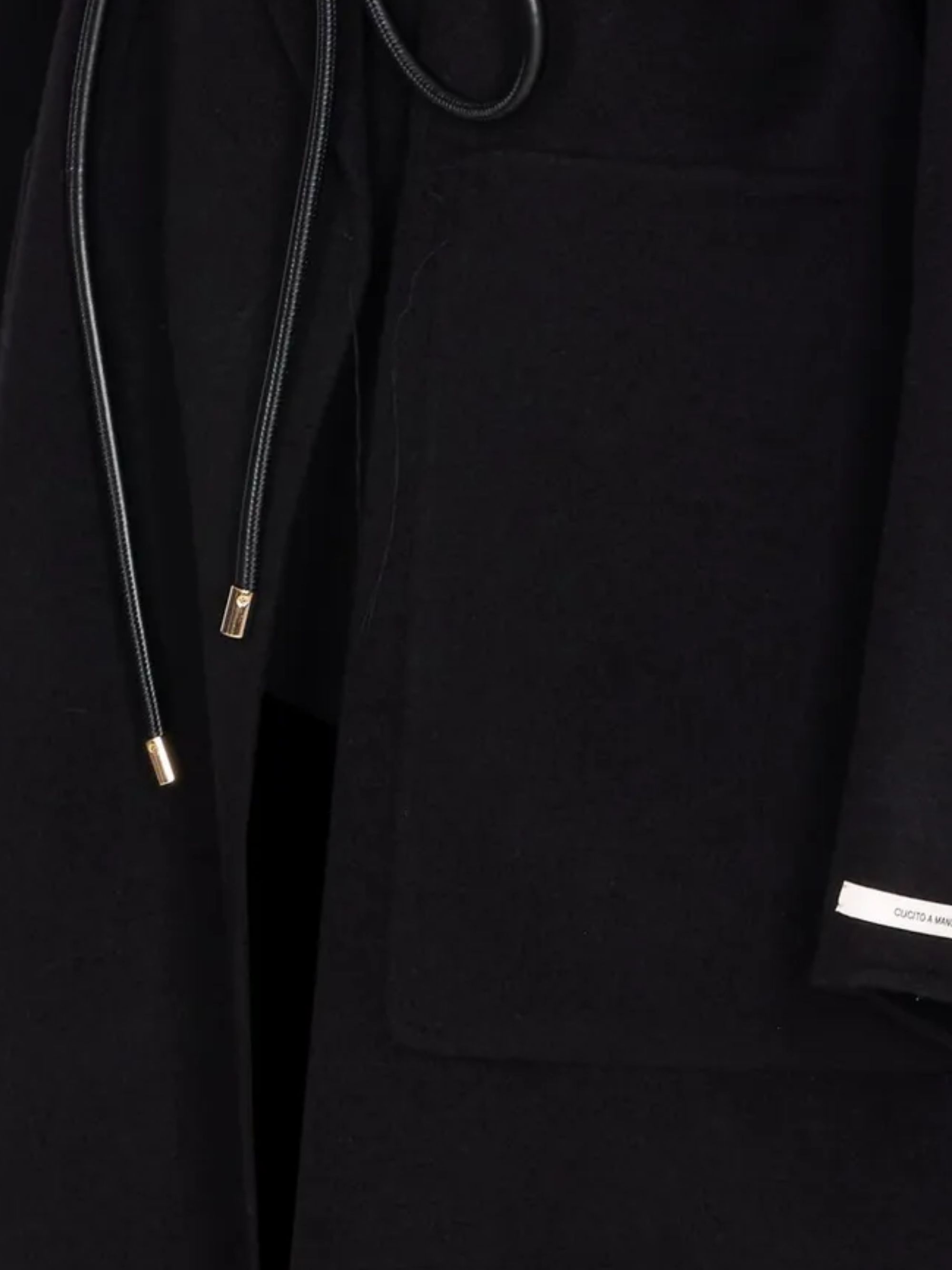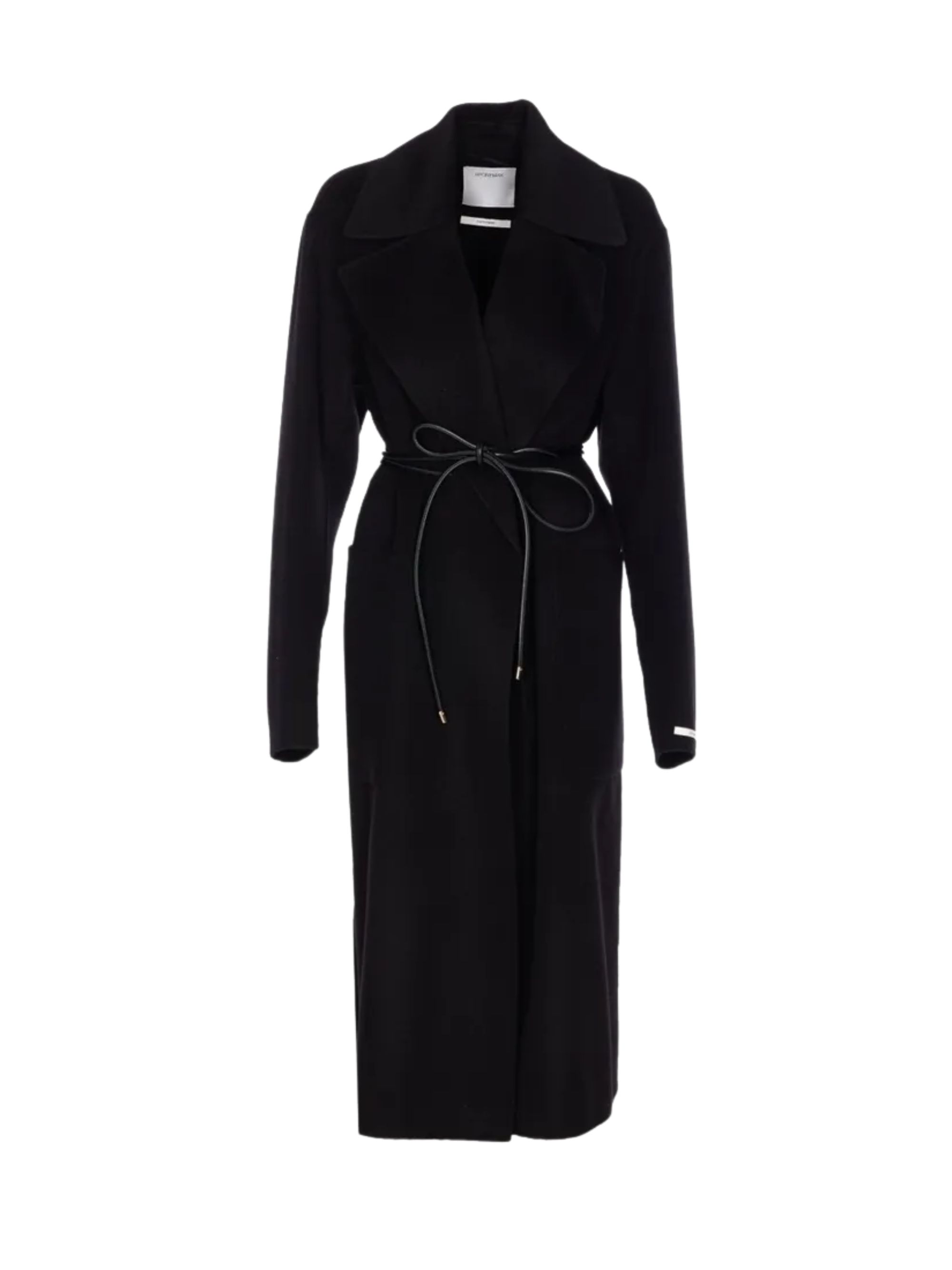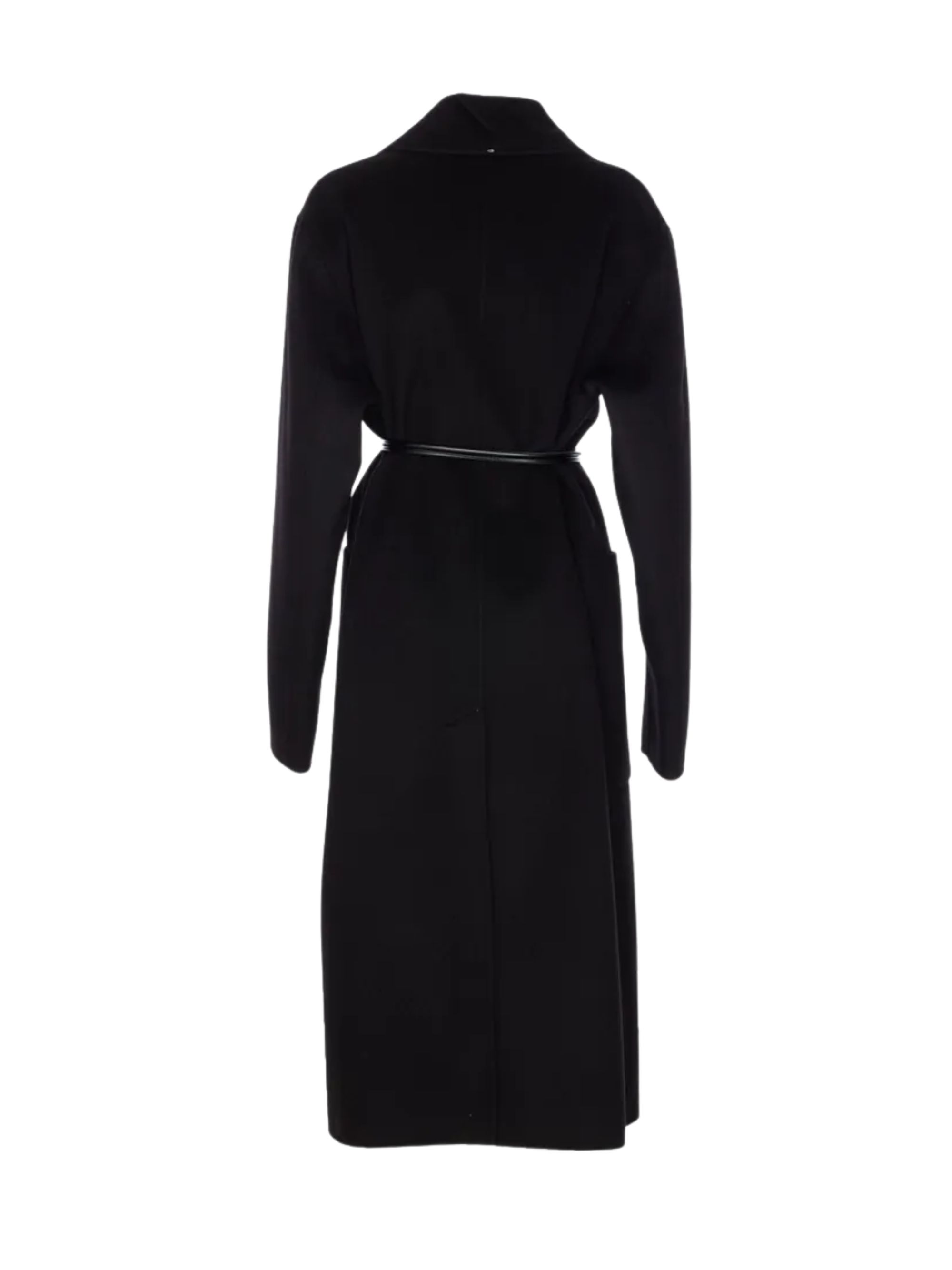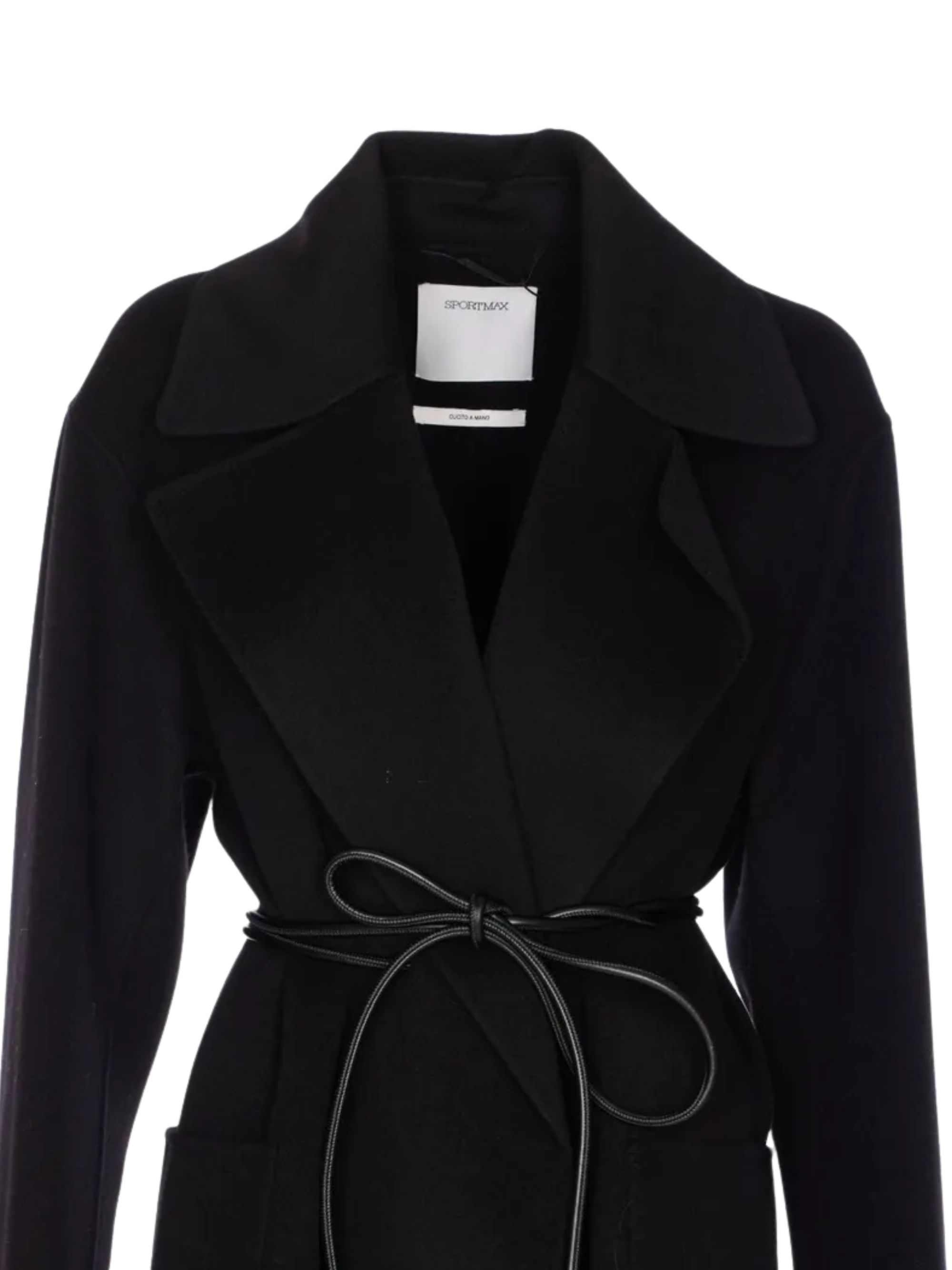 SPORTMAX black wool Abate coat featuring a V-neck, classic lapels, front pockets and a kimono-style belted closure.