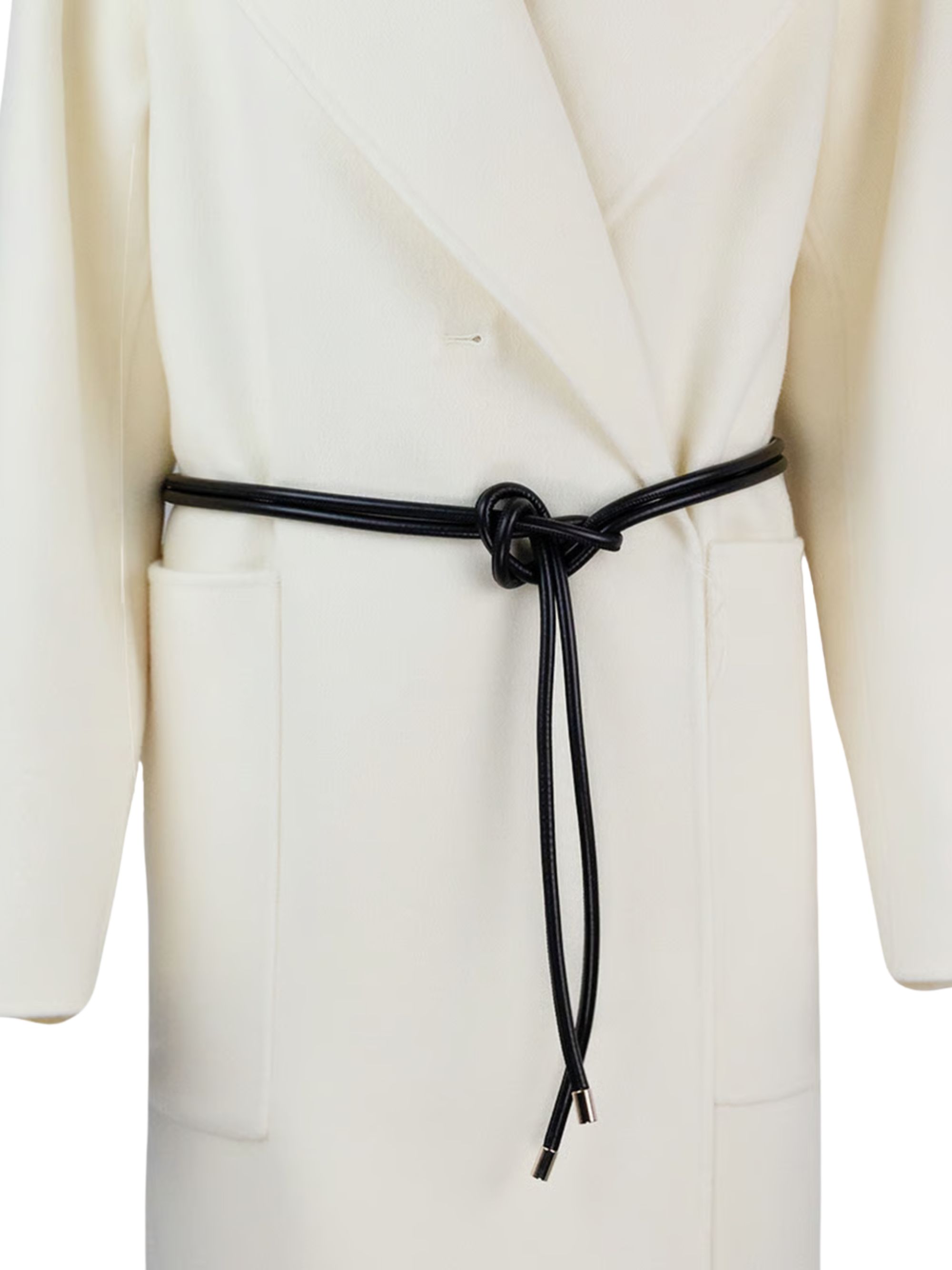 SPORTMAX white wool Abate coat featuring a V-neck, classic lapels, front pockets and a kimono-style belted closure.