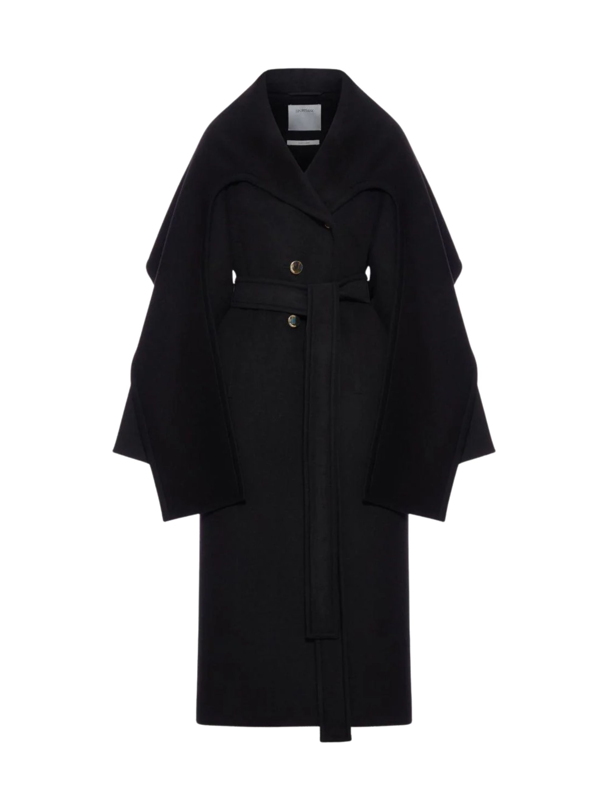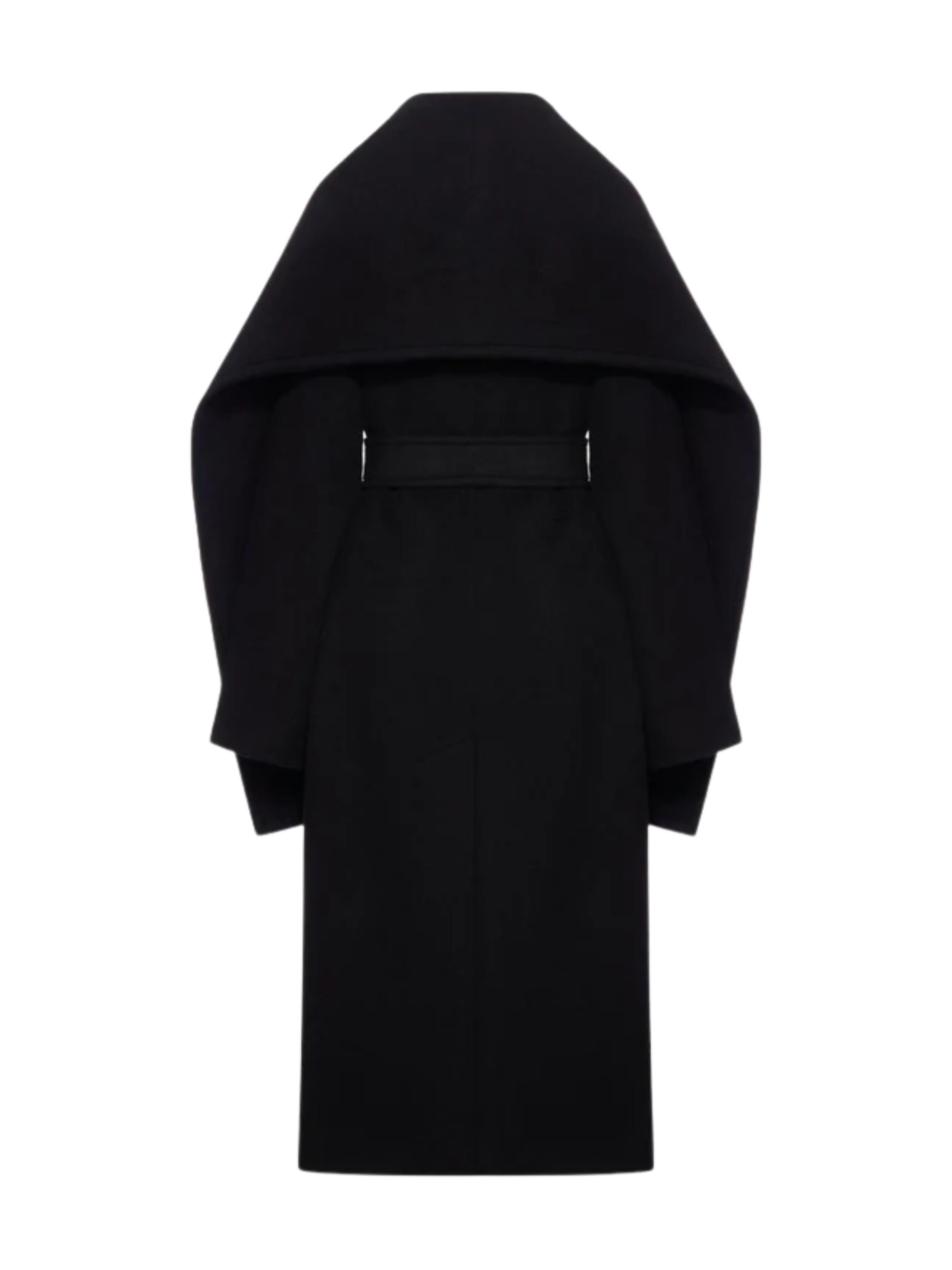 SPORTMAX Baldo coat in black wool, featuring gold button fastening and belt at the waist.