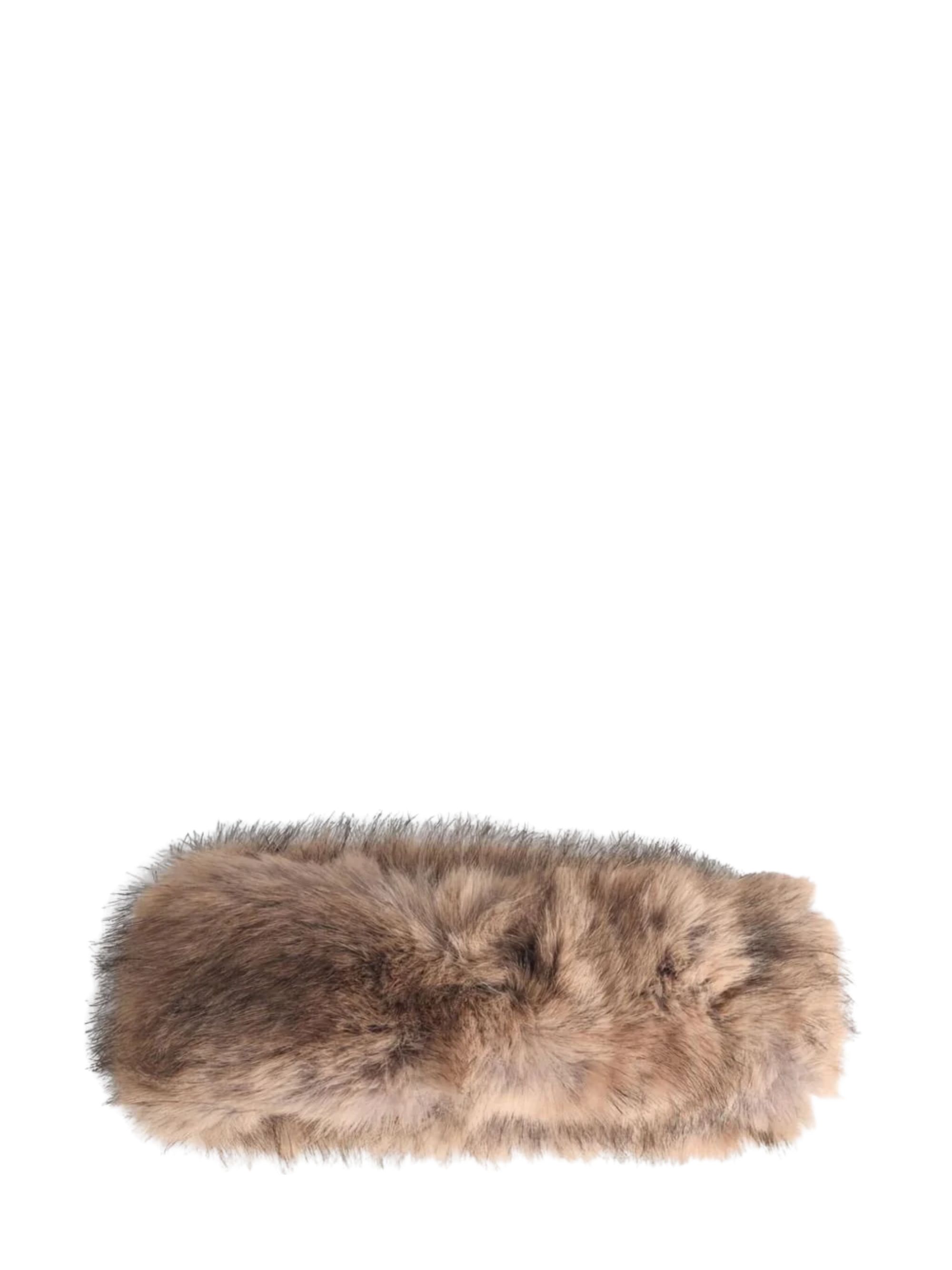 STAND STUDIO Zephyra beige elasticated faux fur headband.