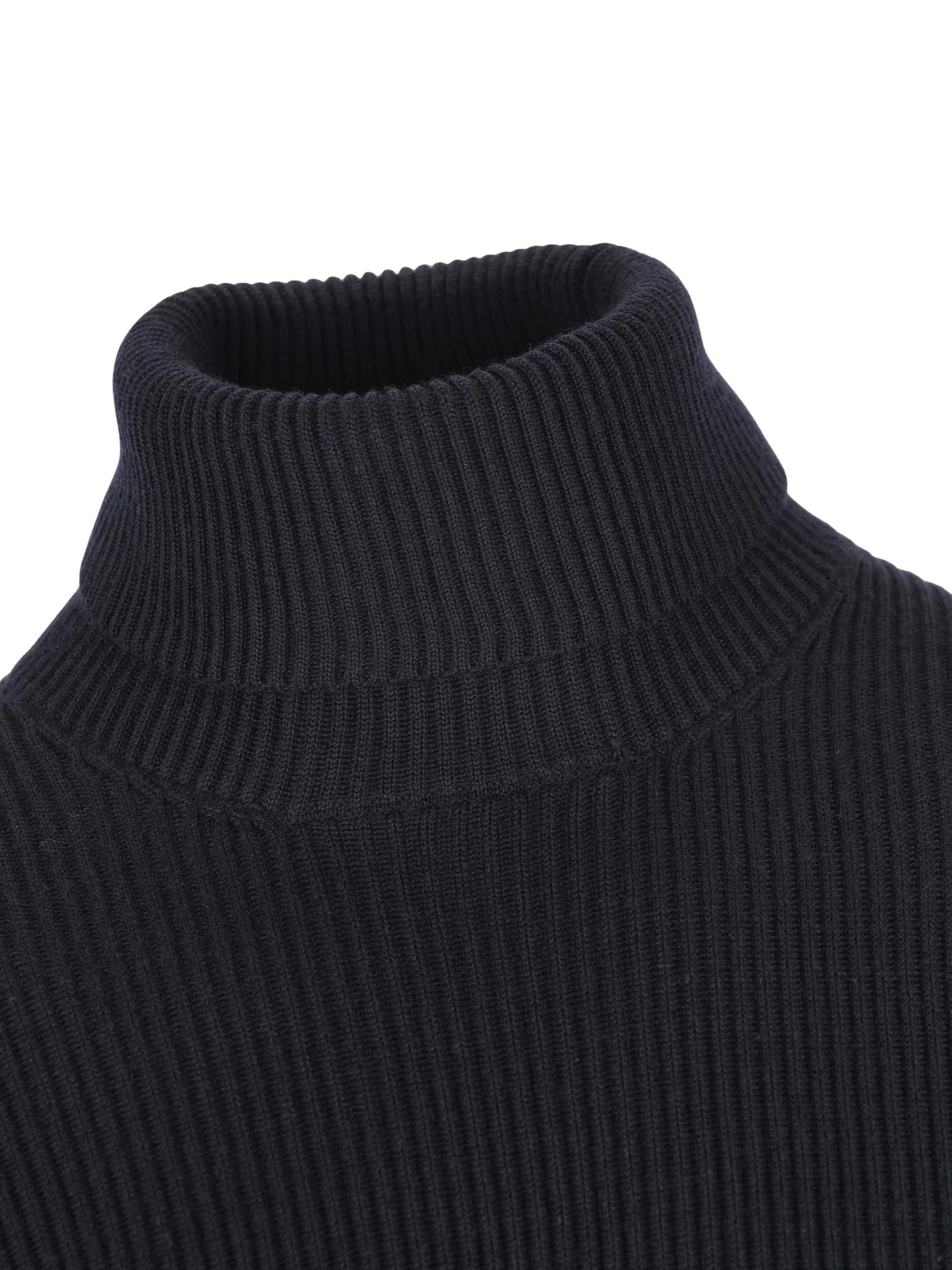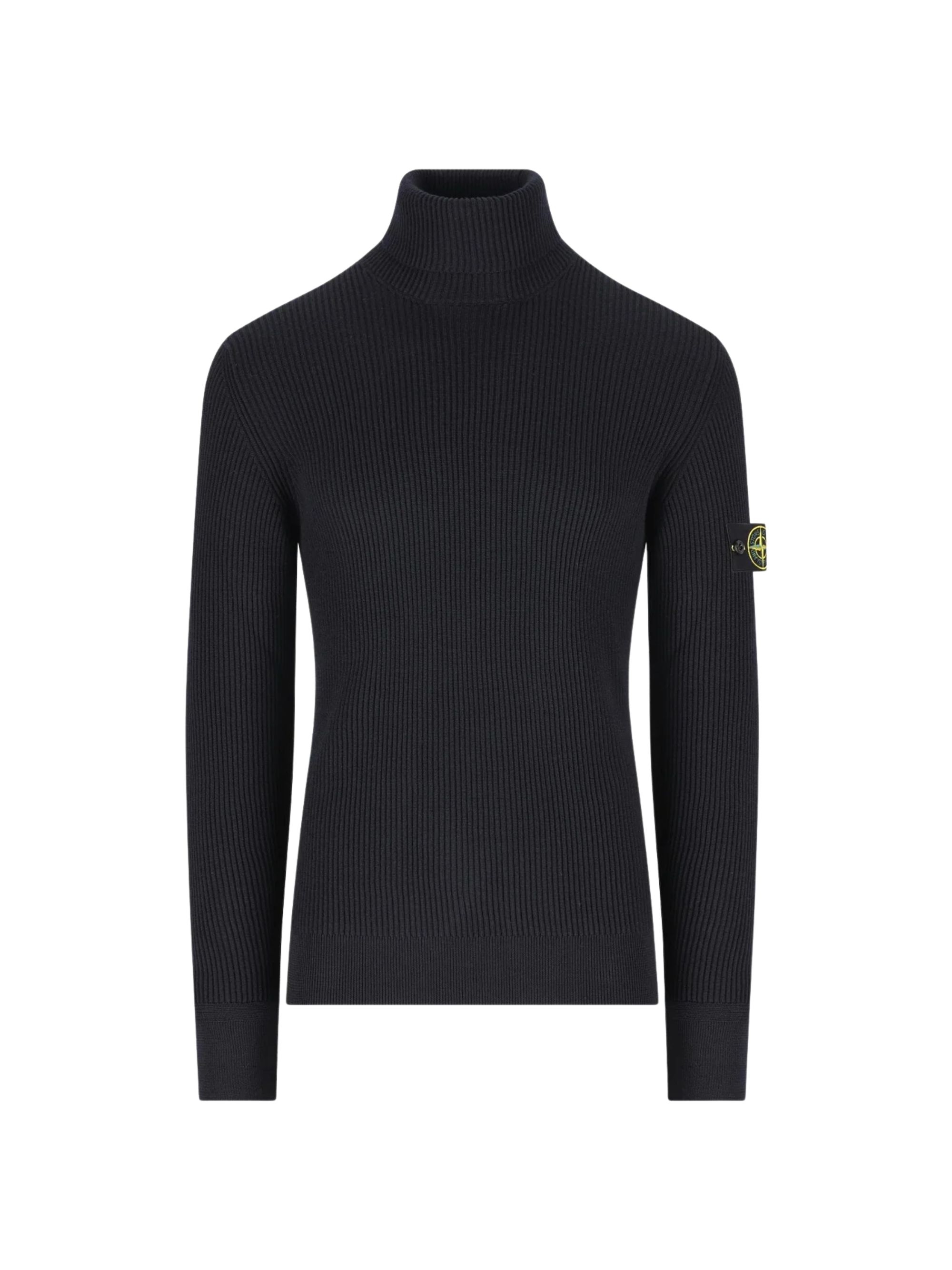 STONE ISLAND full rib turtleneck sweater in blue wool, featuring thick ribbed workmanship, a high neck and logo applied on the arm.