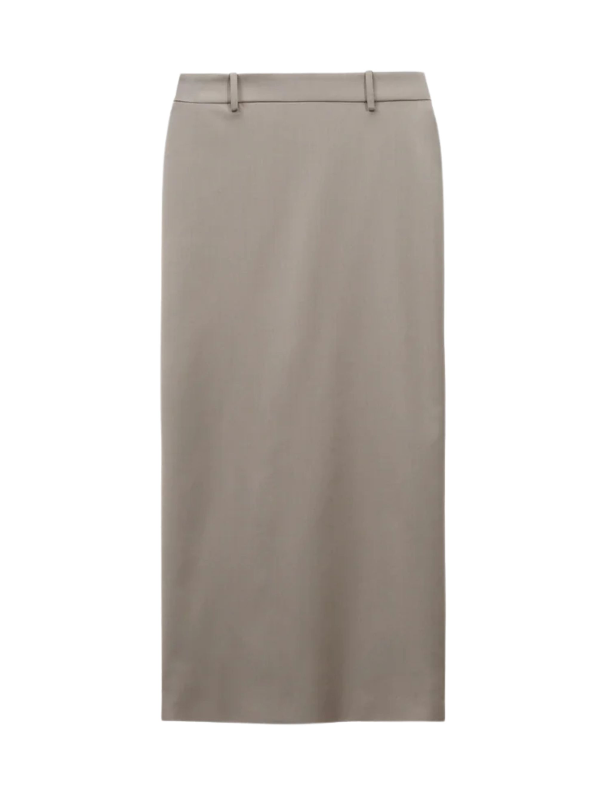 Alrose midi skirt by THE FRANKIE SHOP in beige wool, featuring a high waist, belt loops, a back slit, a back zip fastening and a slim fit.
