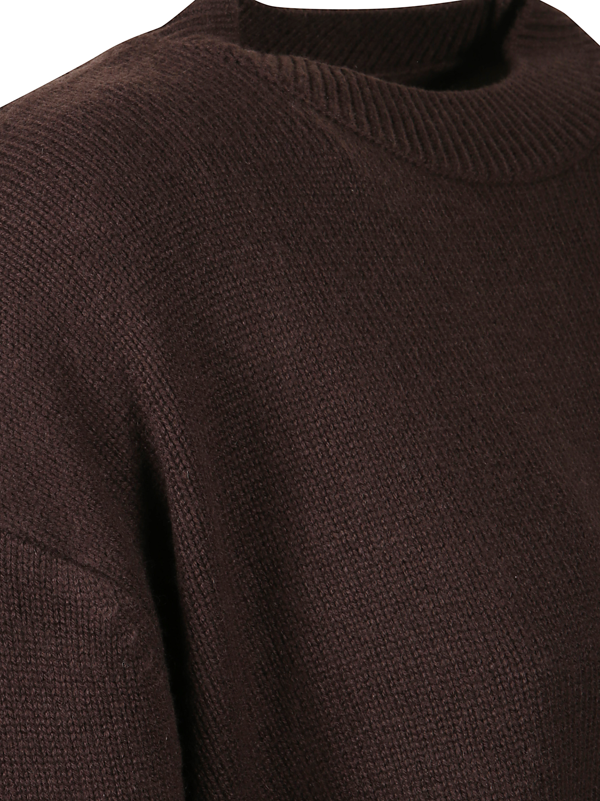 Rafaela padded sweater by THE FRANKIE SHOP in brown wool, featuring a round neck, padded shoulders, ribbed finishing and an oversized fit.