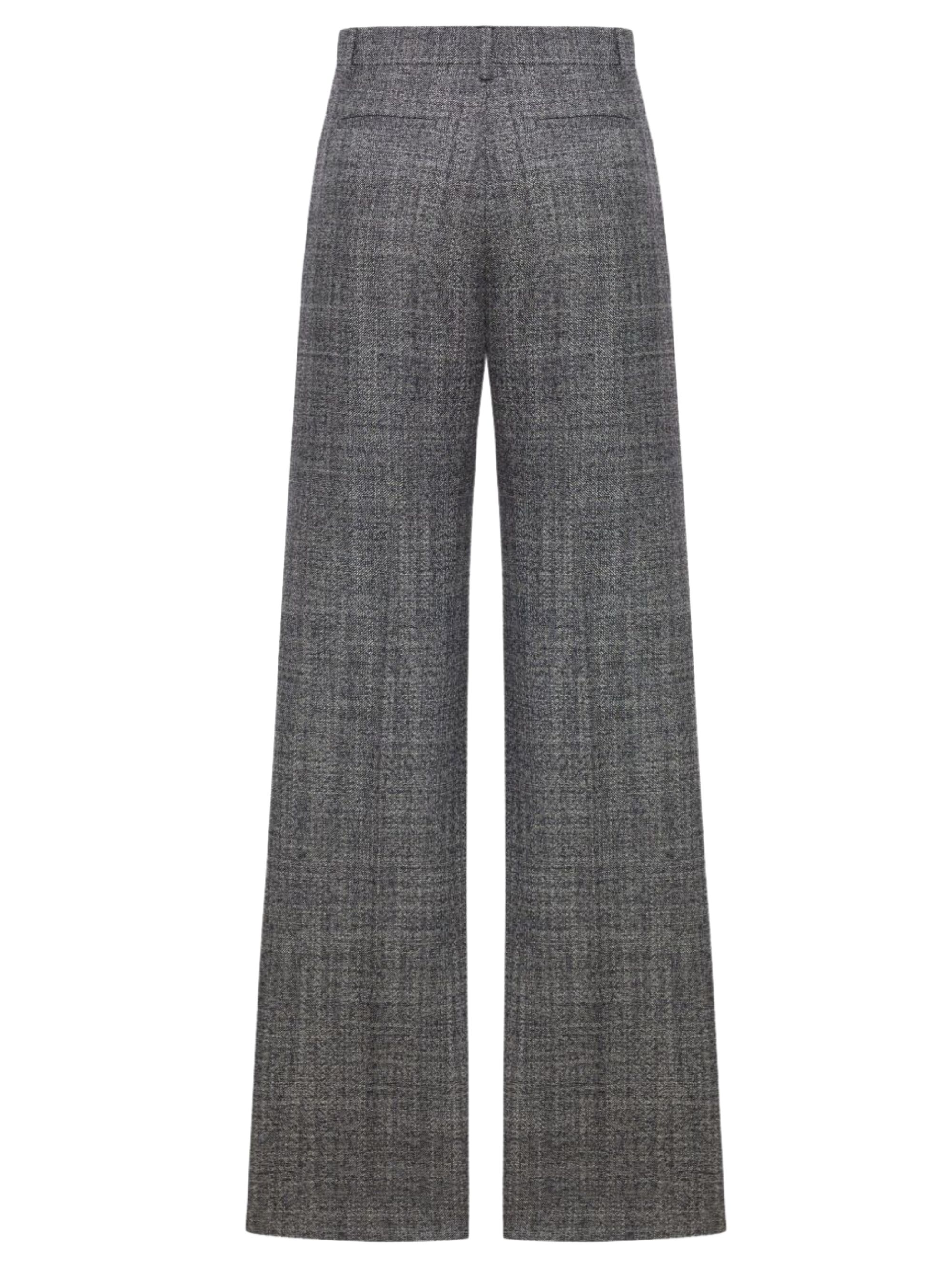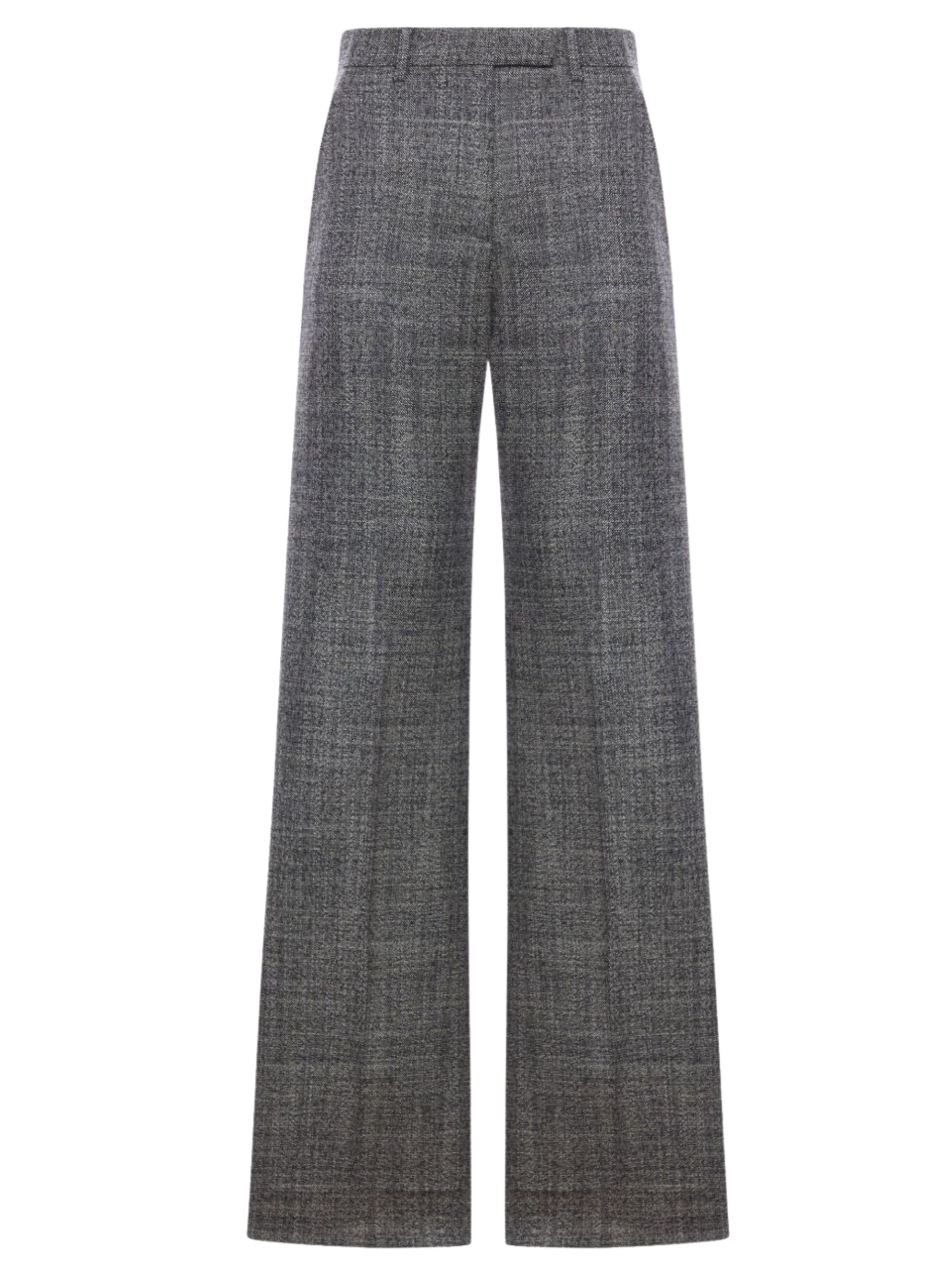 Grey mouliné wool trousers by VALENTINO, featuring a front zip and hook fastening, wide leg, an all-over checked pattern, side pockets and belt loops.