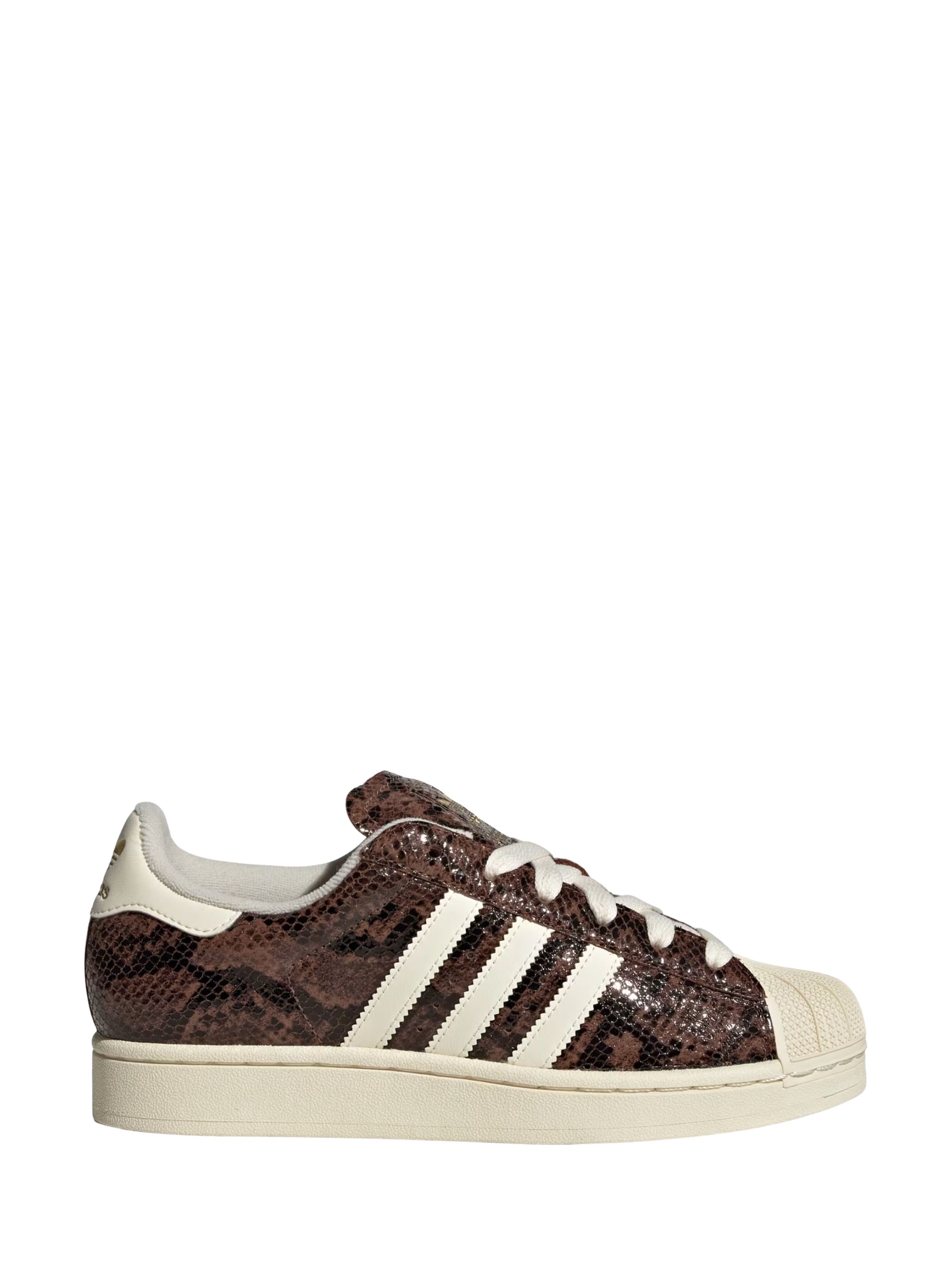 Sneaker Superstar II di ADIDAS marrone e bianca in pelle, caratterizzata da fodera in tessuto, chiusura con lacci e suola in gomma.