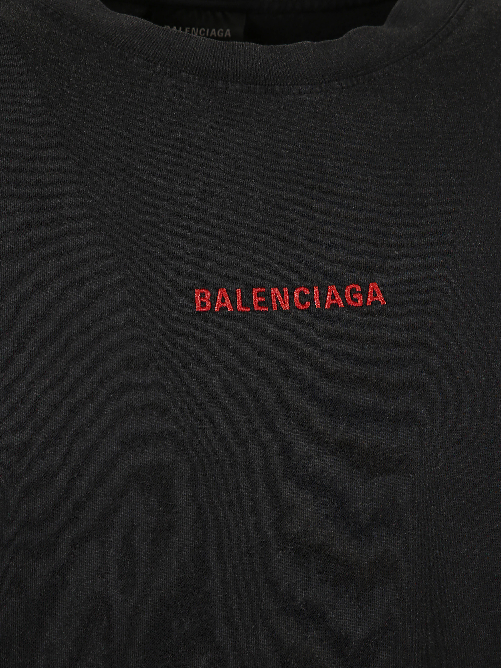 T-shirt Back Medium Fit di BALENCIAGA nera in jersey dry, girocollo e motivo Balenciaga ricamato sul davanti e sul retro.