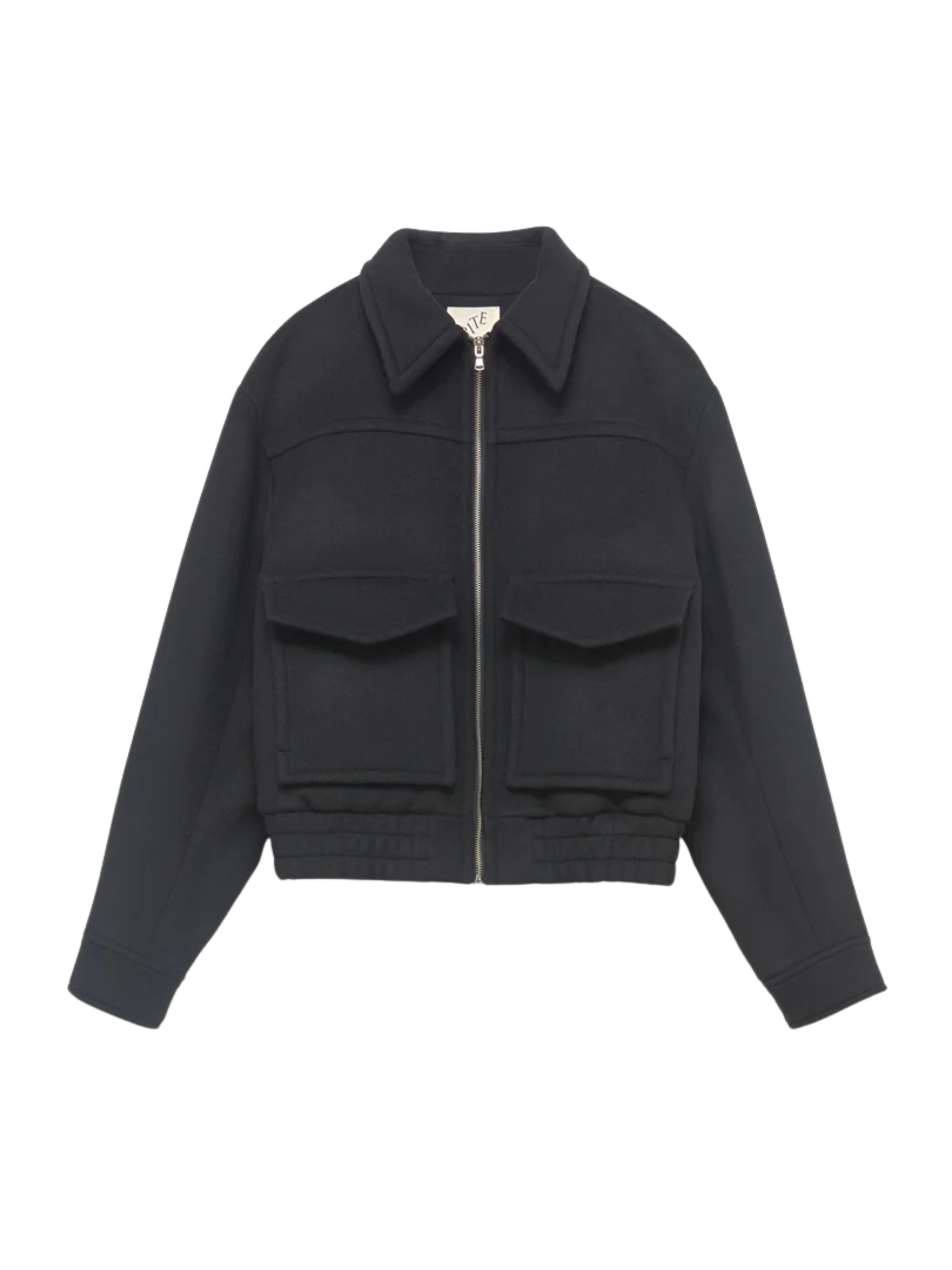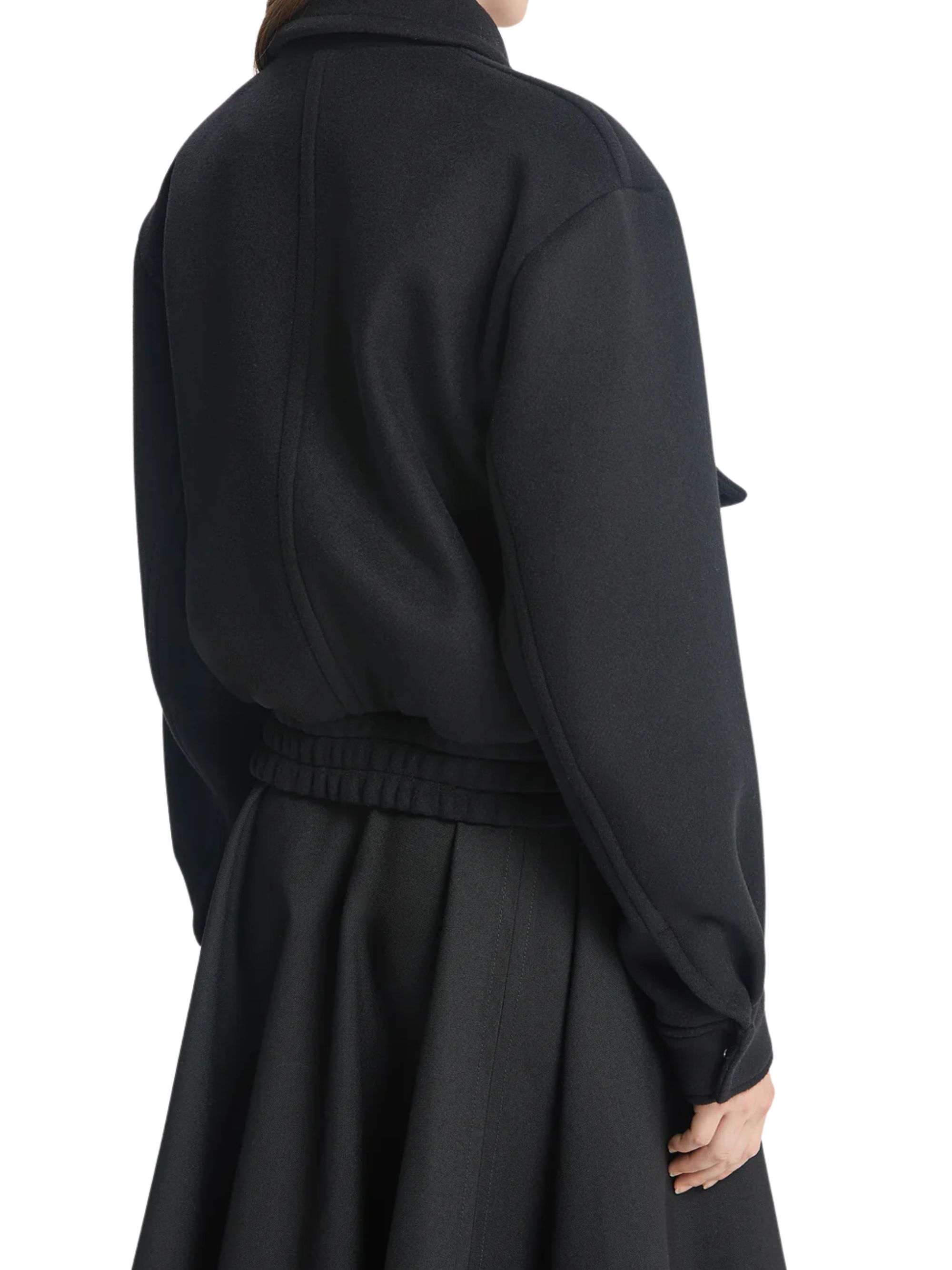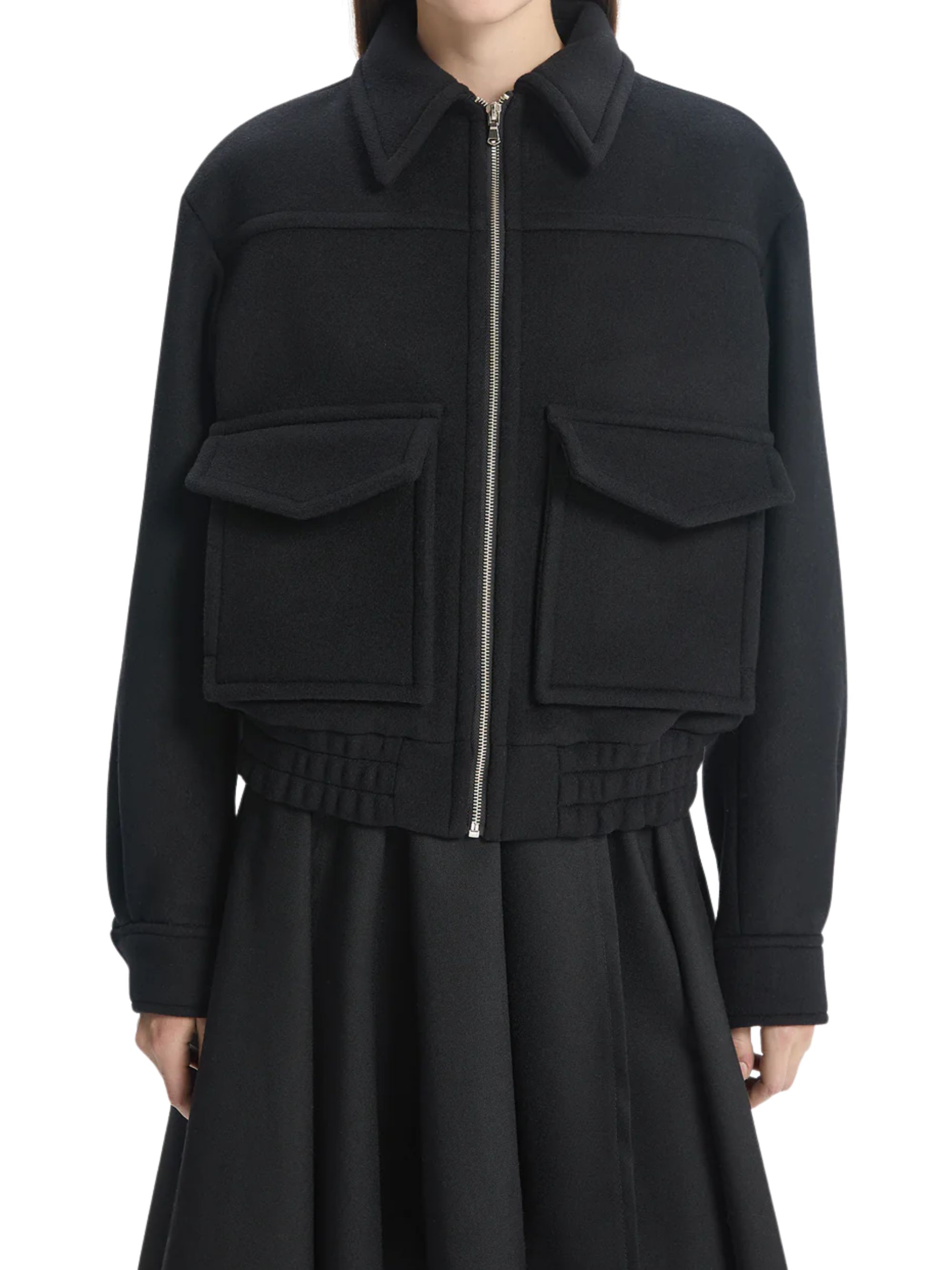 Giacca Cila di BITE STUDIOS nera in lana, caratterizzata da orlo elasticizzato, tasche con patta e chiusura centrale con zip.