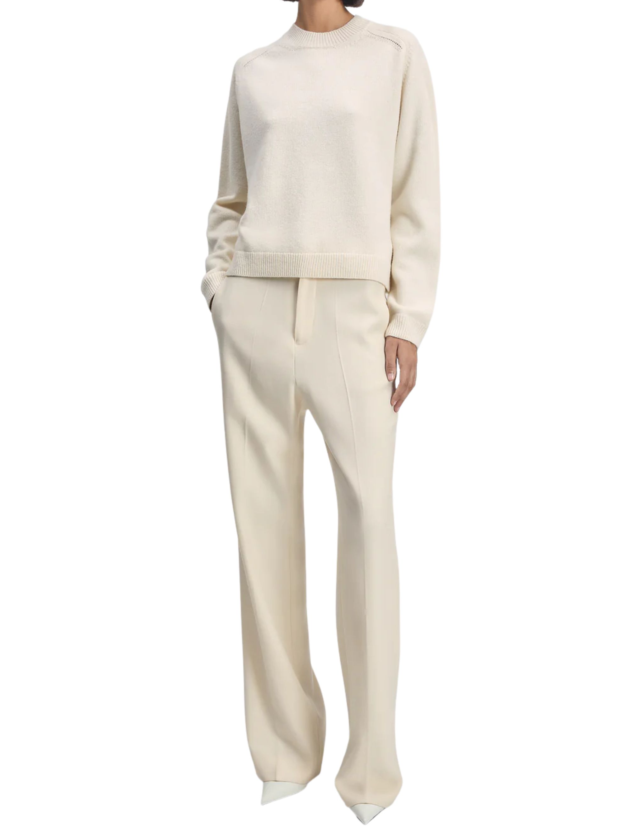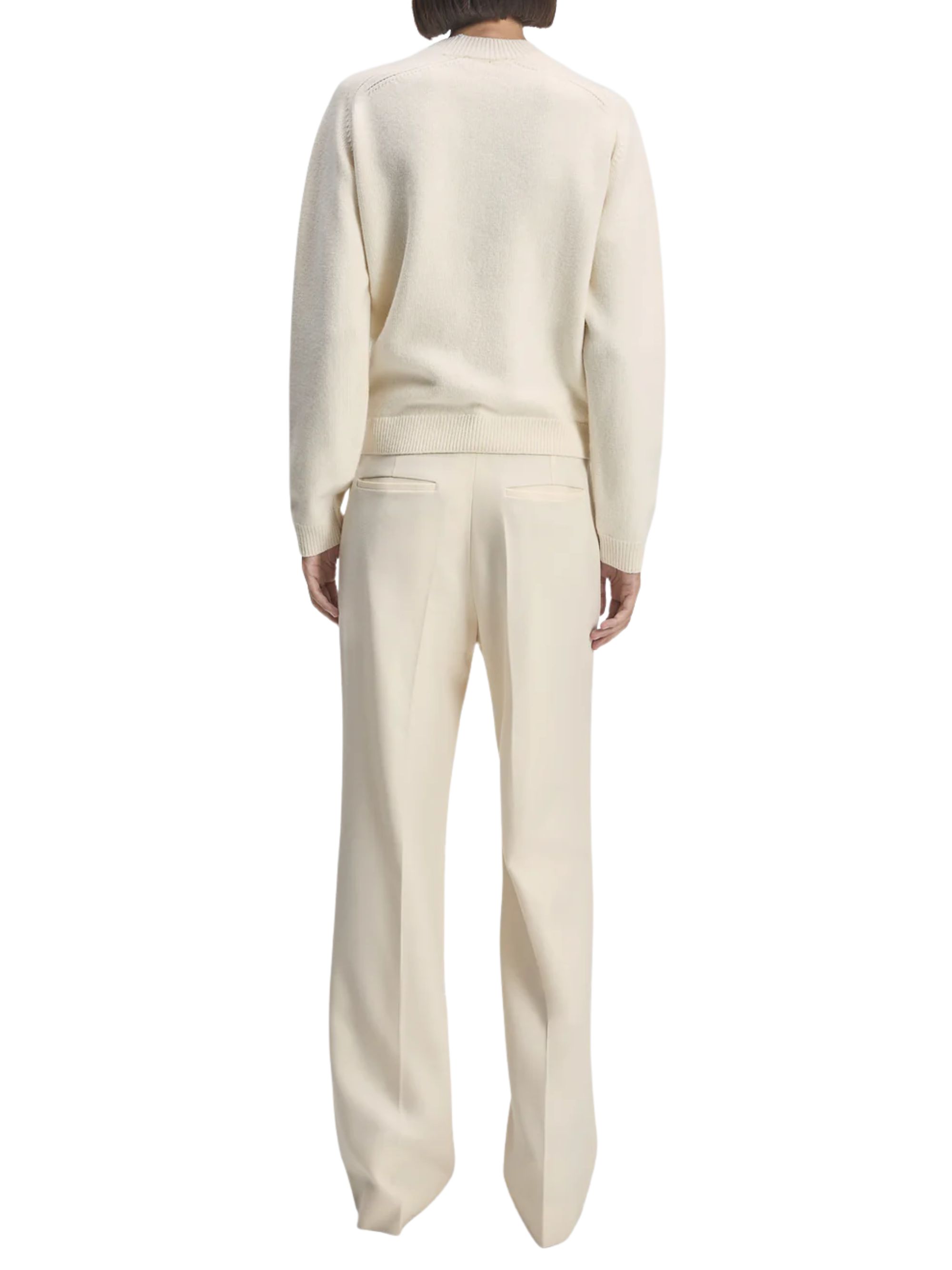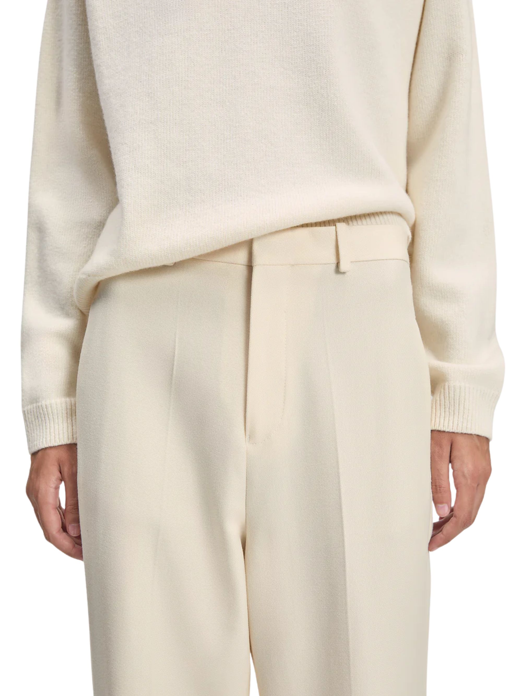 Pantalone dritto Credo di BITE STUDIOS bianco in lana, caratterizzato da vita alta, passanti per cintura, chiusura con cerniera e tasche laterali.