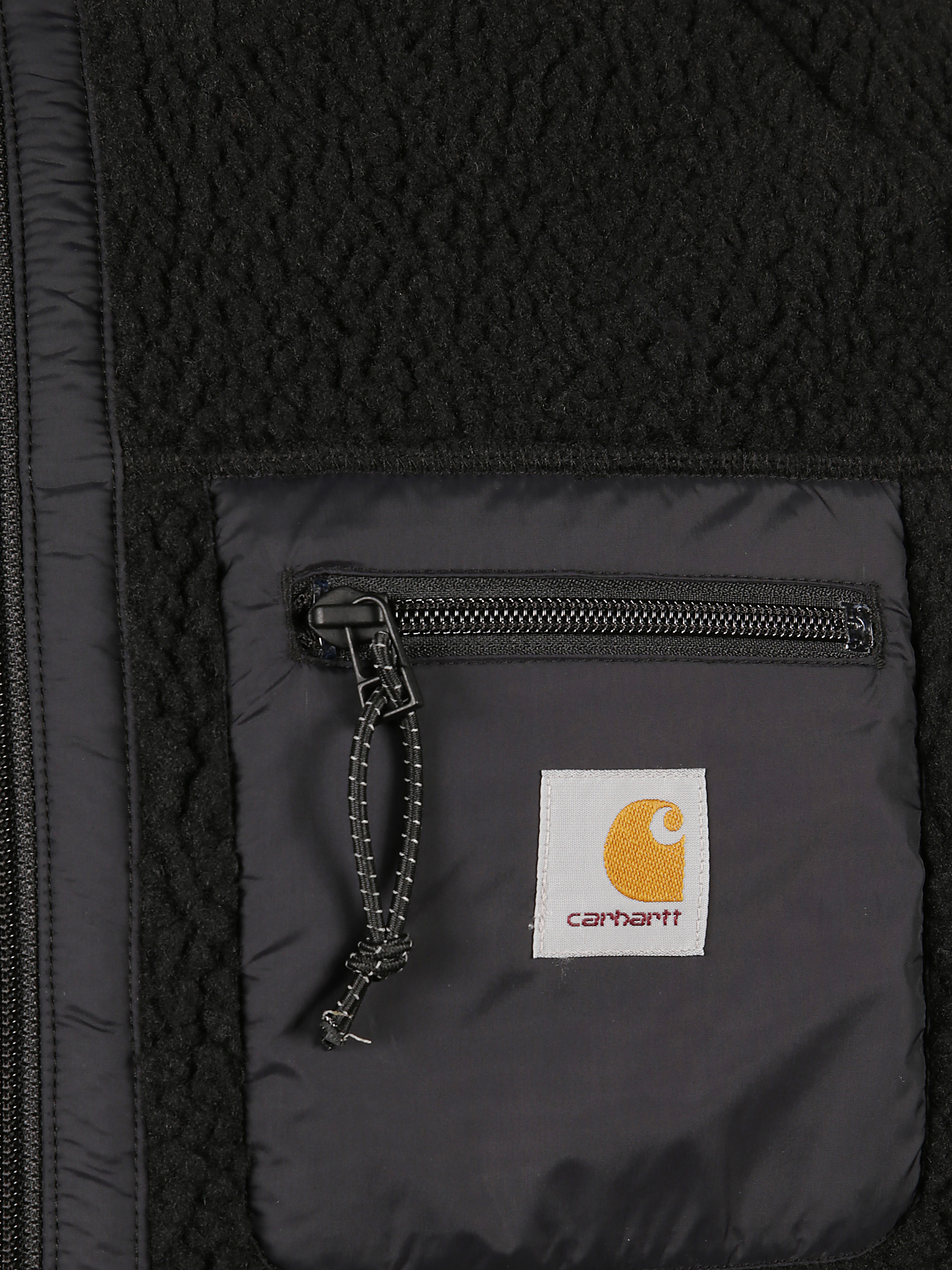 Pile Prentis Liner di CARHARTT WIP nero in pile, caratterizzato da dettagli in taffetà di nylon, taschino sul petto con zip, patch con logo, imbottitura a rete, chiusura anteriore e tasche laterali.