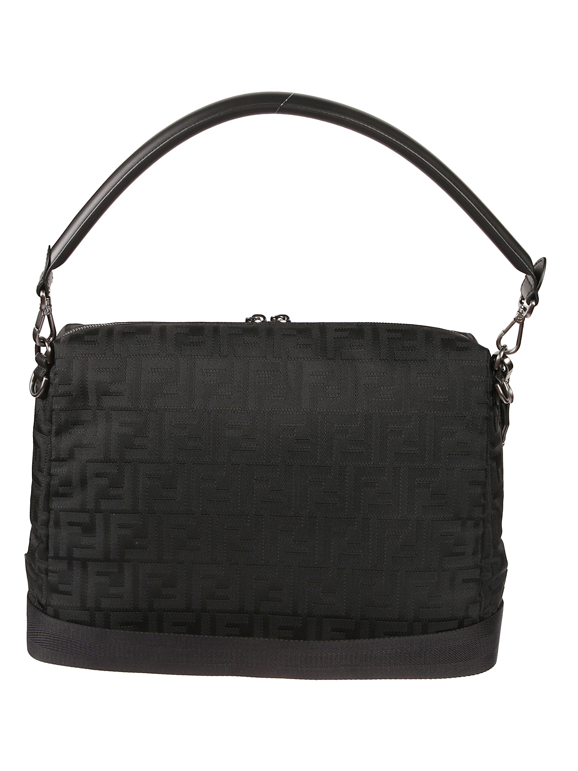 Borsa Fendi Lui grande di FENDI nera in nylon FF, caratterizzata da texture lucida e goffrata, chiusura con zip a doppio cursore, applicazioni metalliche FF sugli angoli, manico rimovibile e tracolla regolabile. Dimensioni: 27 x 13 x 34 CM.