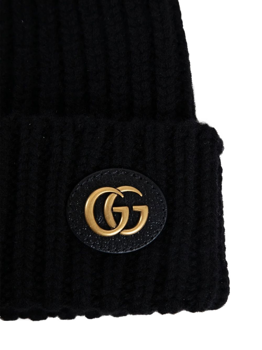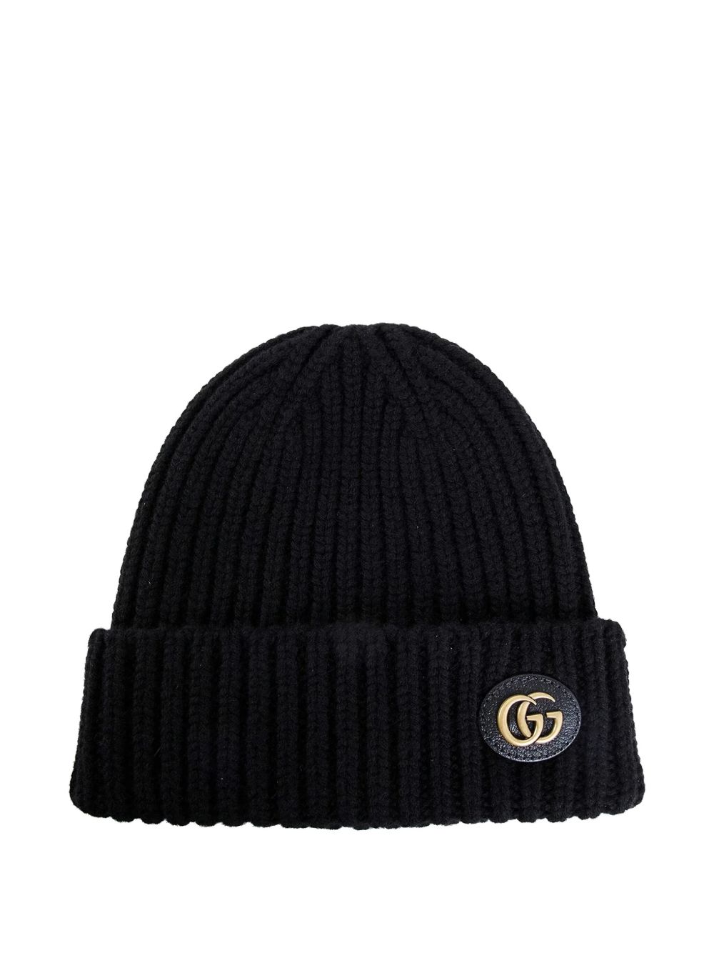 Berretto nero di GUCCI caratterizzato da placca metallica con logo.