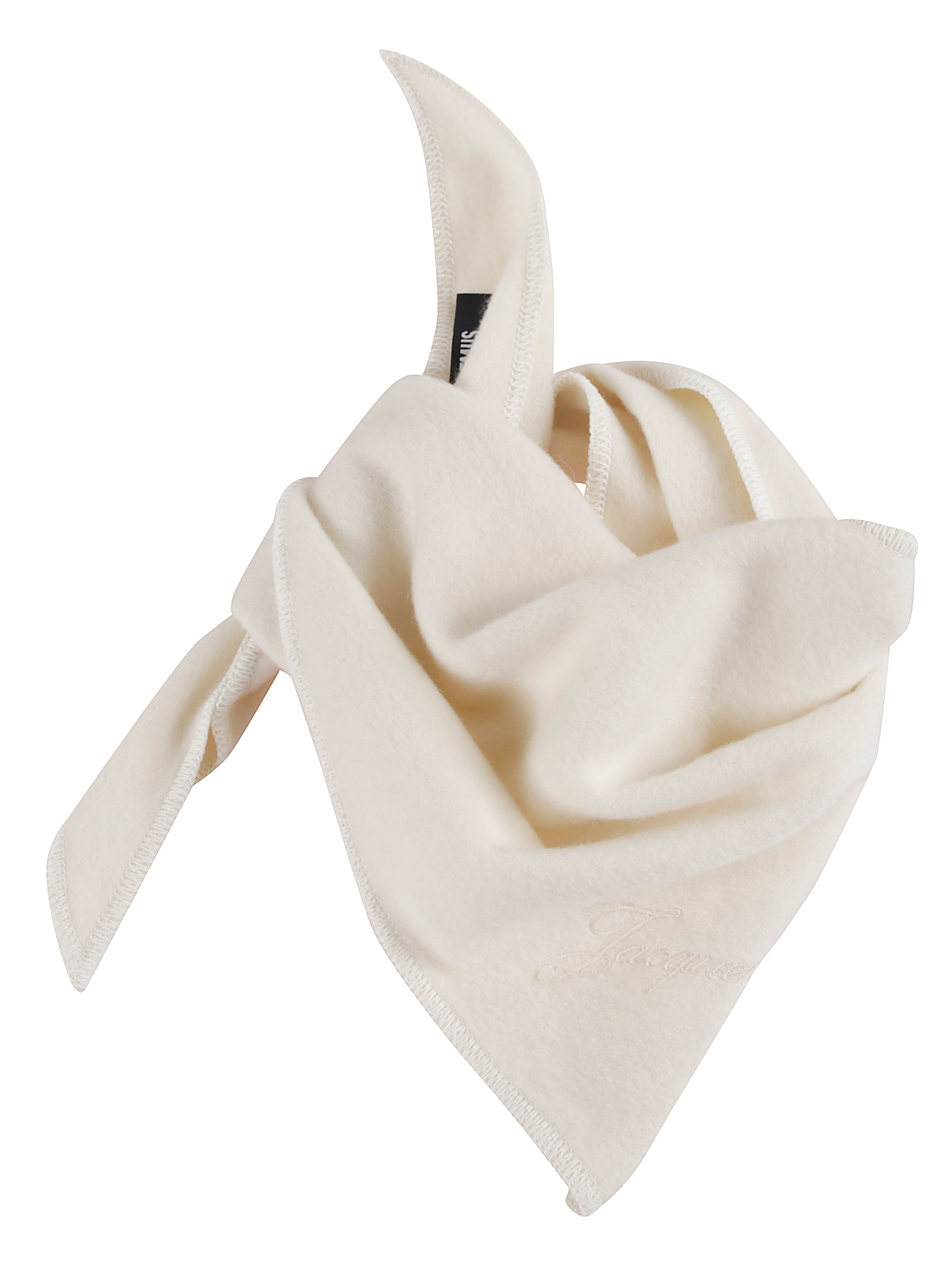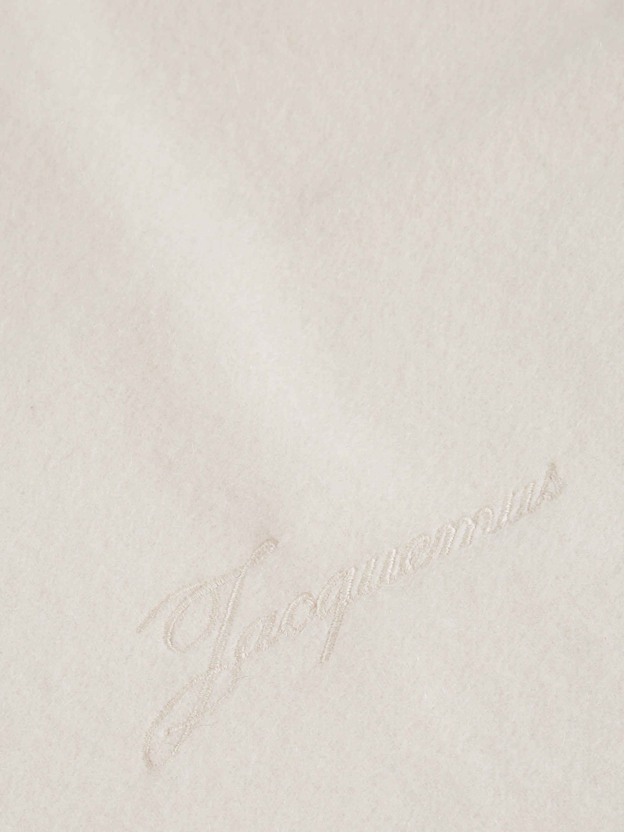 Bandana Cachemiro di JACQUEMUS color panna in cashmere, caratterizzata da forma triangolare, logo ricamato sul davanti e bordi overlock.