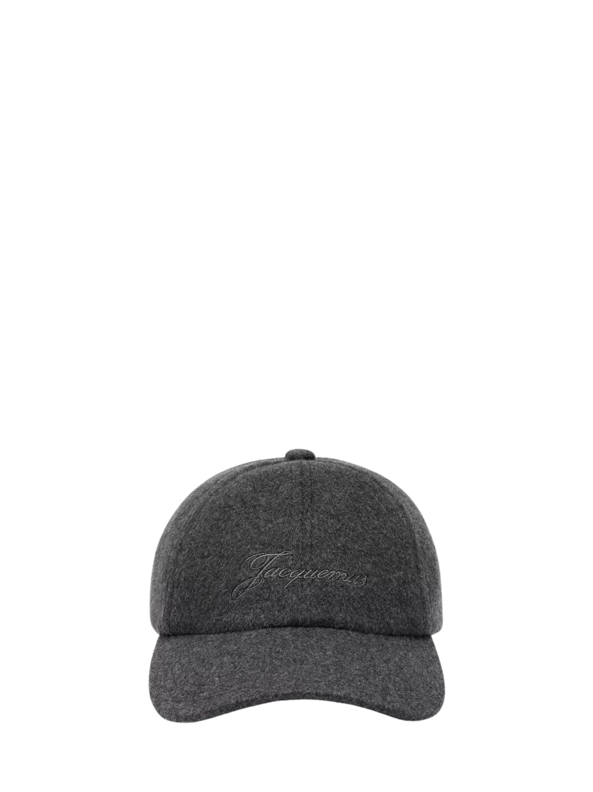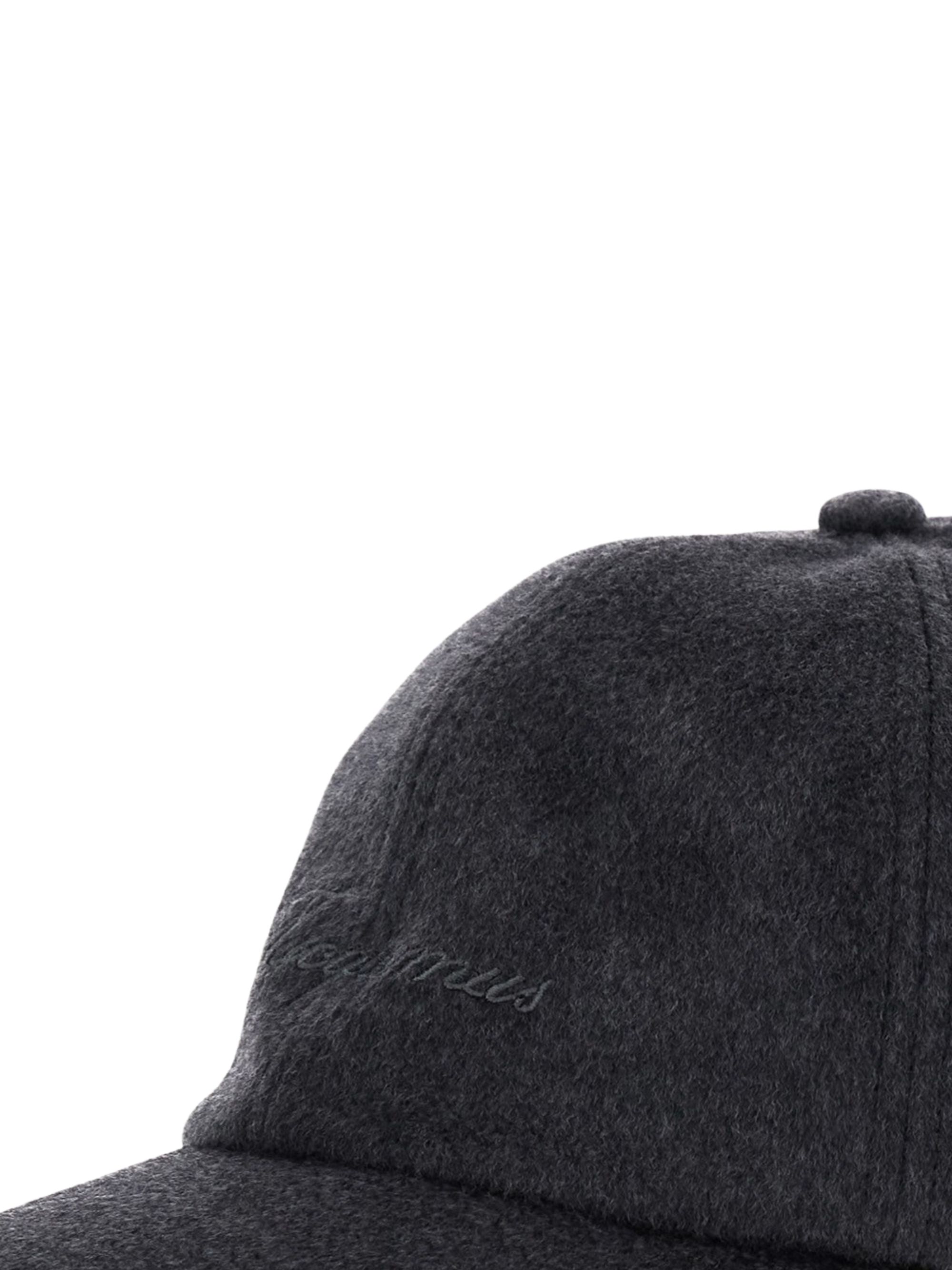Cappellino da baseball Cachemiro di JACQUEMUS grigio in lana, caratterizzato da tesa impunturata, logo ricamato sul davanti e fibbia posteriore rotonda e quadrata.