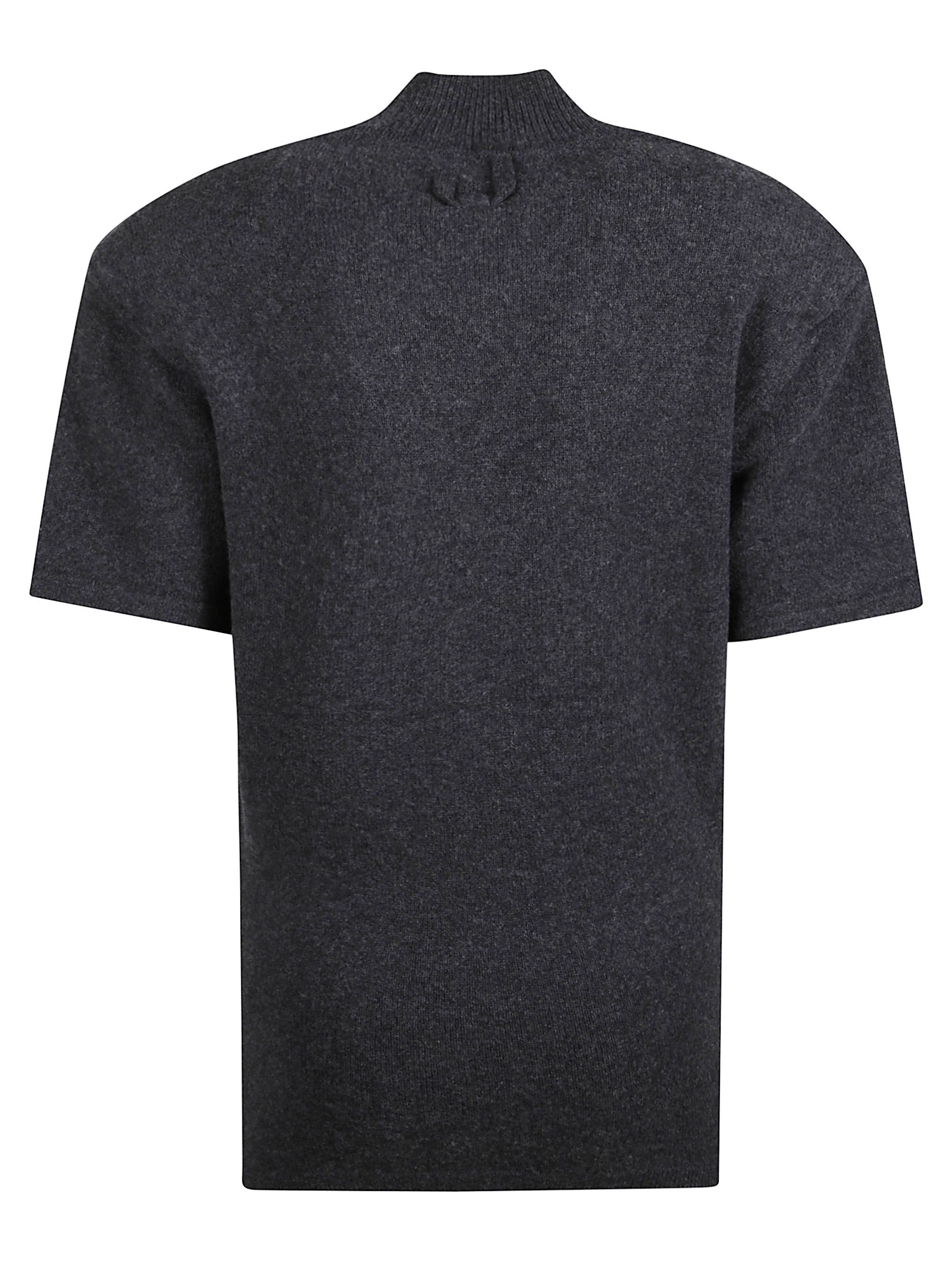 Maglia Castagna di JACQUEMUS grigia in lana e cashmere, caratterizzata da maniche 3/4 e passante J sul retro.