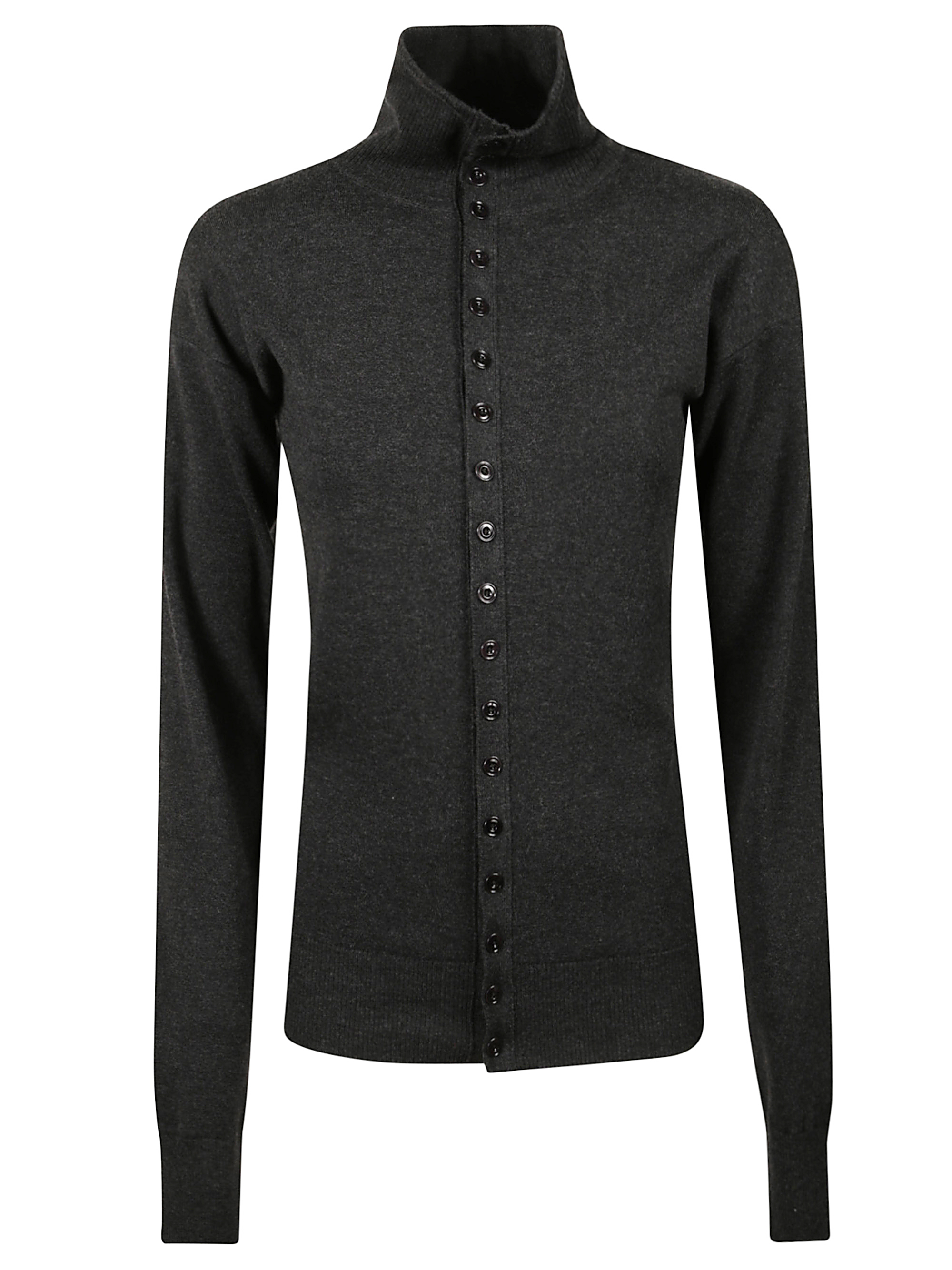 Cardigan aderente in lana con bottoni di LEMAIRE grigio, caratterizzato da collo alto e chiusura con bottoni.