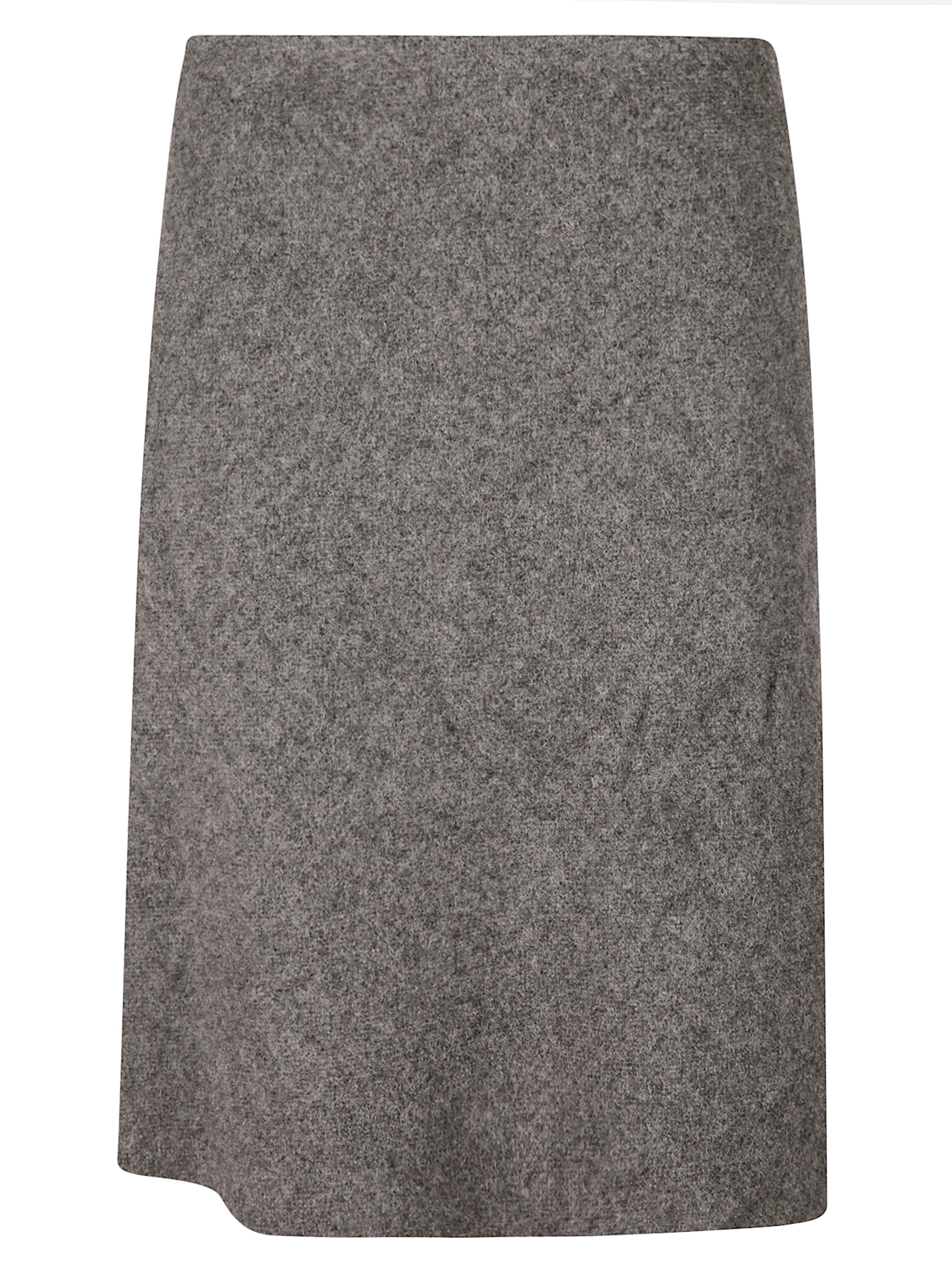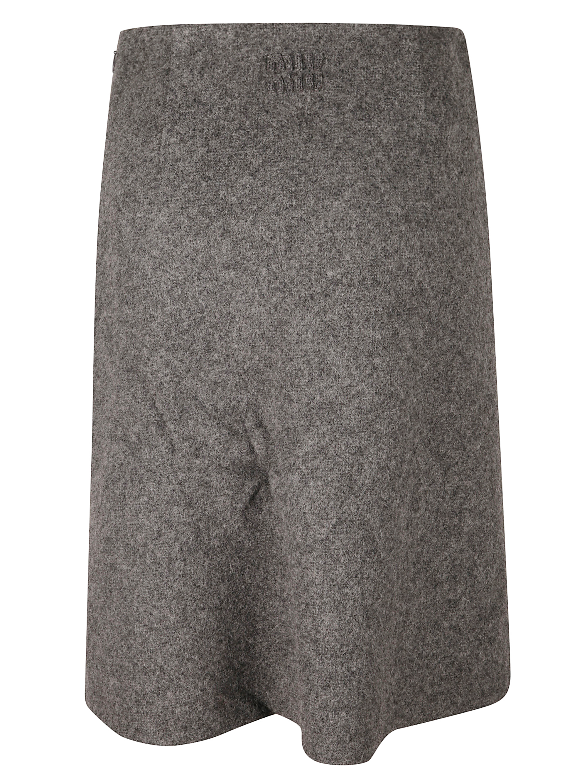 Gonna in Shetland From The Runway di MIU MIU grigia in lana Shetland, caratterizzata da vestibilità a tubino e logo tono su tono.