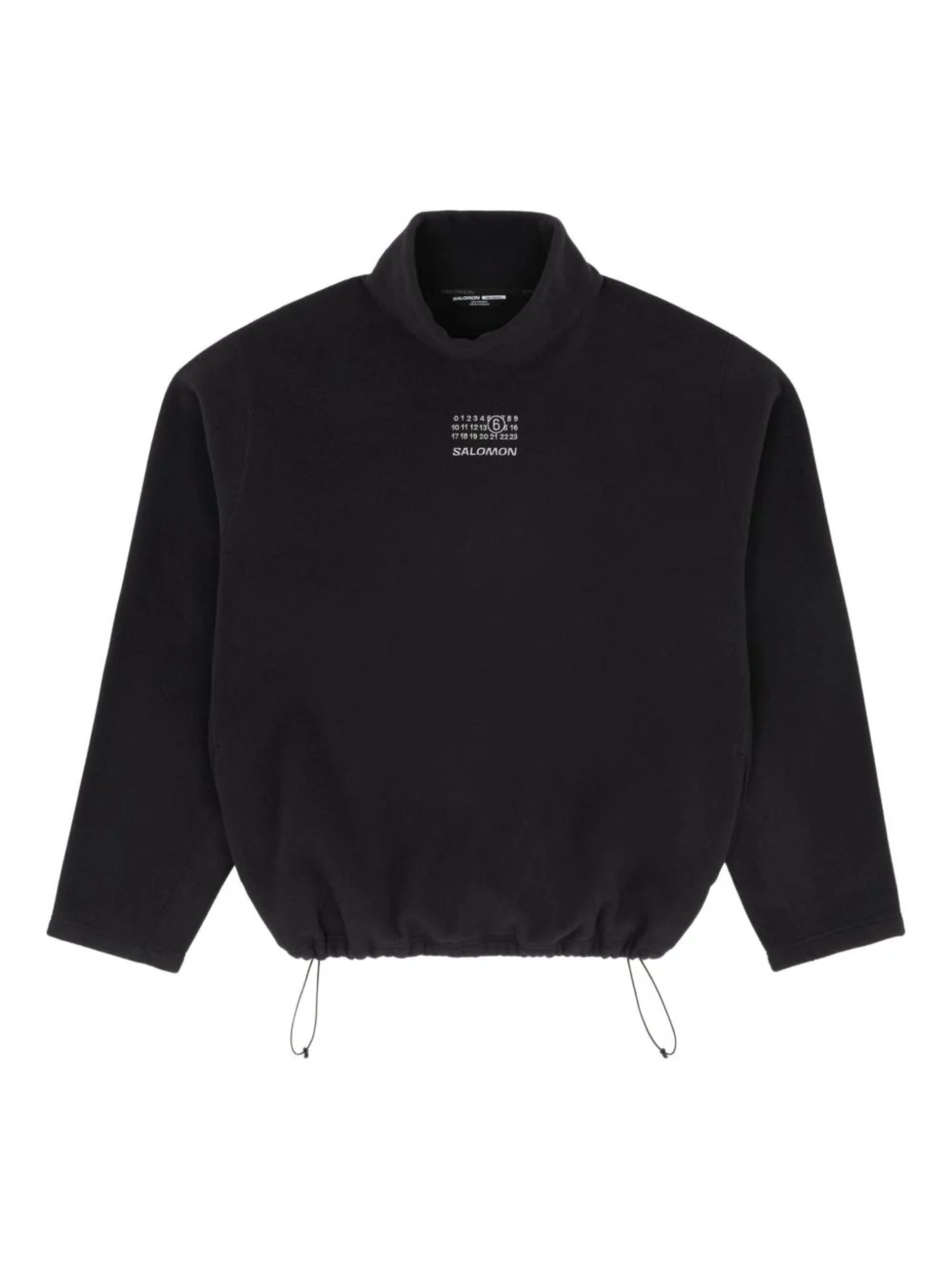 T-shirt Turtle-Neck di MM6 X SALOMON nera in pile con logo e coulisse.