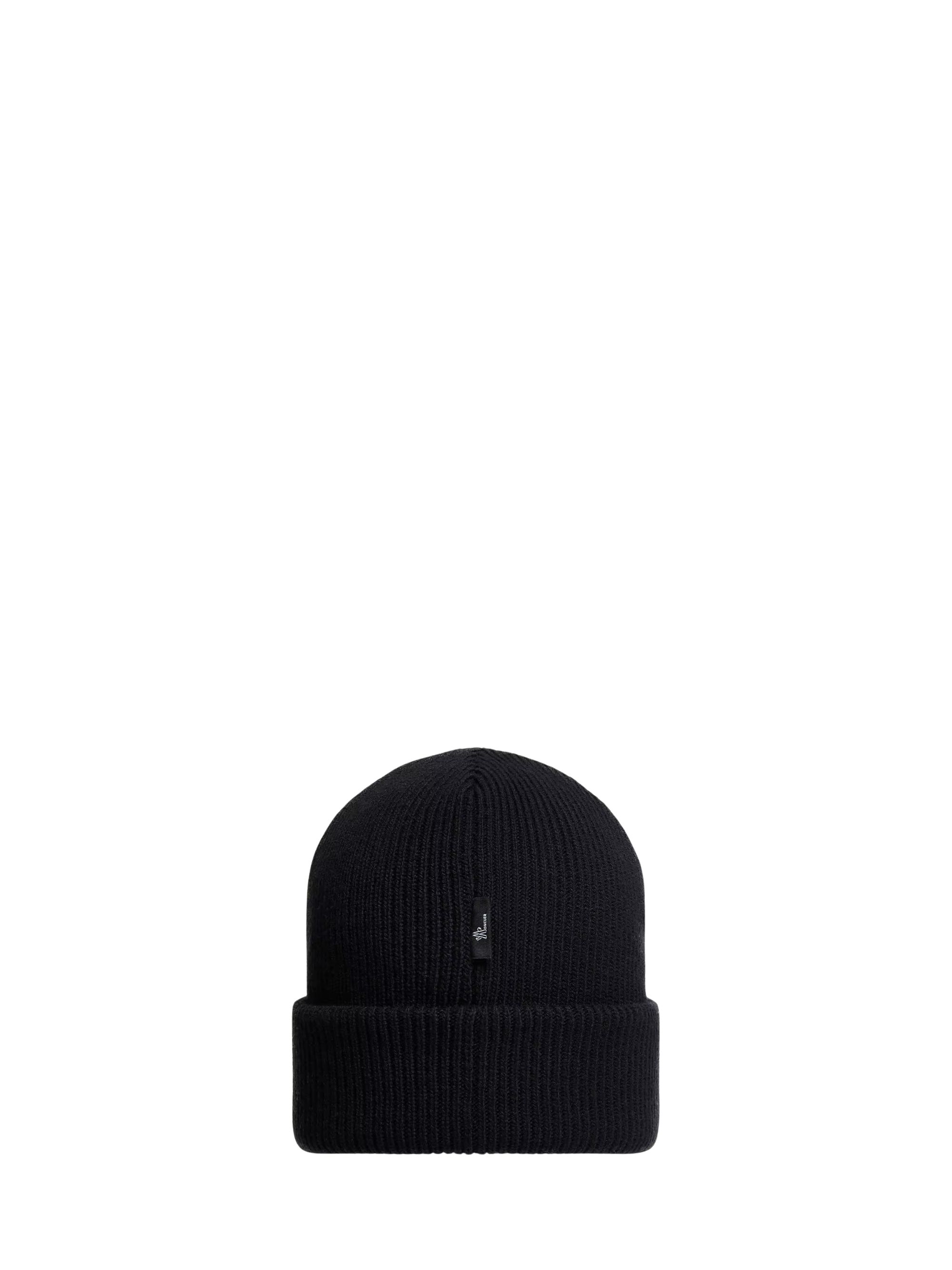 Berretto con logo di MONCLER GRENOBLE nero in lana, caratterizzato da logo sul davanti e lavorazione a costine.