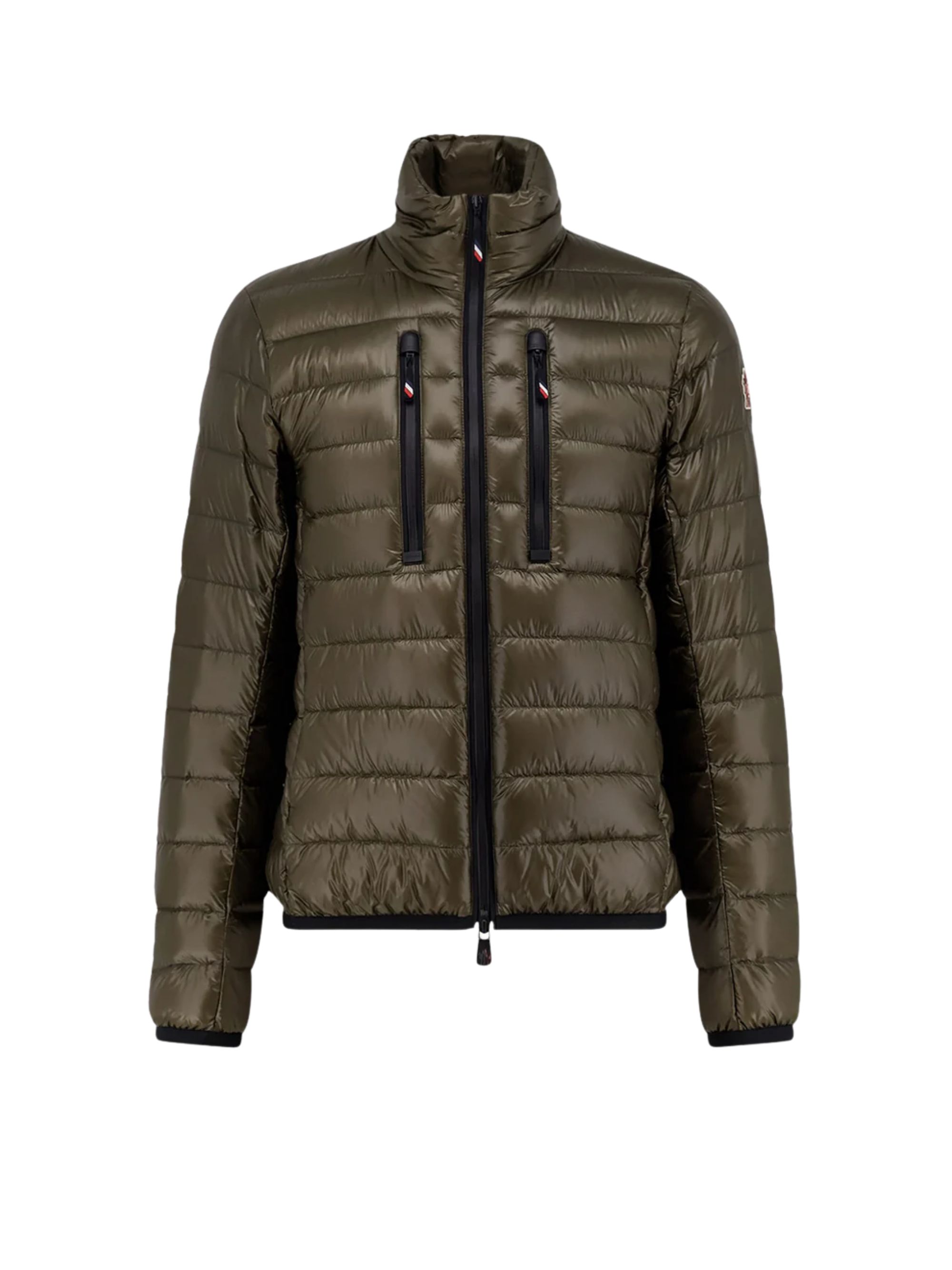 Piumino Hers di MONCLER GRENOBLE verde in nylon, caratterizzato da chiusura con zip a doppio cursore, tasche con zip sul fronte e sul petto e patch con logo laterale.