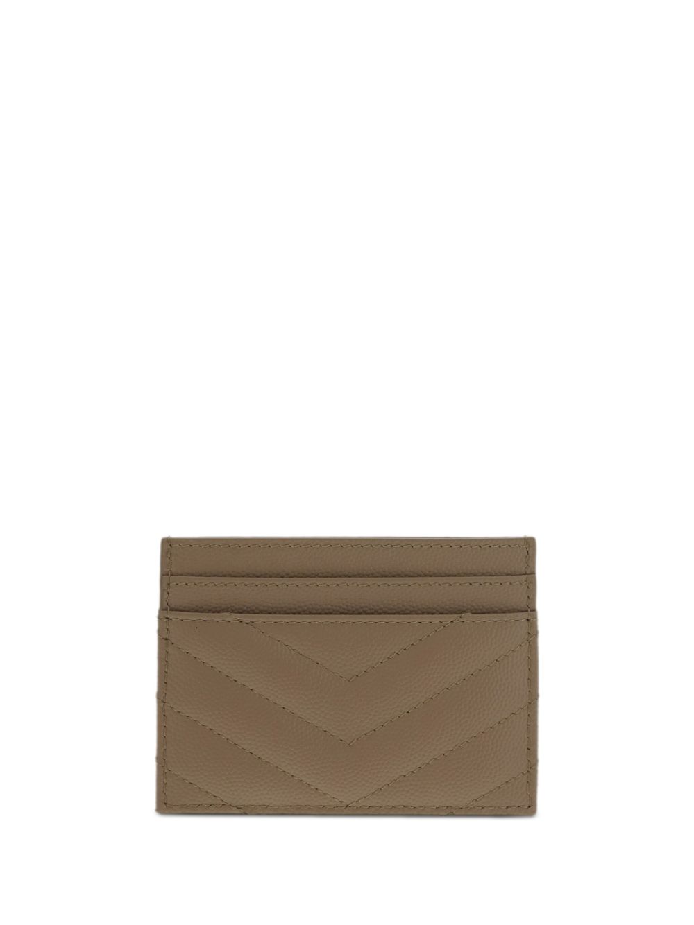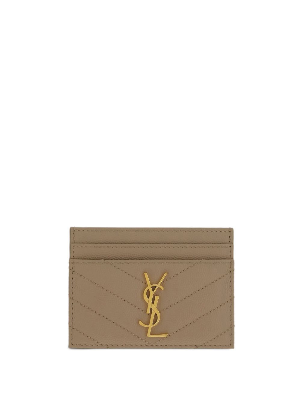 Porta carte Cassandre di SAINT LAURENTbeige in pelle matelassé, caratterizzato da iniziali YSL intrecciate in metallo, impunture trapuntate, parti metalliche dorate e cinque fessure per carte.