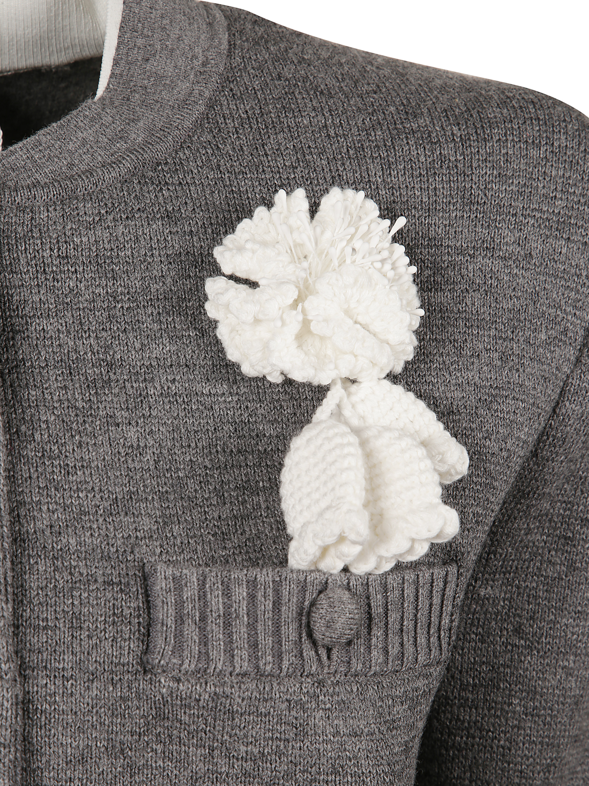 Cardigan a fiori all'uncinetto di SELF PORTRAIT grigio in lana e cashmere, caratterizzato da motivo floreale all'uncinetto, spilla a forma di fiore removibile, tasche funzionali e chiusura con bottoni.