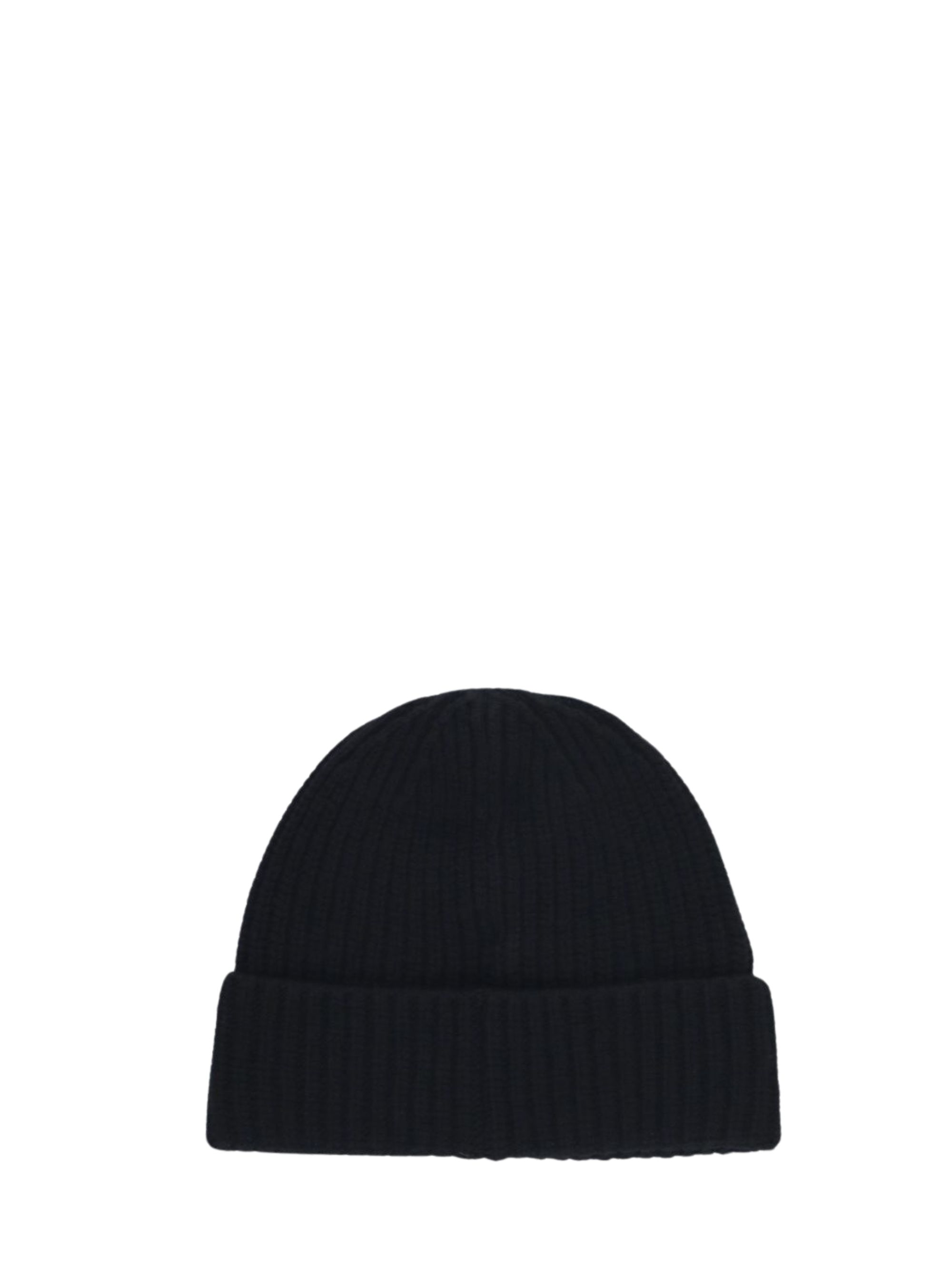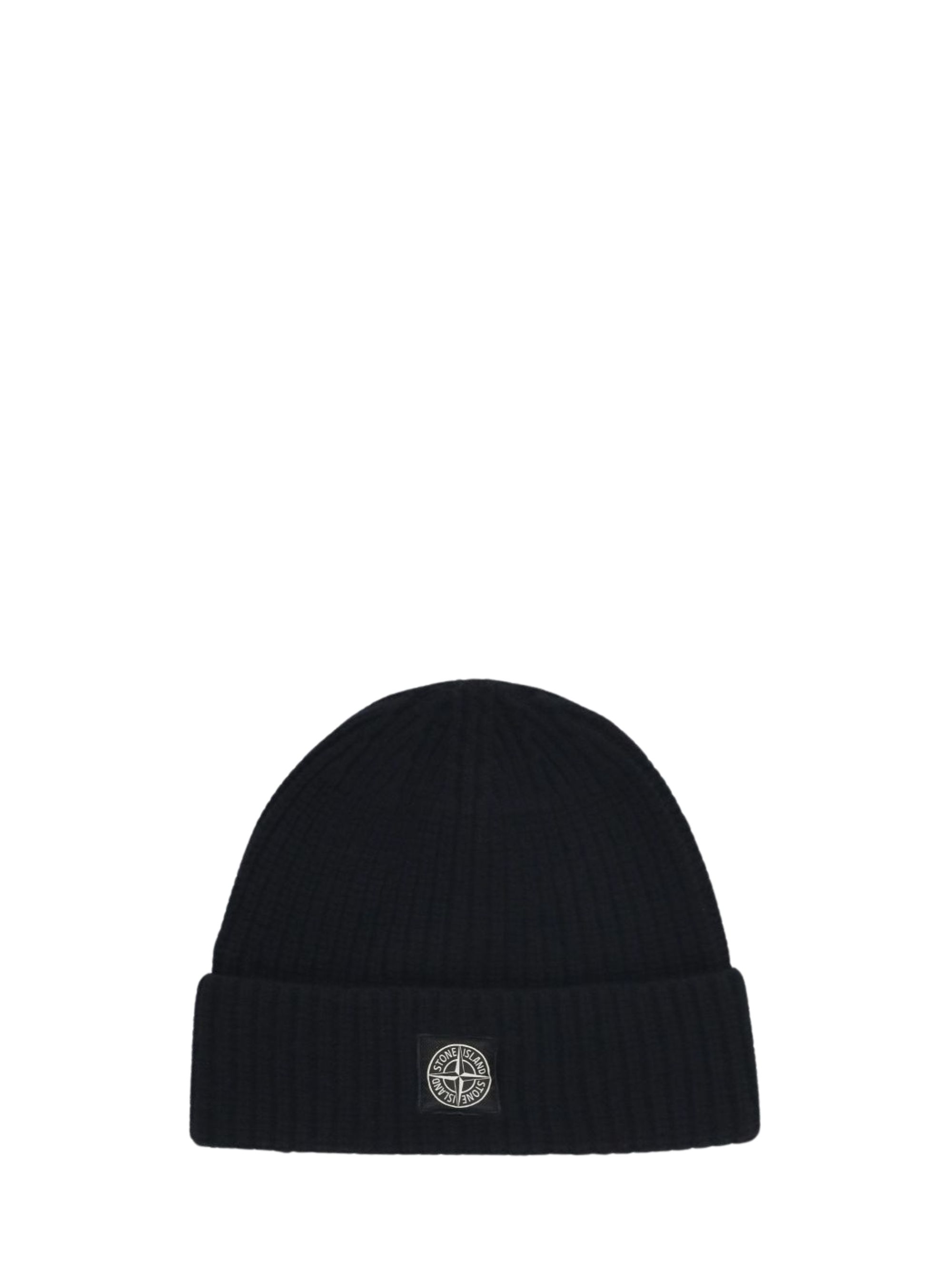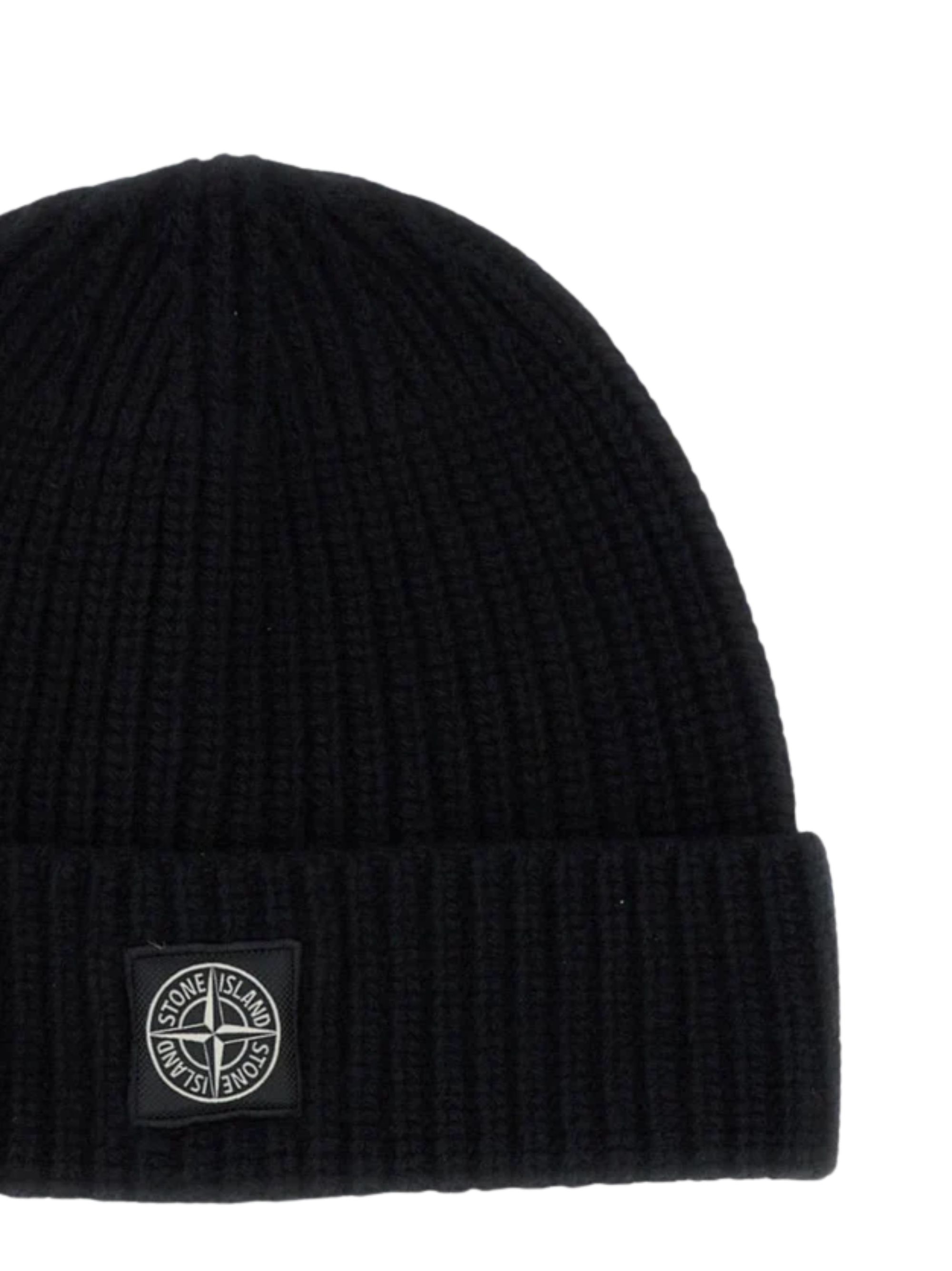 Berretto di lana con logo di STONE ISLAND nero con motivo a coste all-over.
