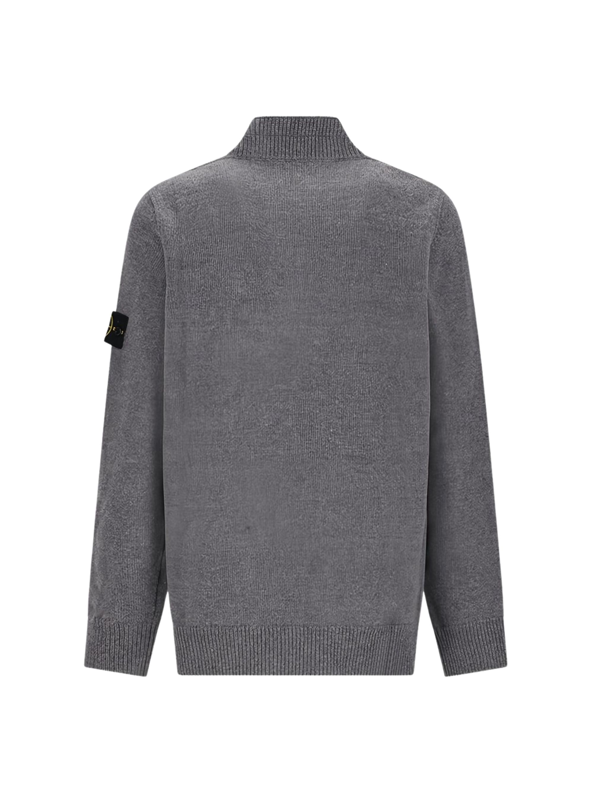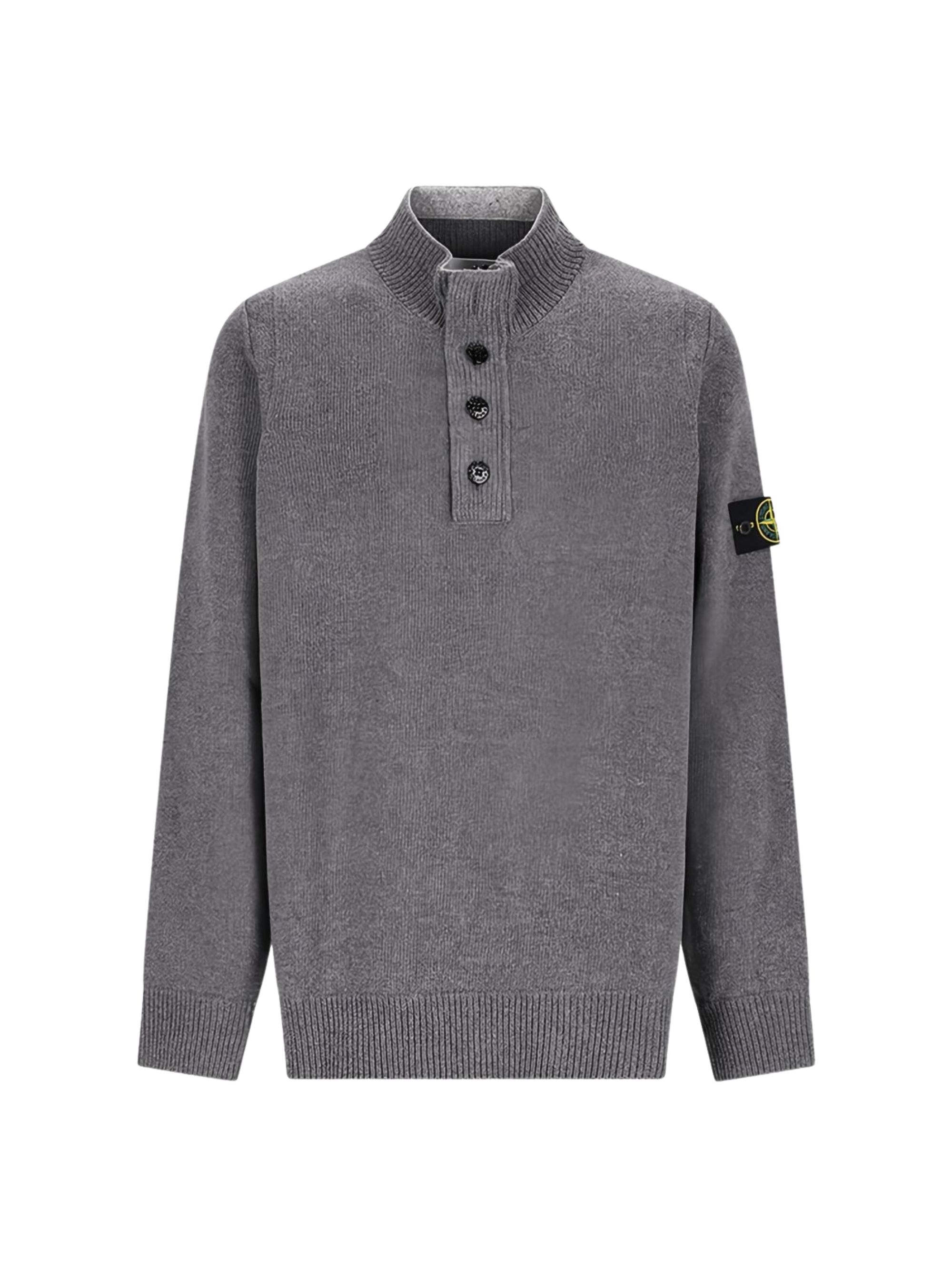 Polo a maniche lunghe con bottoni di STONE ISLAND grigia in lana a coste, caratterizzata da chiusura con bottoni grigi e toppa con logo.