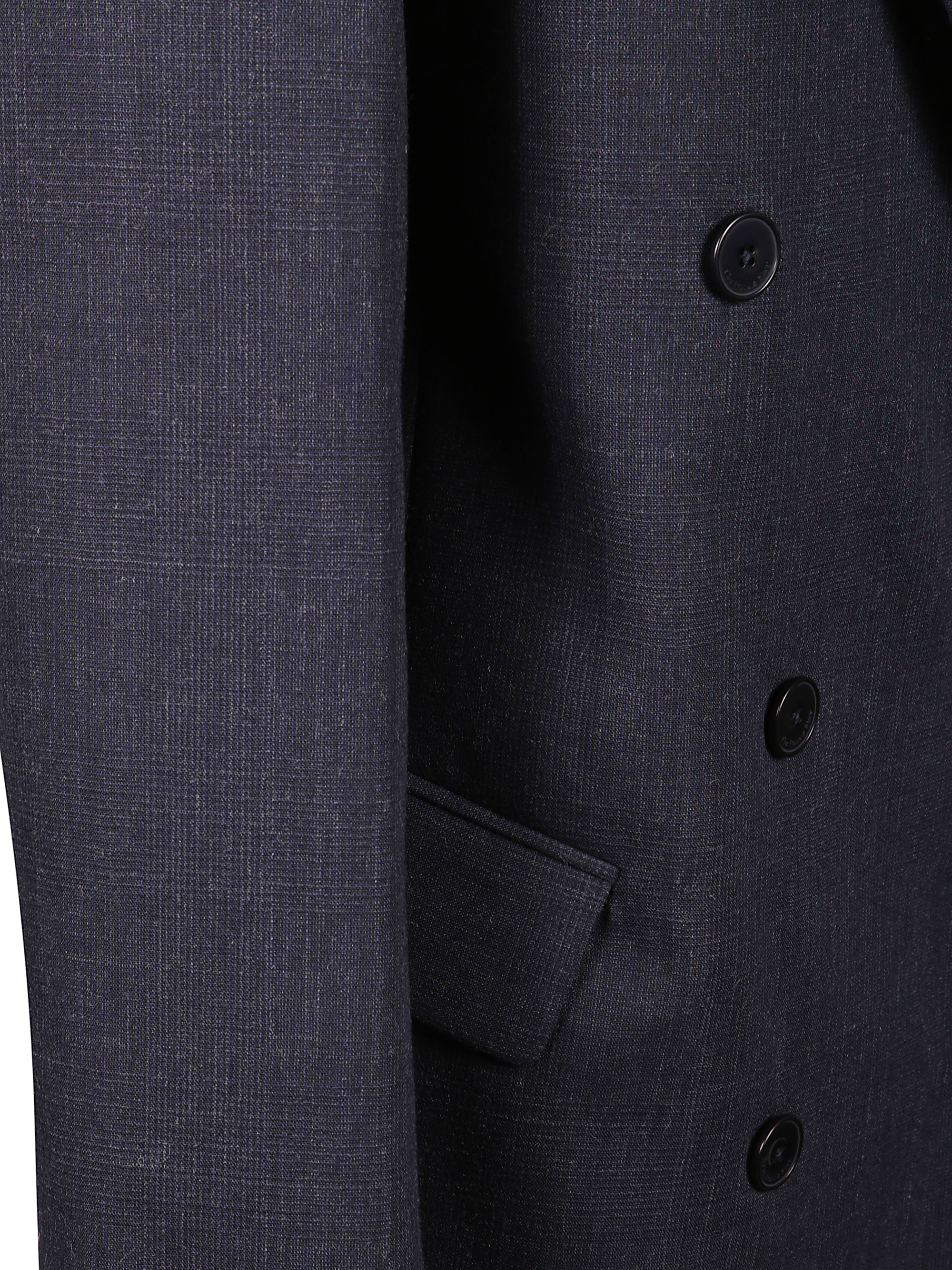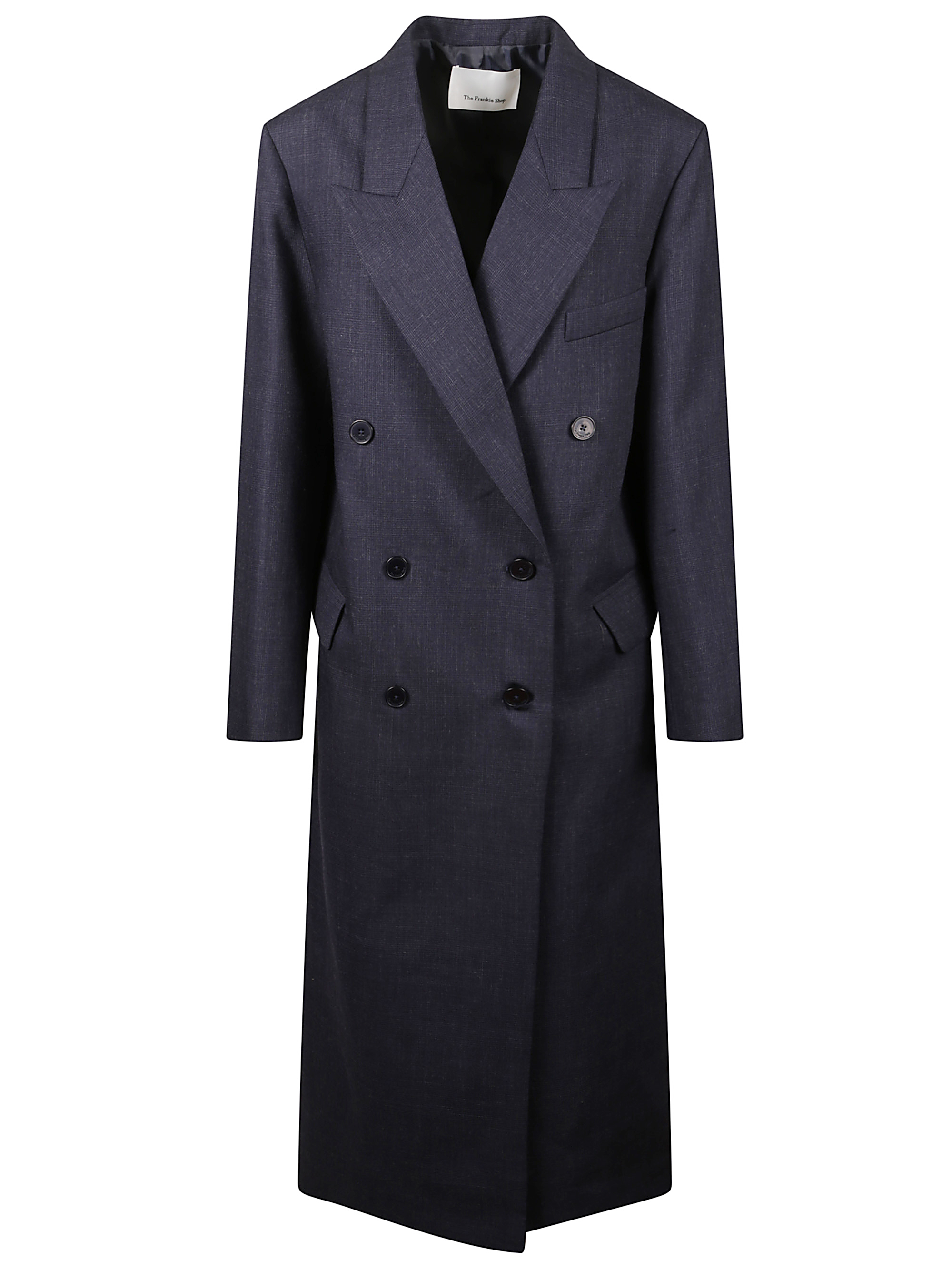 Cappotto a quadri Jane di THE FRANKIE SHOP blu in lana, caratterizzato da spalle imbottite, revers a lancia, tasche anteriori con patta, taschino sul petto, polsini con bottoni, logo TFS inciso sui bottoni e chiusura a doppiopetto.
